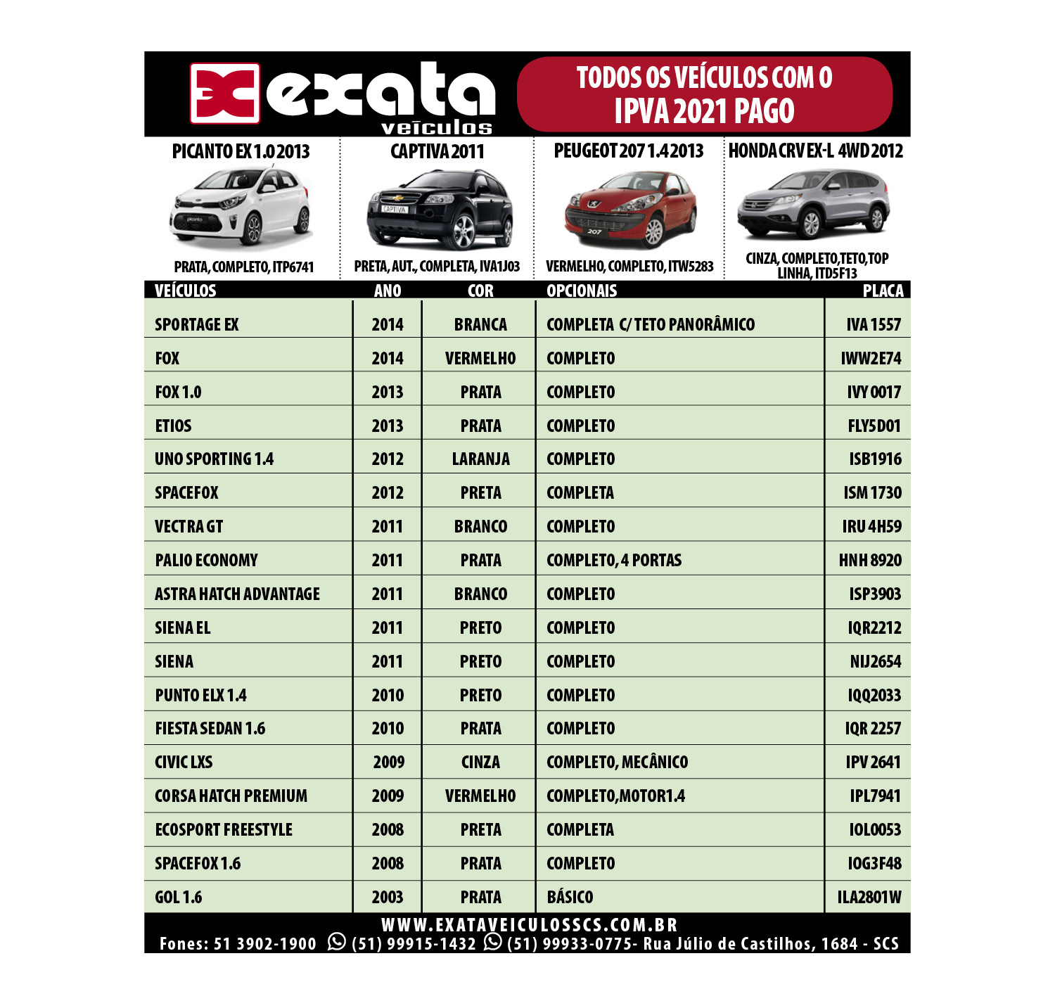 Para mais ofertas acesse: www.exataveiculosscs.com.br