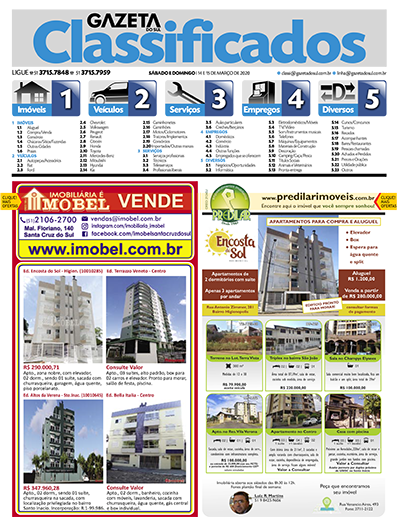 O suplemento de Classificados, que circula nas edições de terças, quintas e sábados, é um dos mais tradicionais da Gazeta do Sul, como vitrine e canal de negócios, de oferta, compra e venda em toda a região central do Rio Grande do Sul. E, para enriquecer pesquisas de produtos e serviços e possibilitar resultado ainda melhor a usuários e parceiros, nos anúncios de clientes cadastrados, o leitor tem acesso direto com link ao site do anunciante, onde poderá verificar mais detalhes sobre itens. Confira: