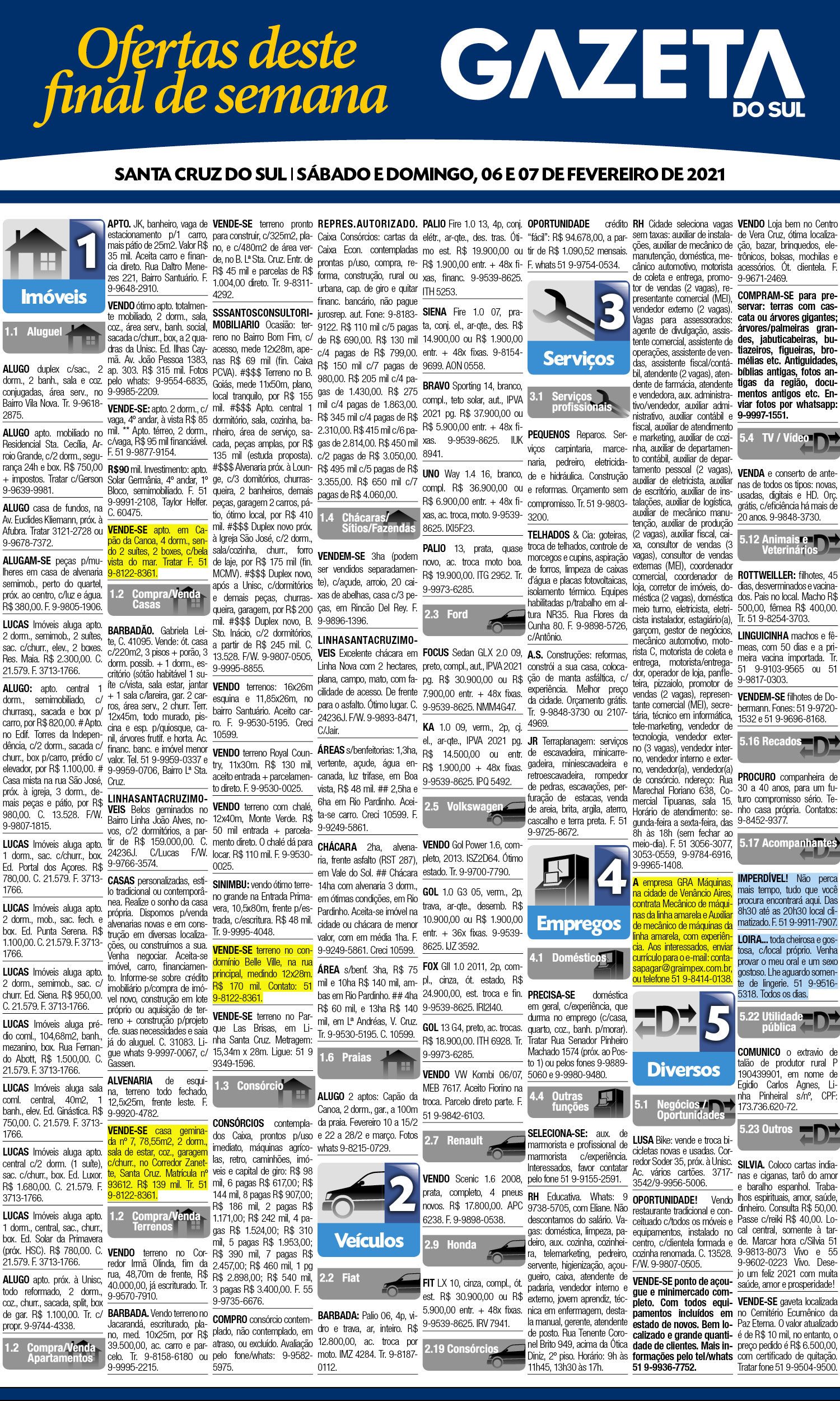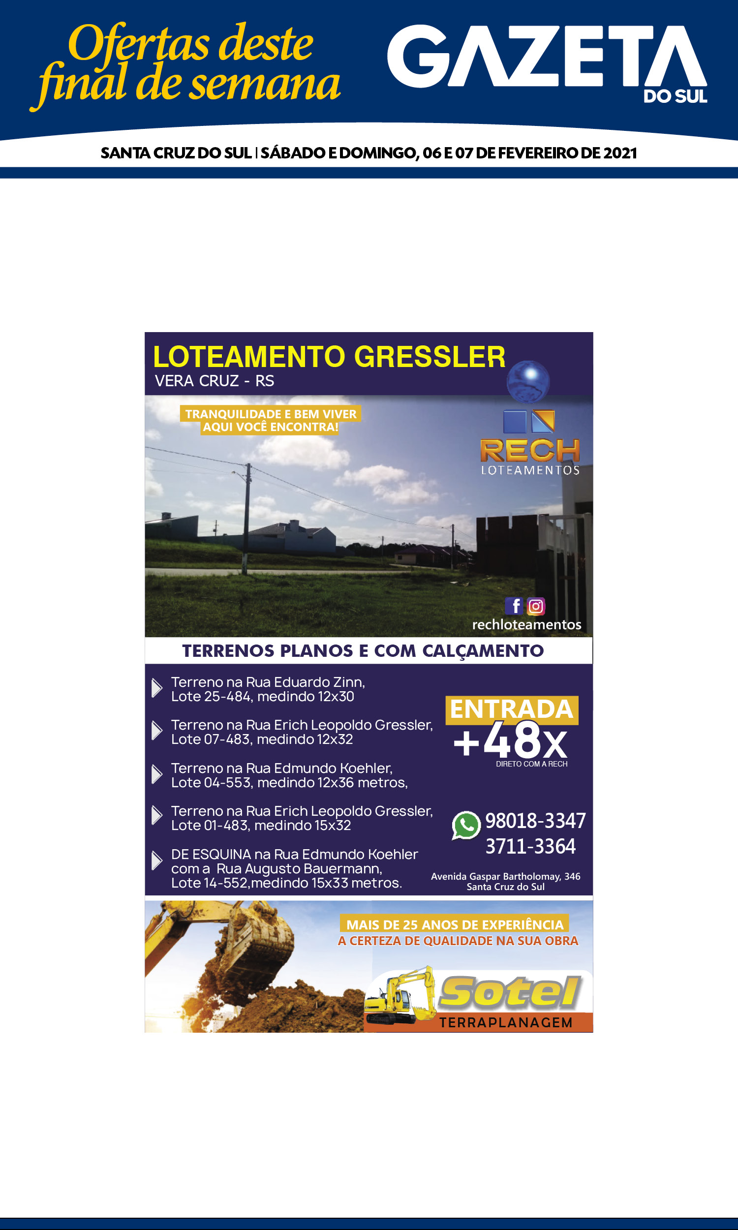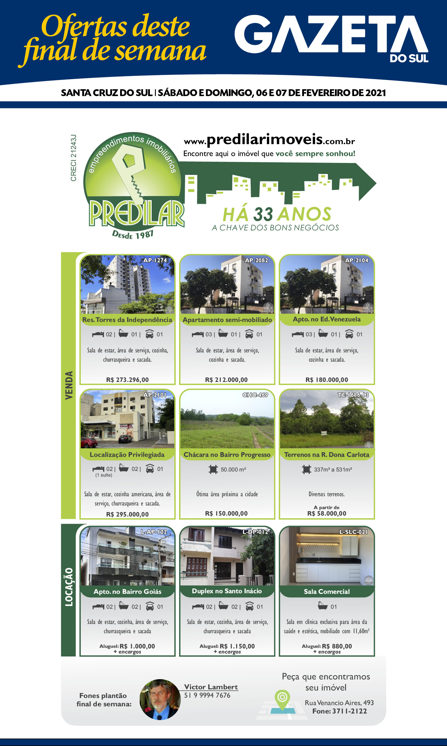O suplemento de Classificados, que circula nas edições de terças, quintas e sábados, é um dos mais tradicionais da Gazeta do Sul, como vitrine e canal de negócios, de oferta, compra e venda em toda a região central do Rio Grande do Sul. E, para enriquecer pesquisas de produtos e serviços e possibilitar resultado ainda melhor a usuários e parceiros, nos anúncios de clientes cadastrados, o leitor tem acesso direto com link ao site do anunciante, onde poderá verificar mais detalhes sobre os itens. Confira: