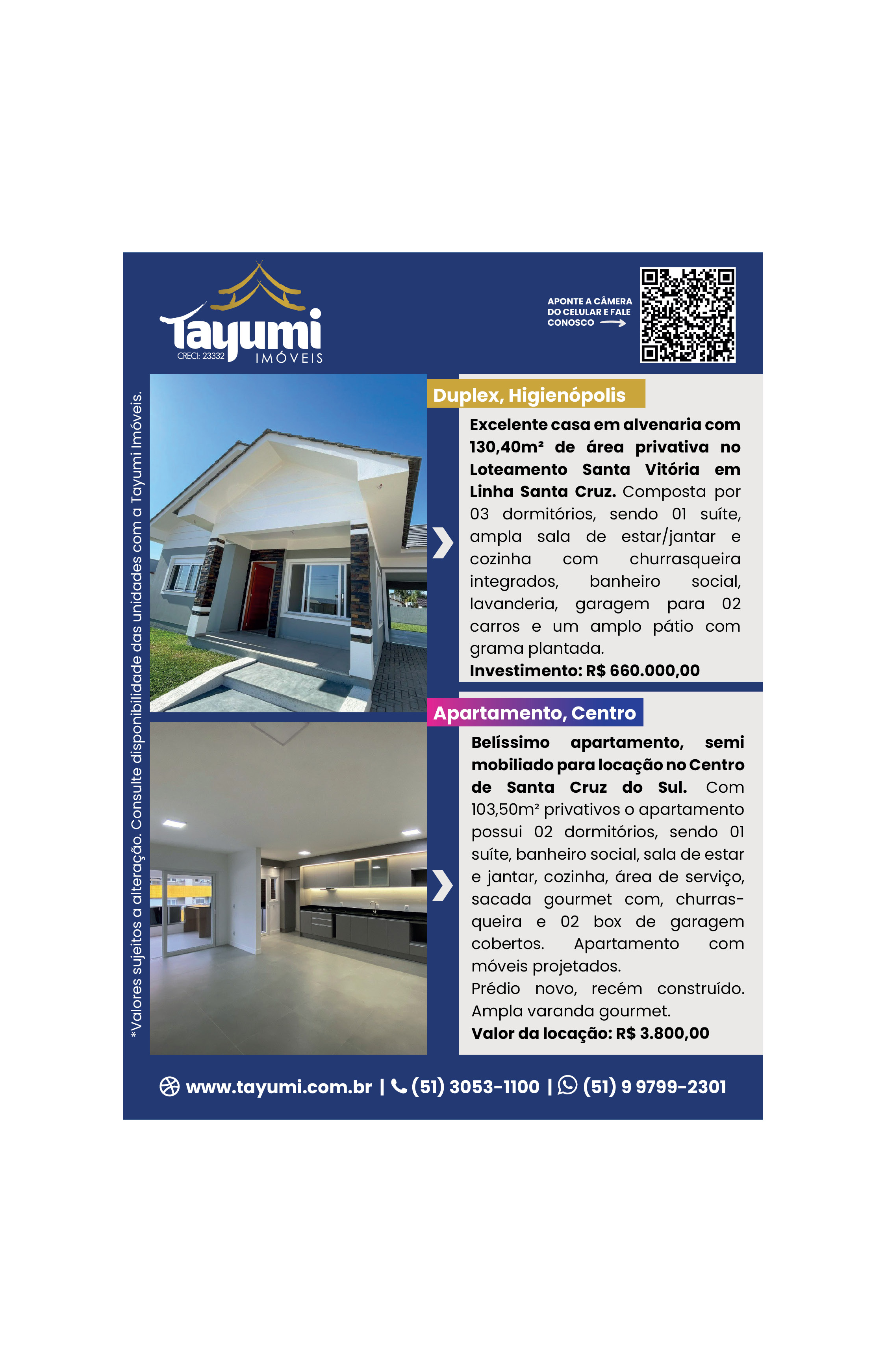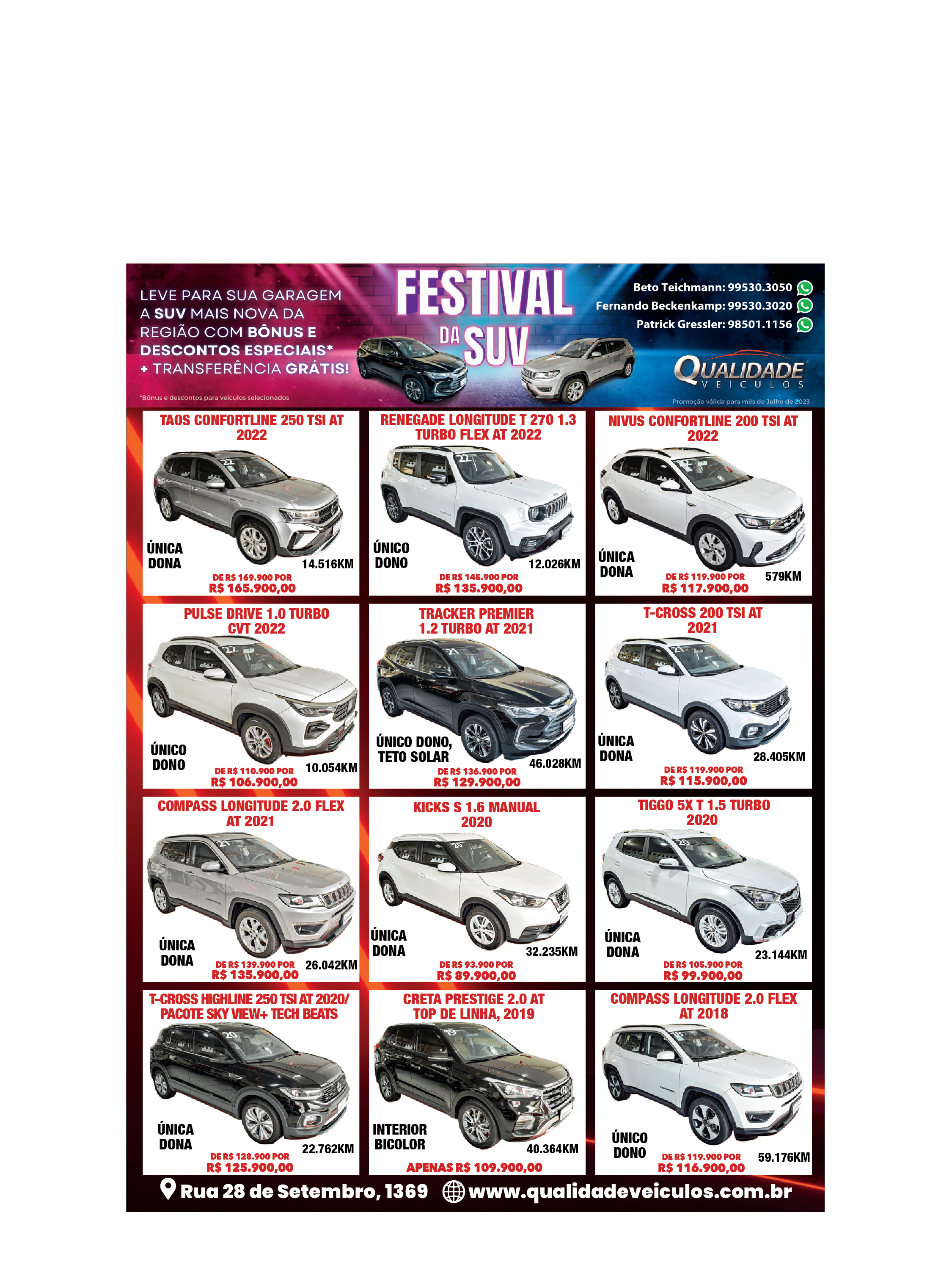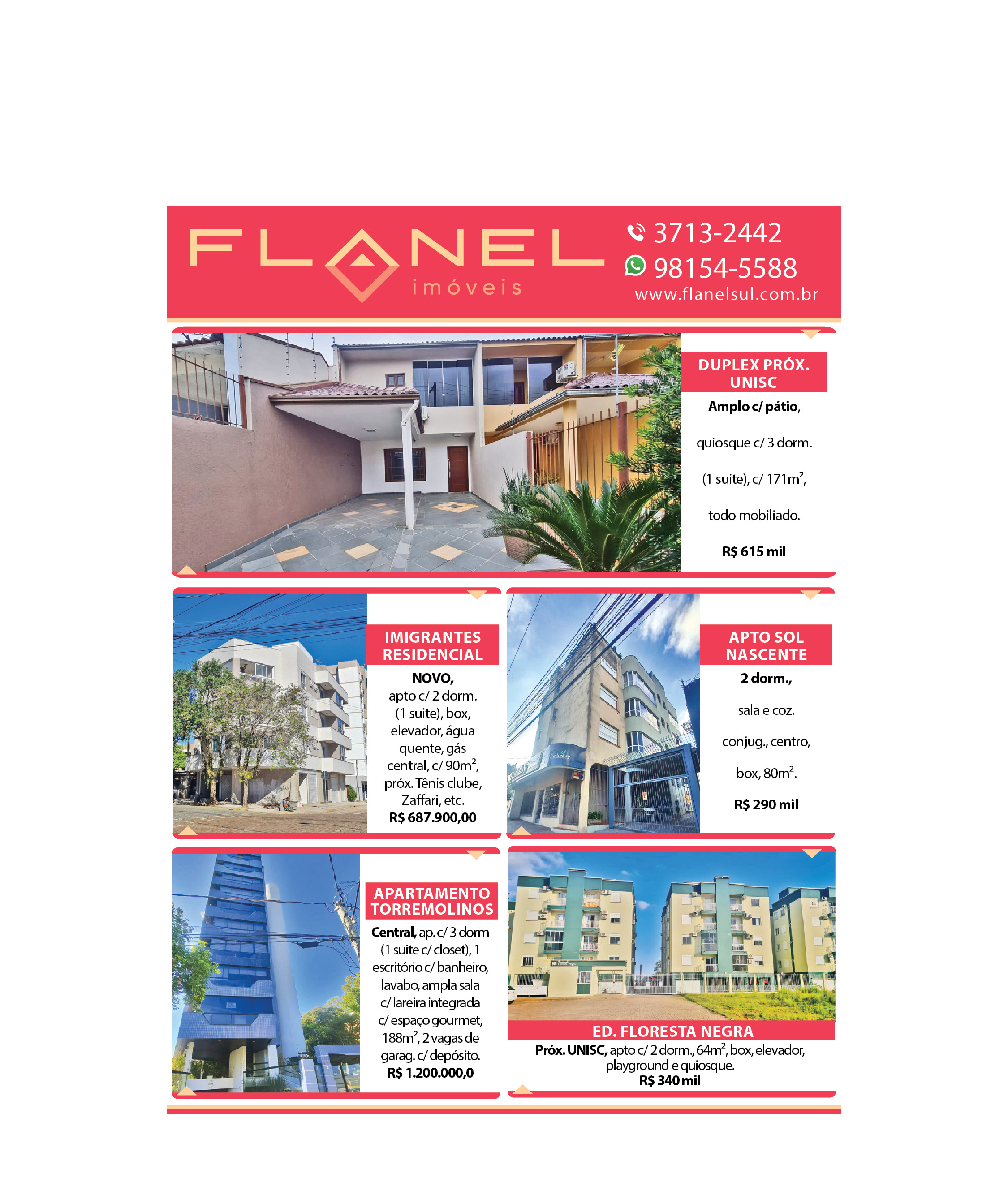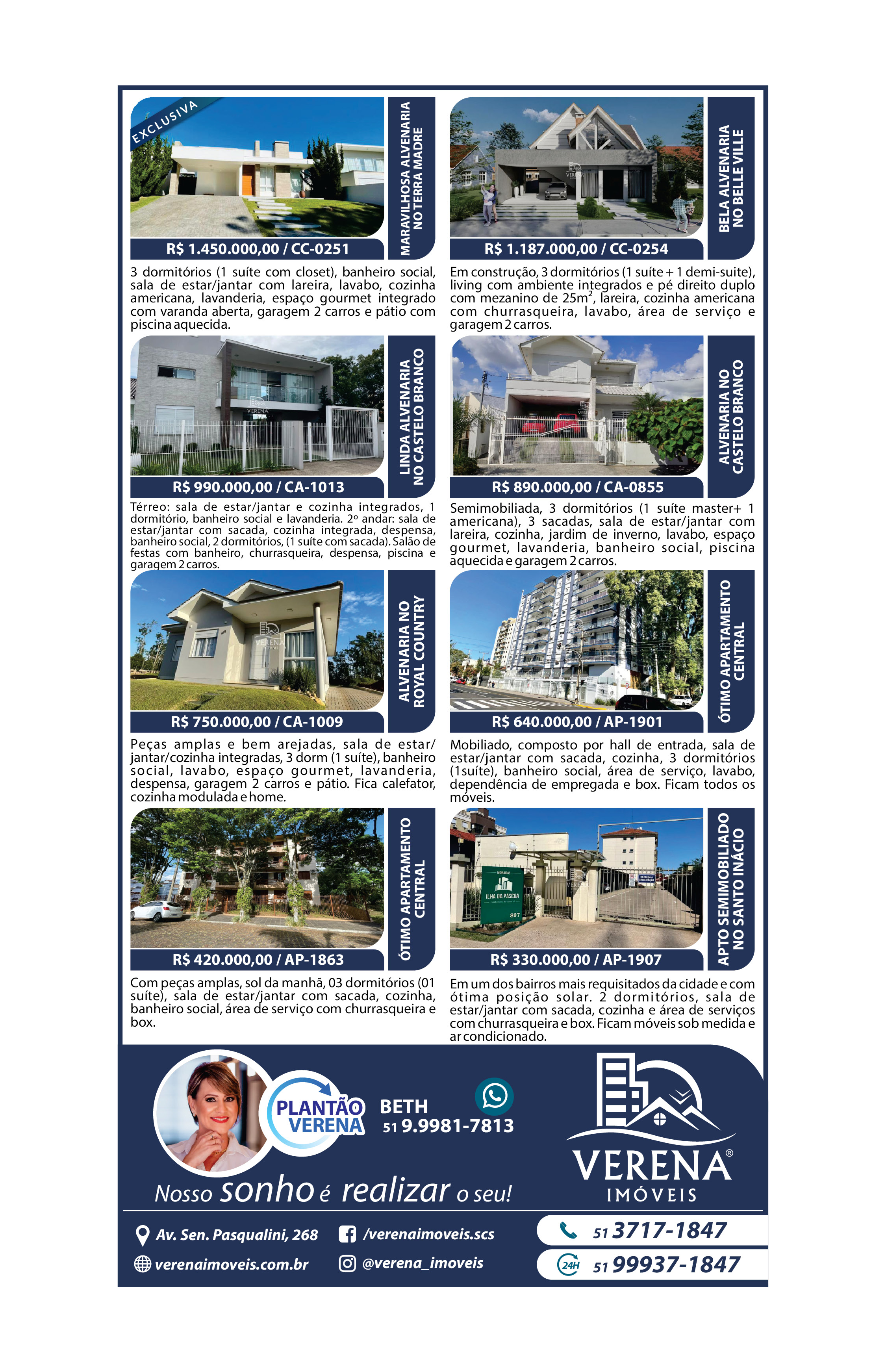 O suplemento de Classificados, que circula nas edições de terças, quintas e sábados, é um dos mais tradicionais da Gazeta do Sul, como vitrine e canal de negócios, de oferta, compra e venda em toda a região central do Rio Grande do Sul. E, para enriquecer pesquisas de produtos e serviços e possibilitar resultado ainda melhor a usuários e parceiros, nos anúncios de clientes cadastrados, o leitor tem acesso direto com link ao site do anunciante, onde poderá verificar mais detalhes sobre os itens. Confira as ofertas:
