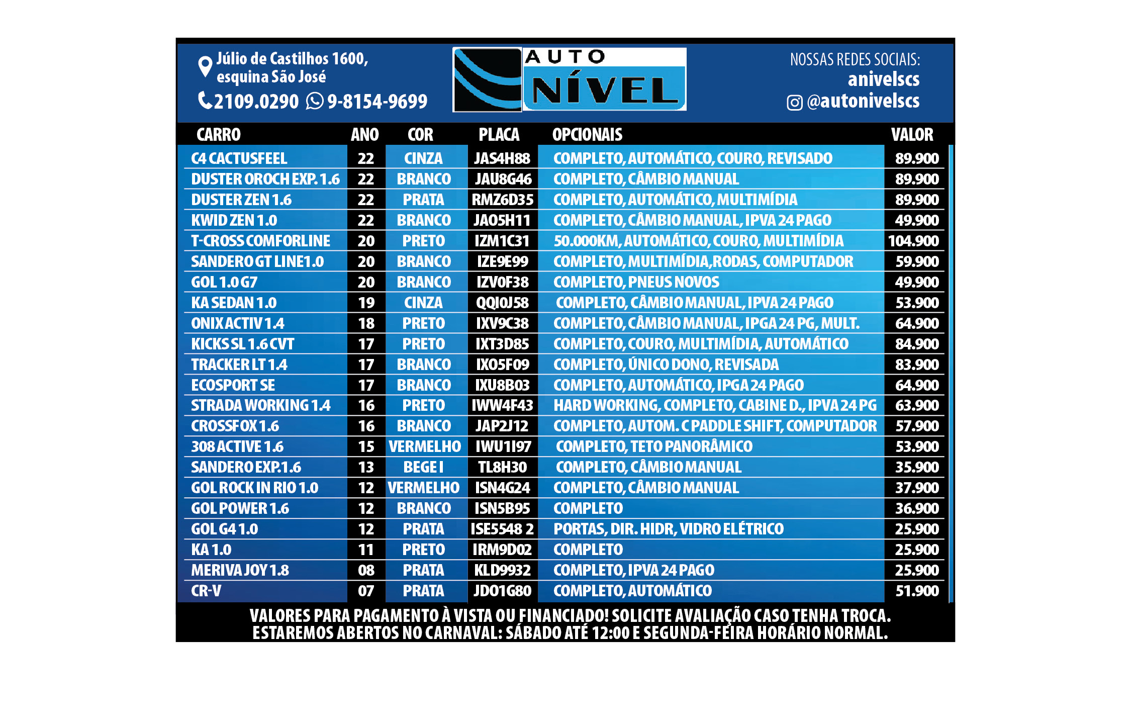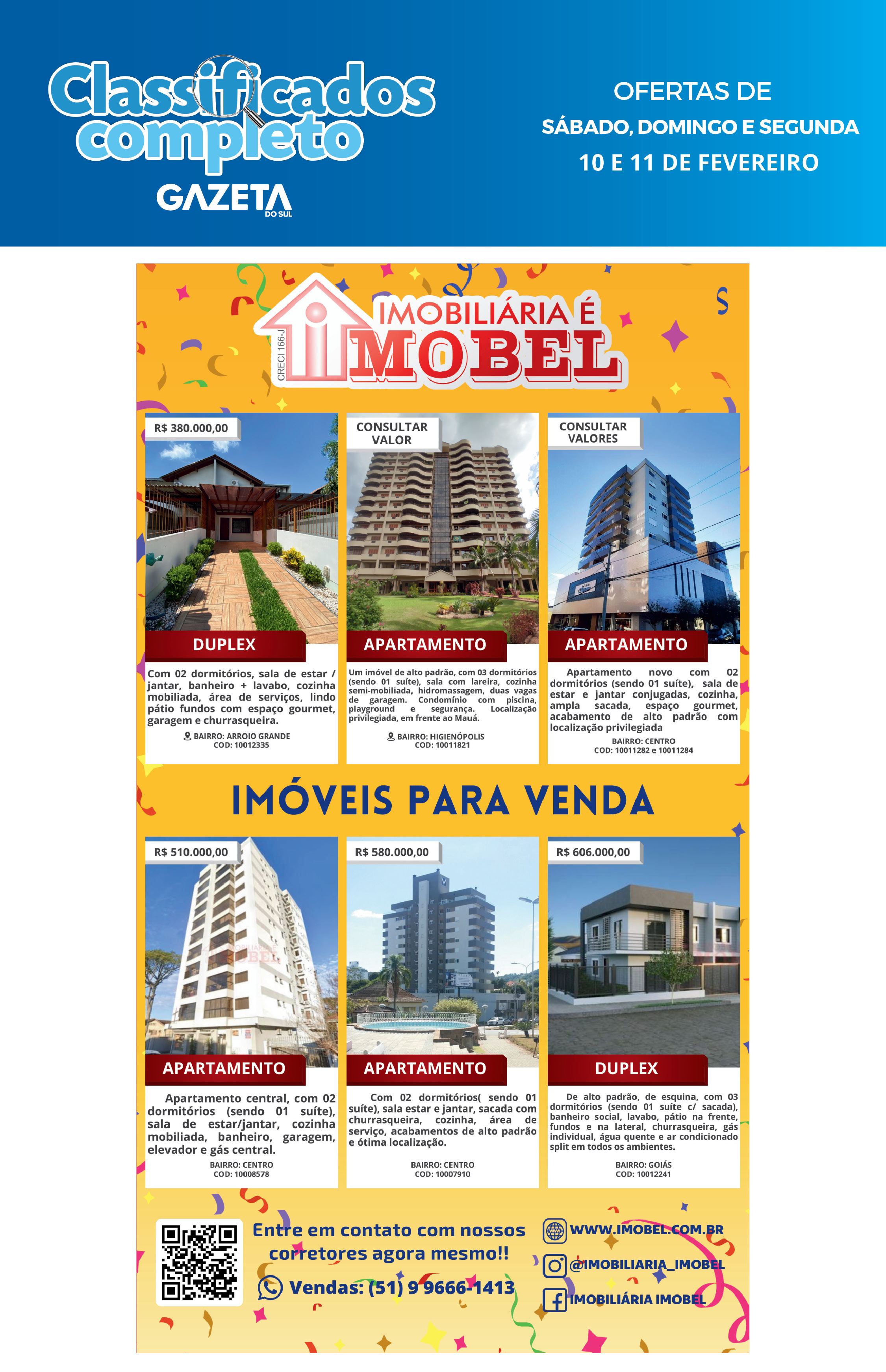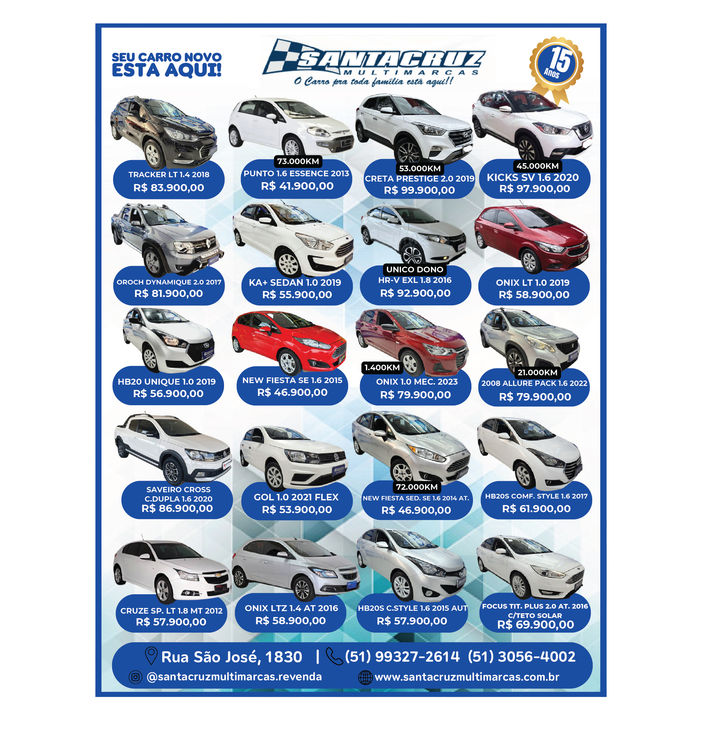 O suplemento de Classificados, que circula nas edições de terças, quintas e sábados, é um dos mais tradicionais da Gazeta do Sul, como vitrine e canal de negócios, de oferta, compra e venda em toda a região central do Rio Grande do Sul. E, para enriquecer pesquisas de produtos e serviços e possibilitar resultado ainda melhor a usuários e parceiros, nos anúncios de clientes cadastrados, o leitor tem acesso direto com link ao site do anunciante, onde poderá verificar mais detalhes sobre os itens. Confira as ofertas: