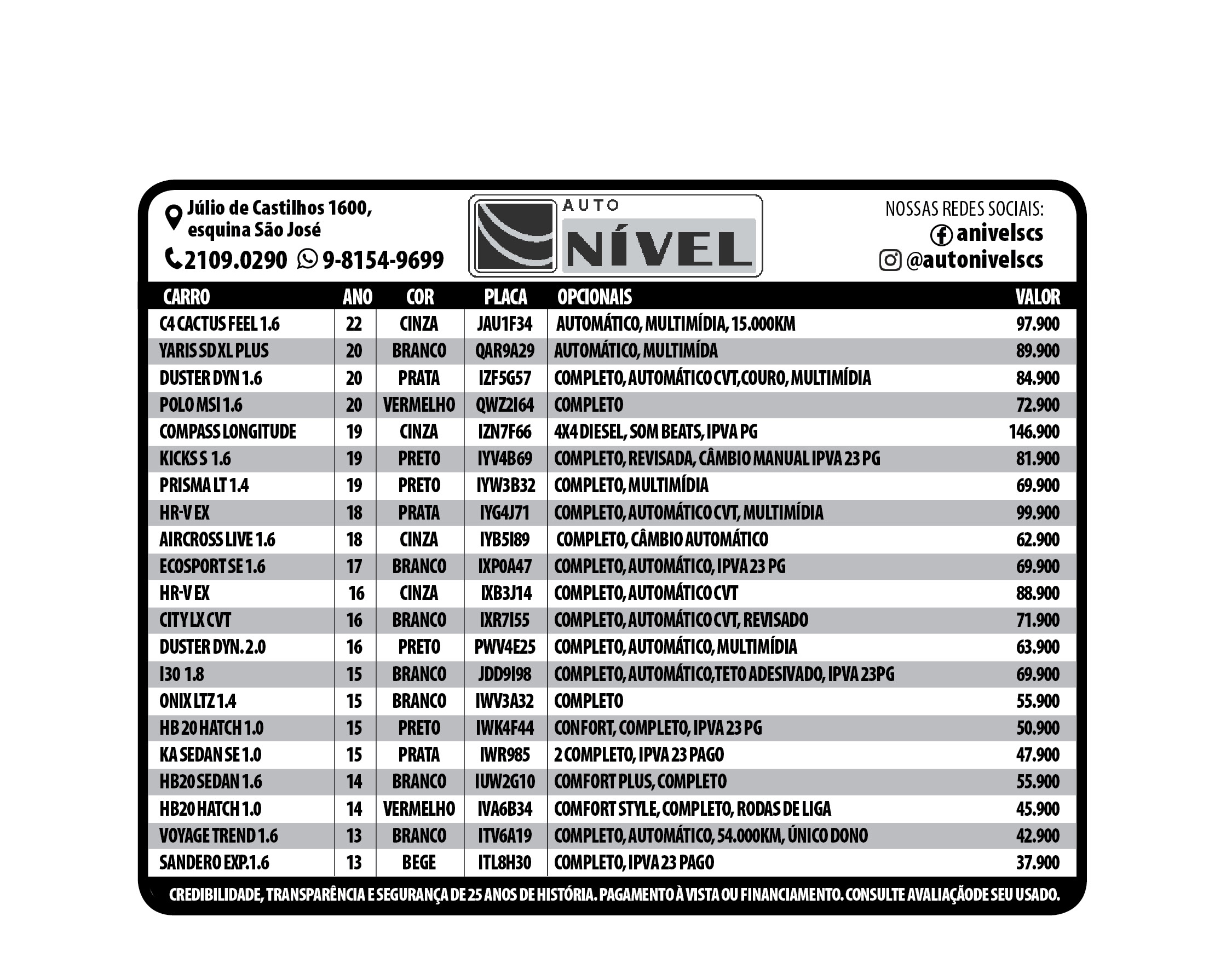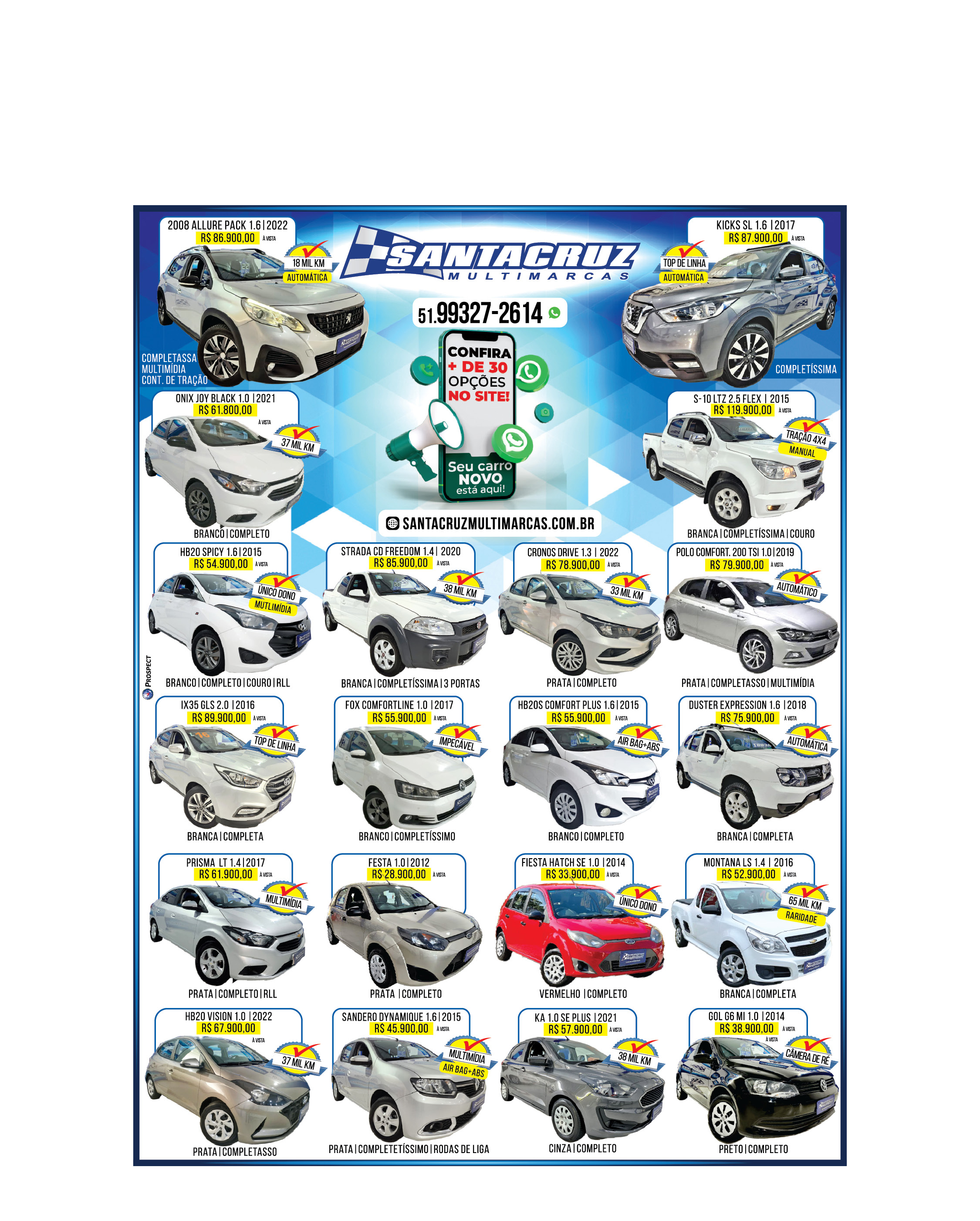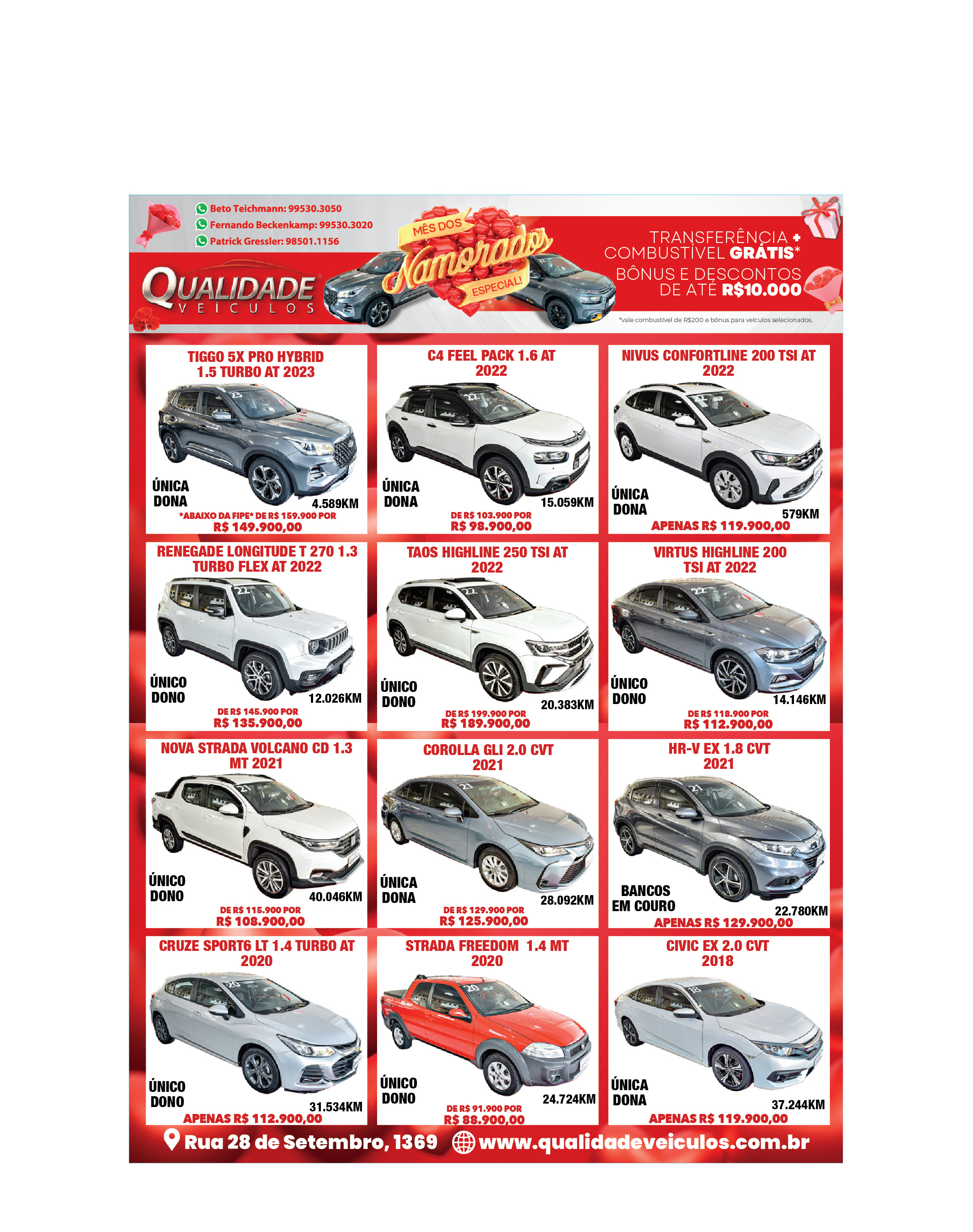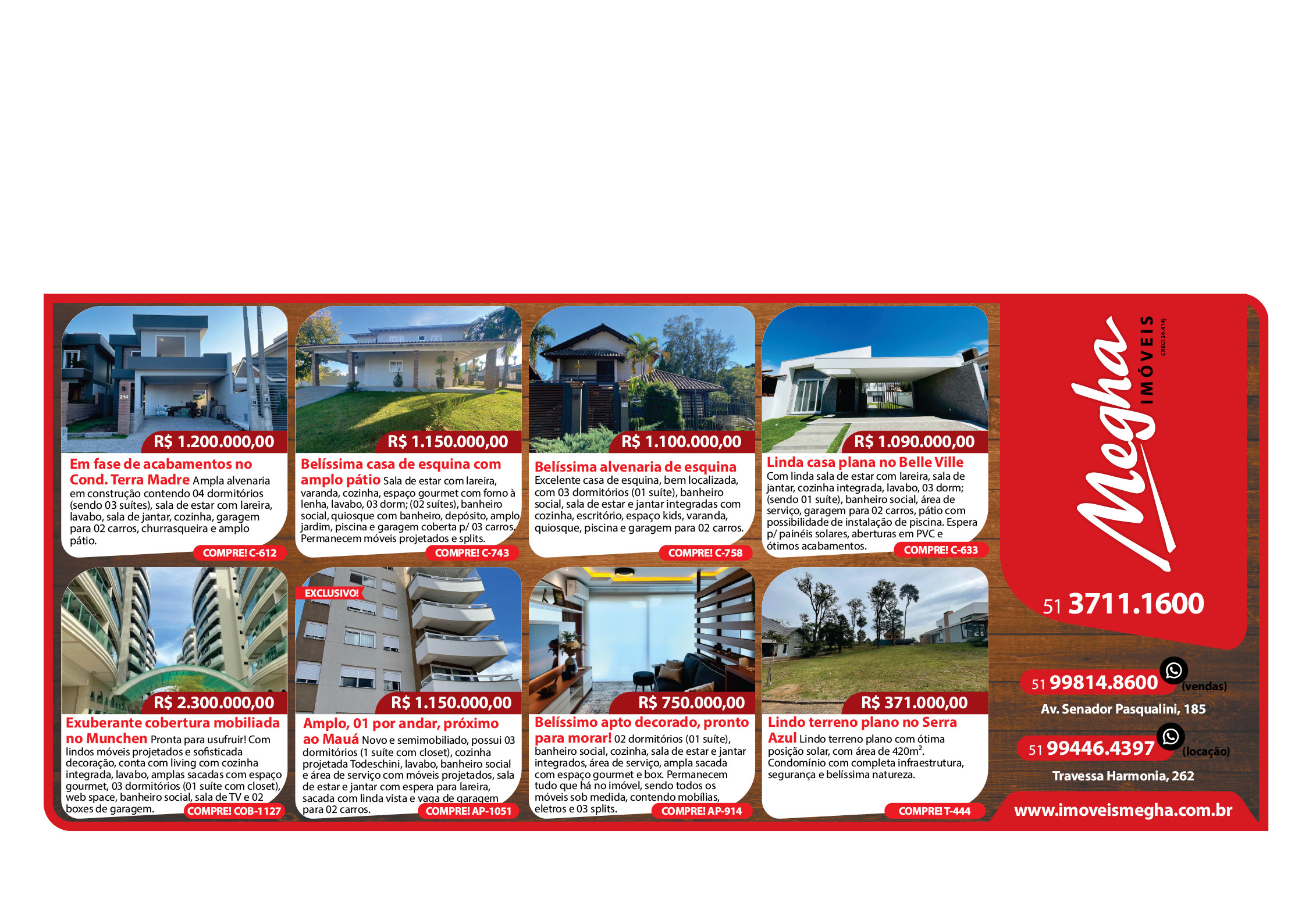 O suplemento de Classificados, que circula nas edições de terças, quintas e sábados, é um dos mais tradicionais da Gazeta do Sul, como vitrine e canal de negócios, de oferta, compra e venda em toda a região central do Rio Grande do Sul. E, para enriquecer pesquisas de produtos e serviços e possibilitar resultado ainda melhor a usuários e parceiros, nos anúncios de clientes cadastrados, o leitor tem acesso direto com link ao site do anunciante, onde poderá verificar mais detalhes sobre os itens. Confira as ofertas: