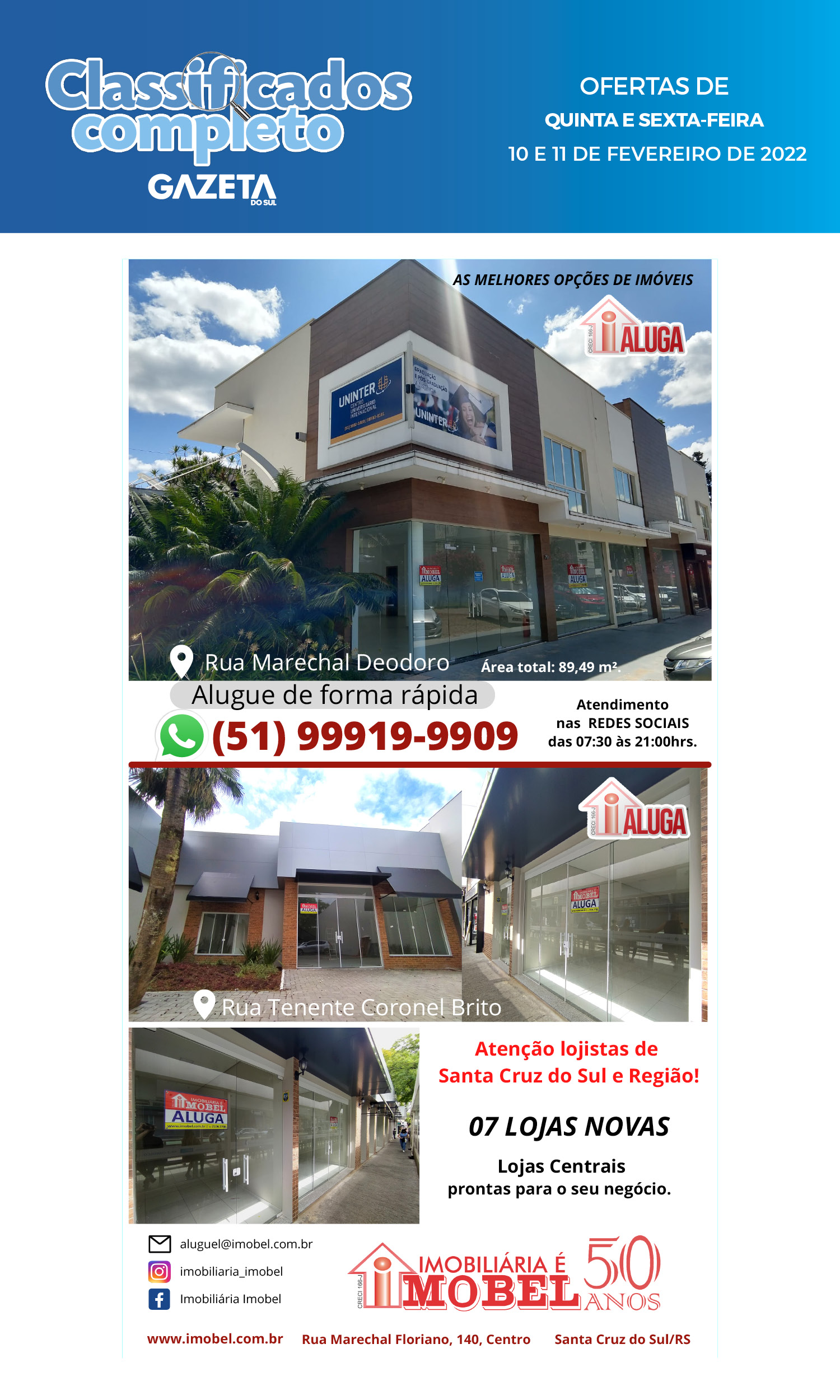 O suplemento de Classificados, que circula nas edições de terças, quintas e sábados, é um dos mais tradicionais da Gazeta do Sul, como vitrine e canal de negócios, de oferta, compra e venda em toda a região central do Rio Grande do Sul. E, para enriquecer pesquisas de produtos e serviços e possibilitar resultado ainda melhor a usuários e parceiros, nos anúncios de clientes cadastrados, o leitor tem acesso direto com link ao site do anunciante, onde poderá verificar mais detalhes sobre os itens. Confira as ofertas: