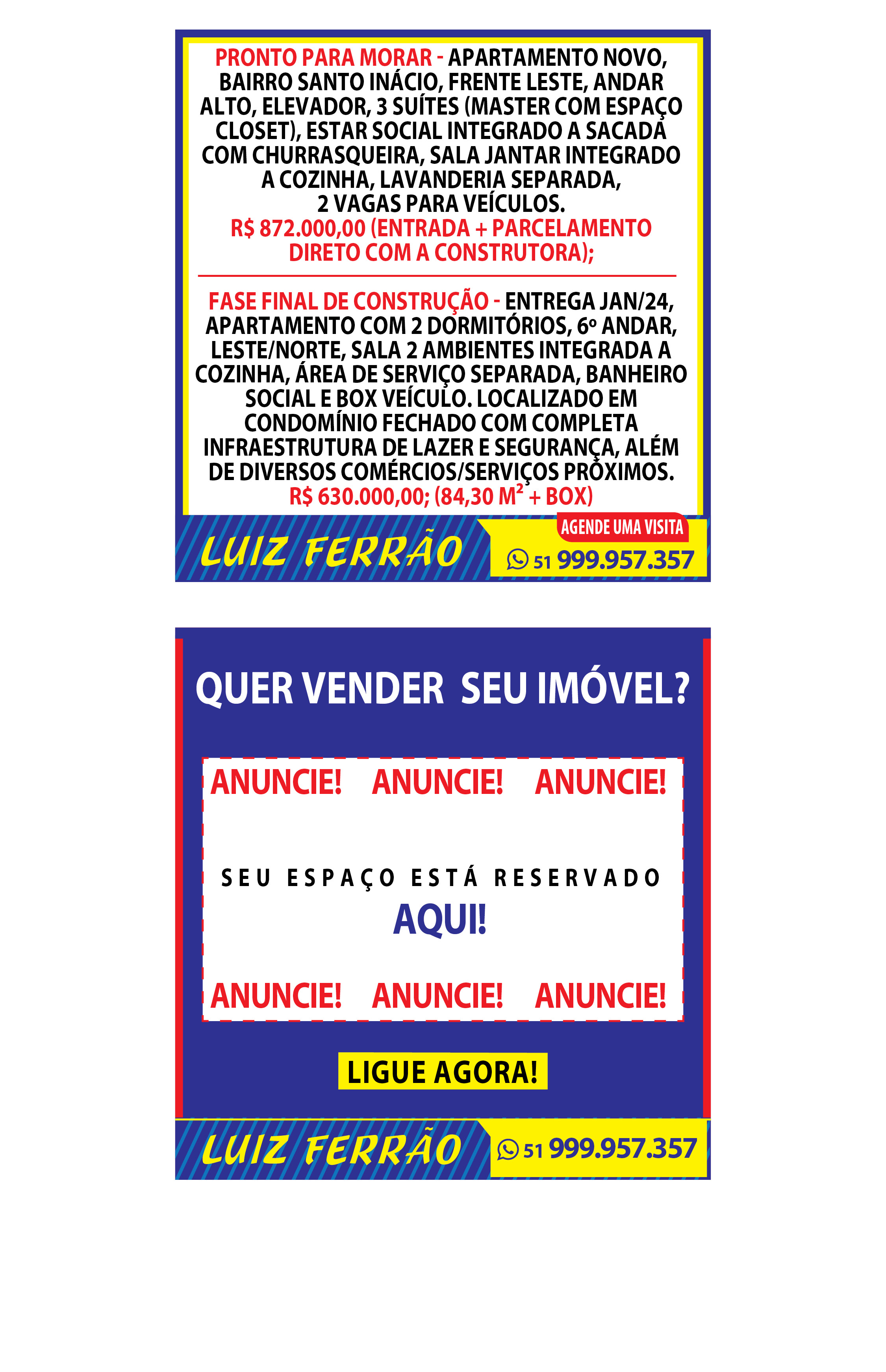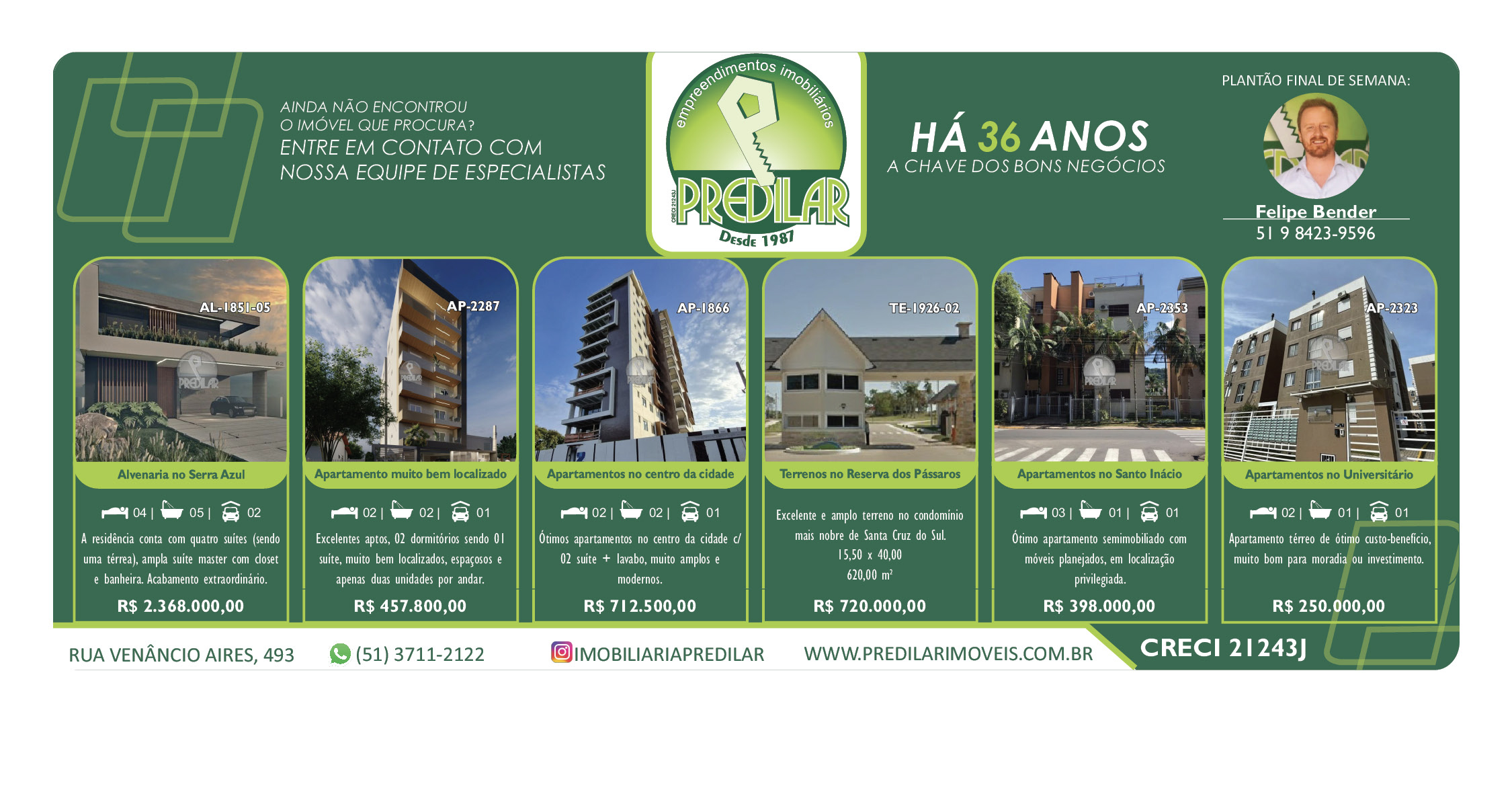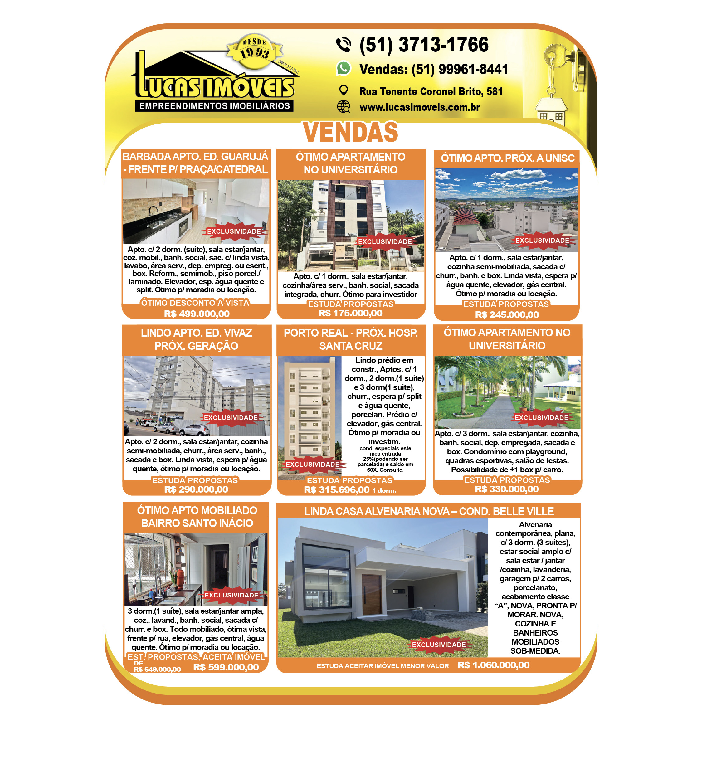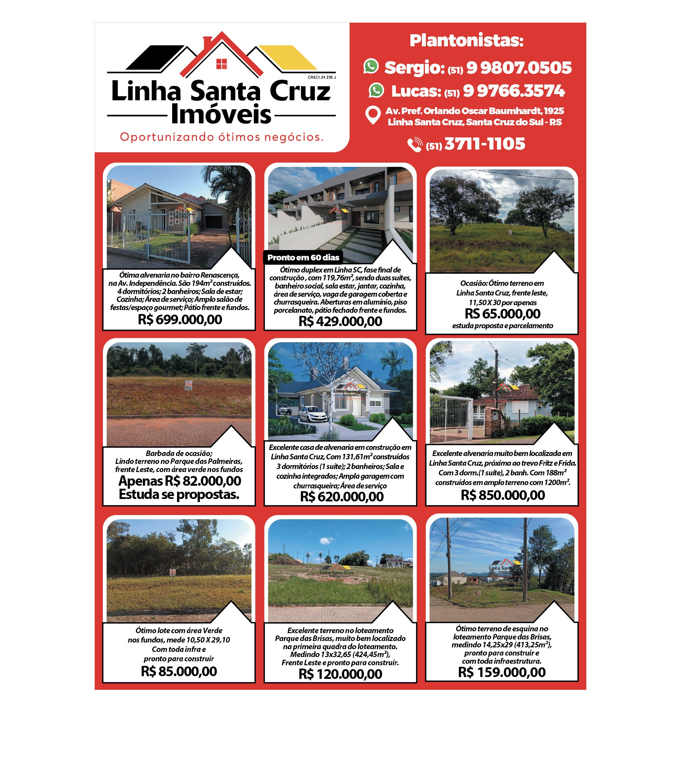 O suplemento de Classificados, que circula nas edições de terças, quintas e sábados, é um dos mais tradicionais da Gazeta do Sul, como vitrine e canal de negócios, de oferta, compra e venda em toda a região central do Rio Grande do Sul. E, para enriquecer pesquisas de produtos e serviços e possibilitar resultado ainda melhor a usuários e parceiros, nos anúncios de clientes cadastrados, o leitor tem acesso direto com link ao site do anunciante, onde poderá verificar mais detalhes sobre os itens. Confira as ofertas:
