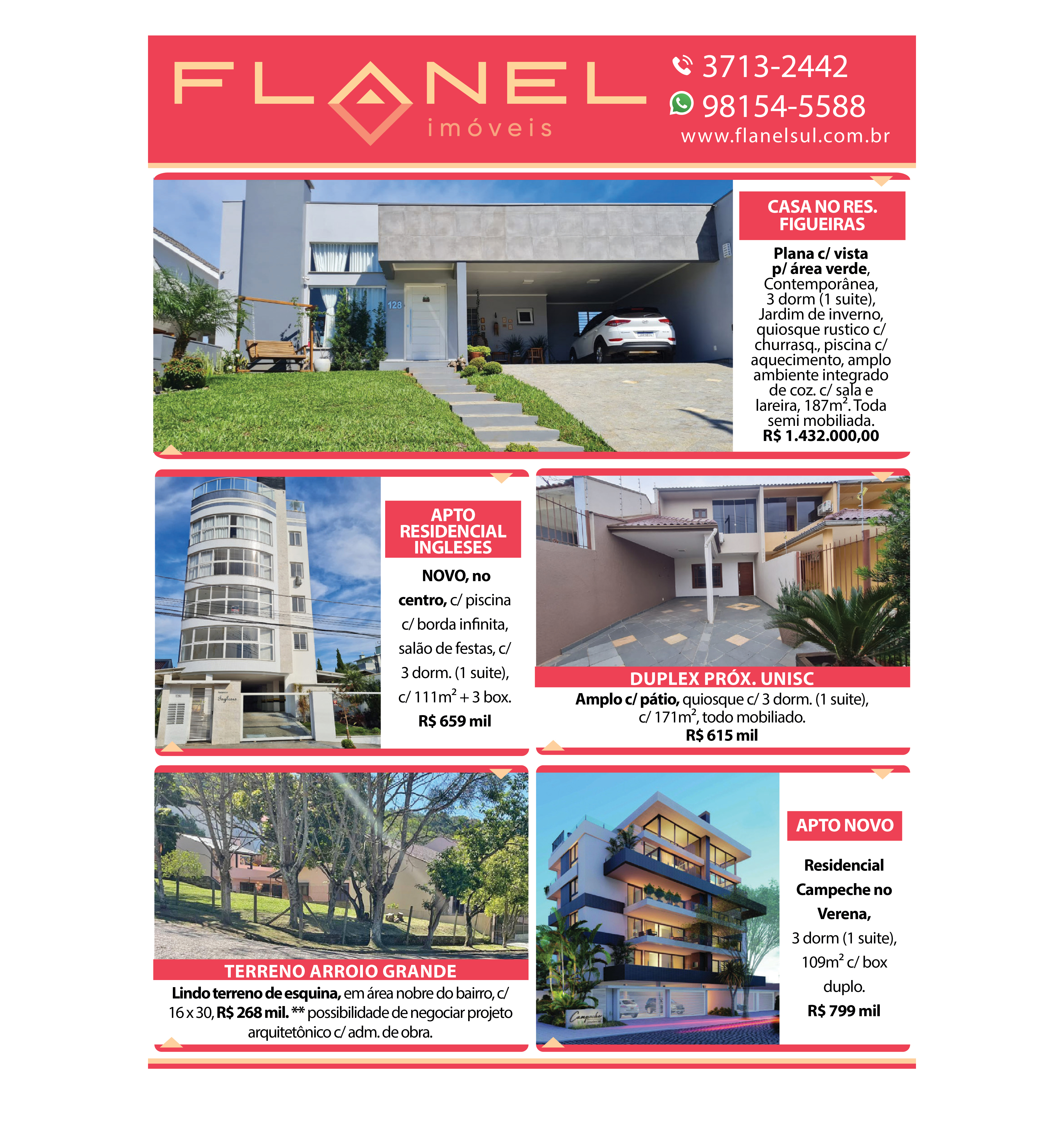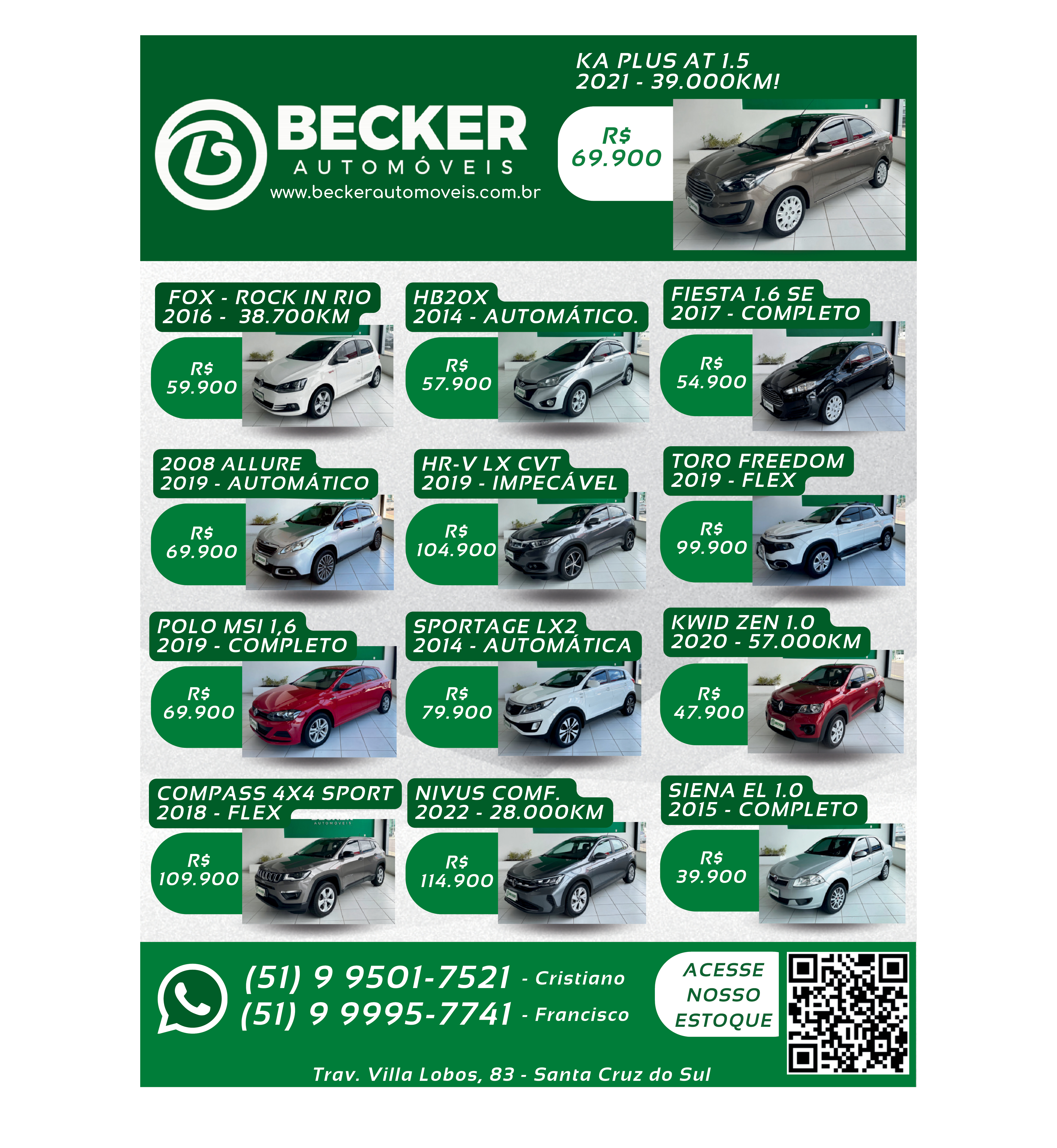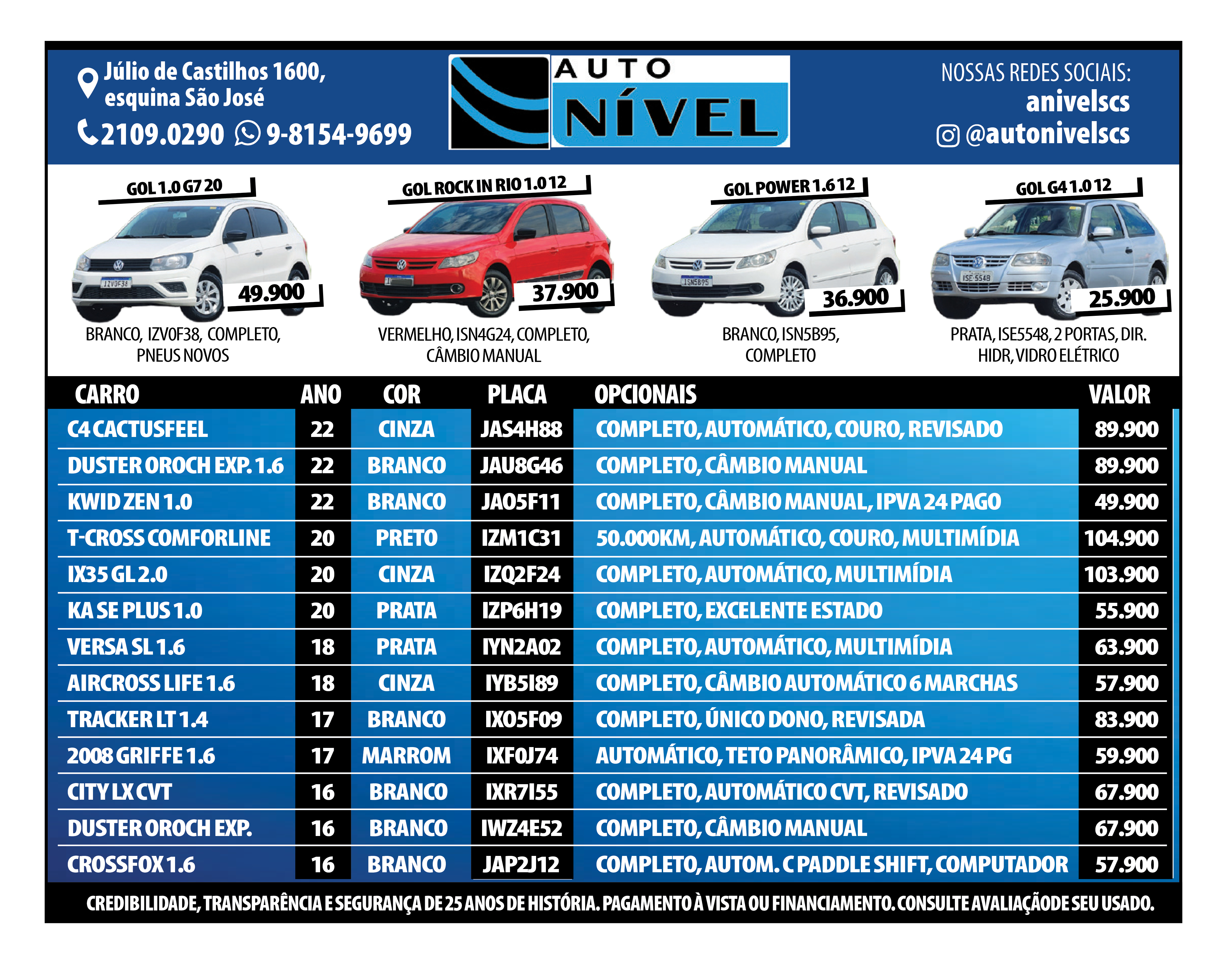 O suplemento de Classificados, que circula nas edições de terças, quintas e sábados, é um dos mais tradicionais da Gazeta do Sul, como vitrine e canal de negócios, de oferta, compra e venda em toda a região central do Rio Grande do Sul. E, para enriquecer pesquisas de produtos e serviços e possibilitar resultado ainda melhor a usuários e parceiros, nos anúncios de clientes cadastrados, o leitor tem acesso direto com link ao site do anunciante, onde poderá verificar mais detalhes sobre os itens. Confira as ofertas: