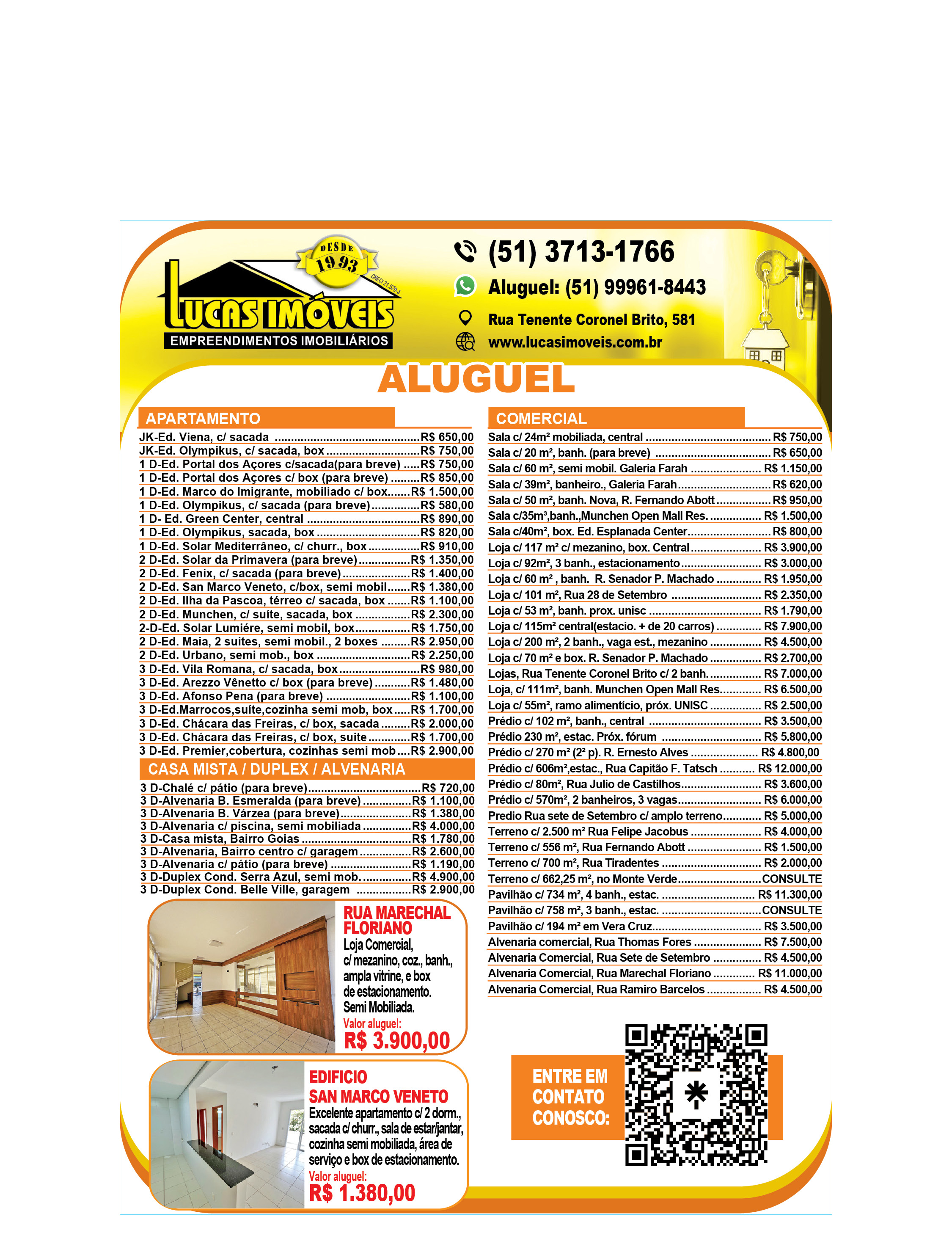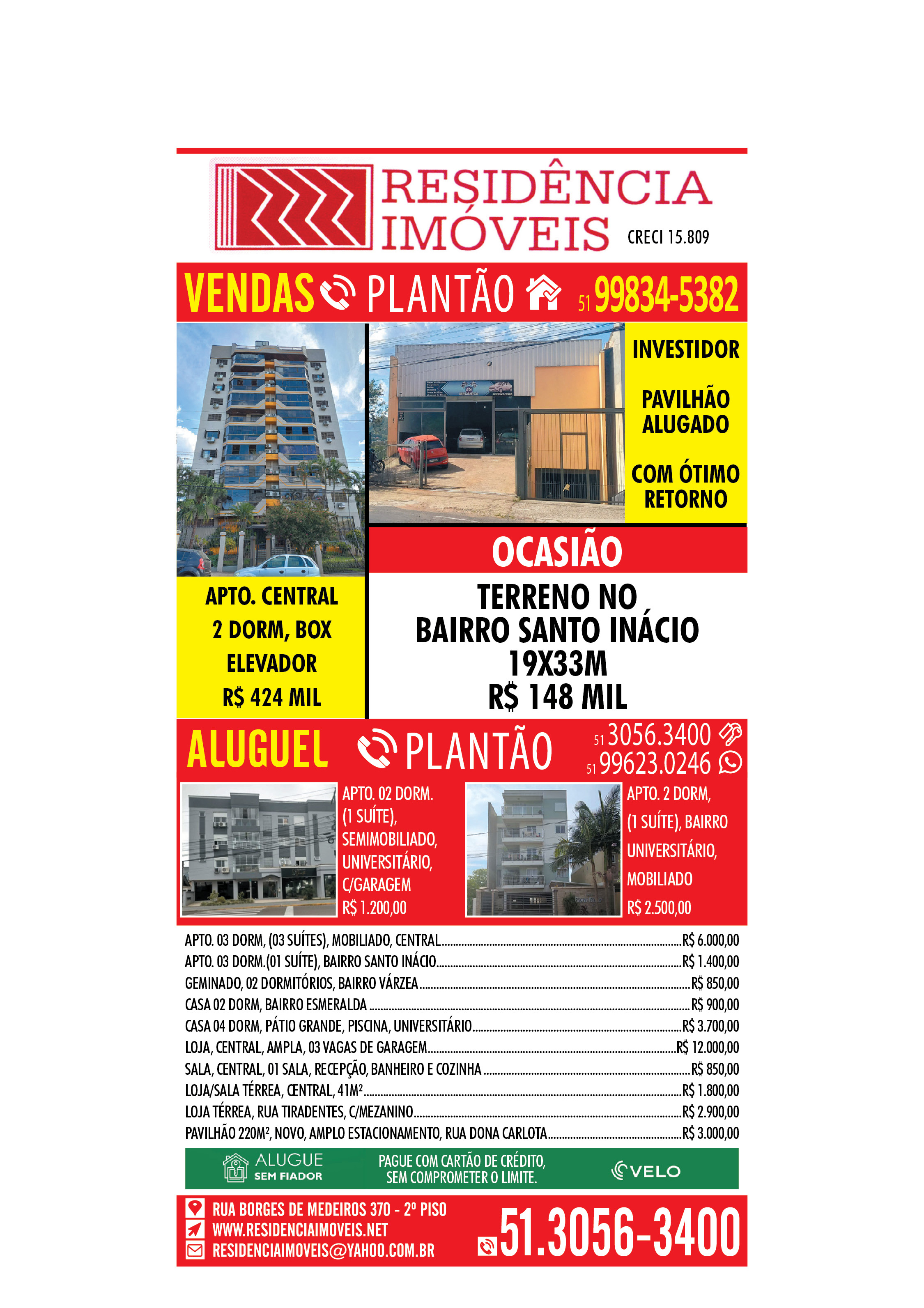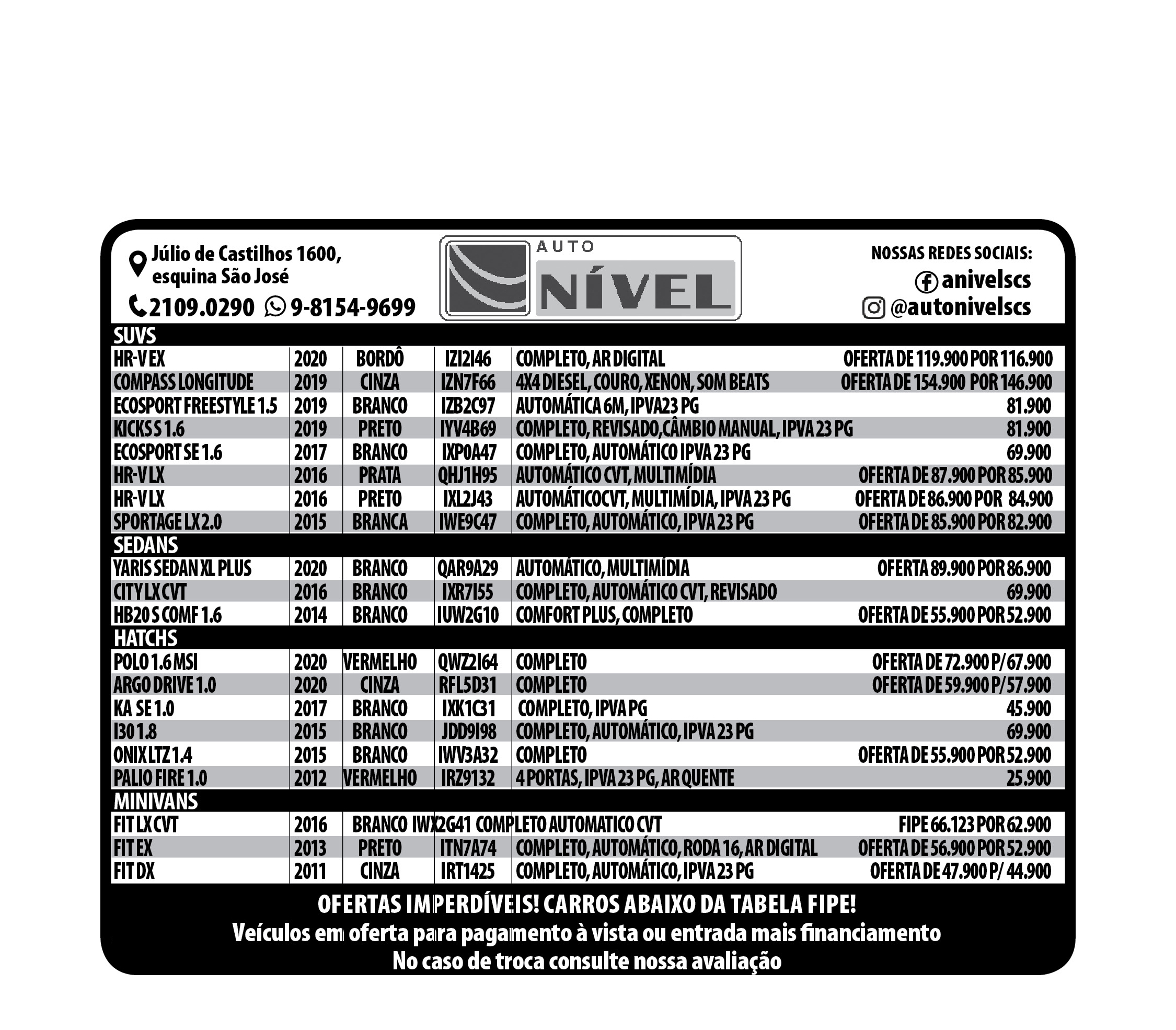 O suplemento de Classificados, que circula nas edições de terças, quintas e sábados, é um dos mais tradicionais da Gazeta do Sul, como vitrine e canal de negócios, de oferta, compra e venda em toda a região central do Rio Grande do Sul. E, para enriquecer pesquisas de produtos e serviços e possibilitar resultado ainda melhor a usuários e parceiros, nos anúncios de clientes cadastrados, o leitor tem acesso direto com link ao site do anunciante, onde poderá verificar mais detalhes sobre os itens. Confira as ofertas: