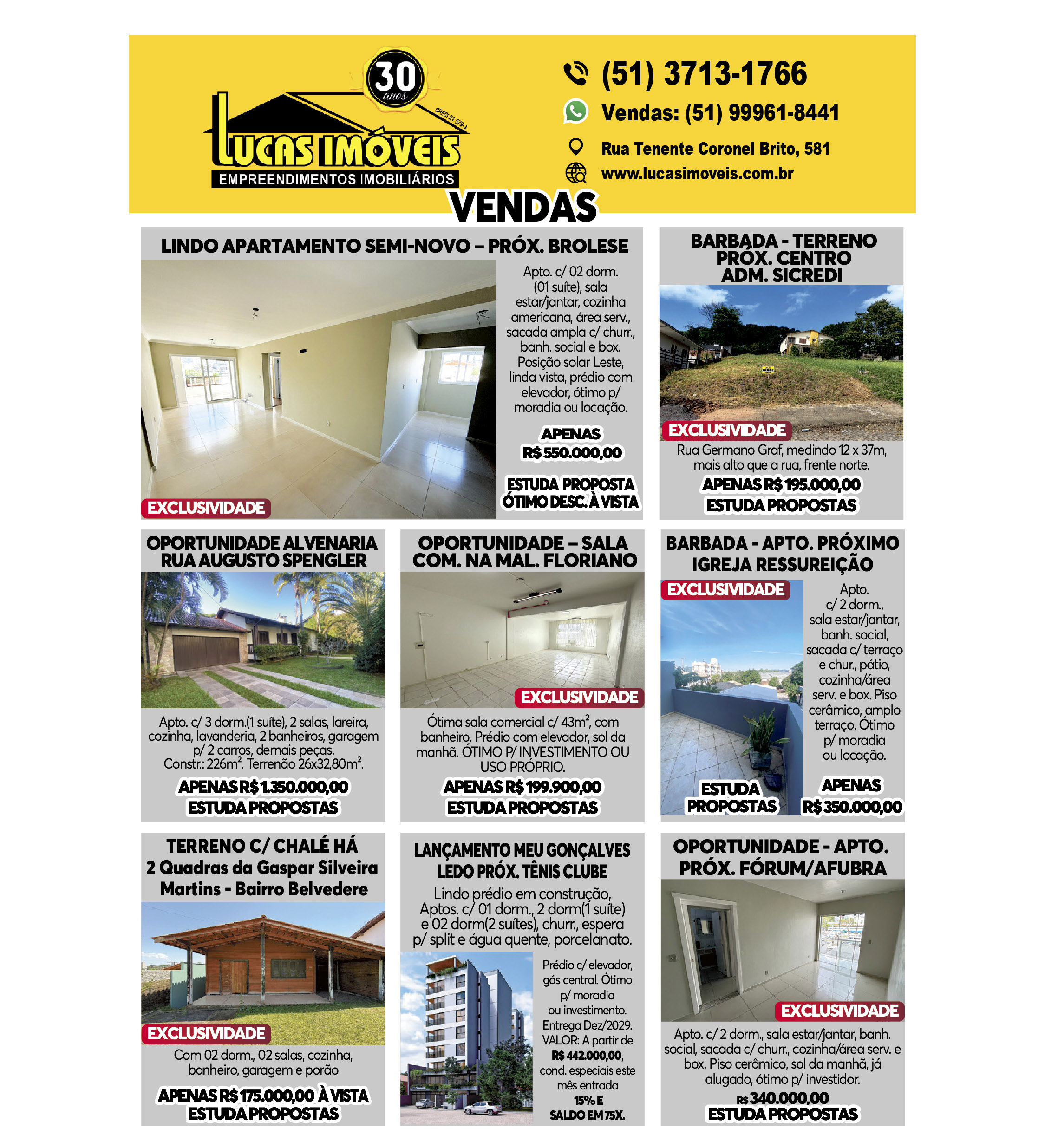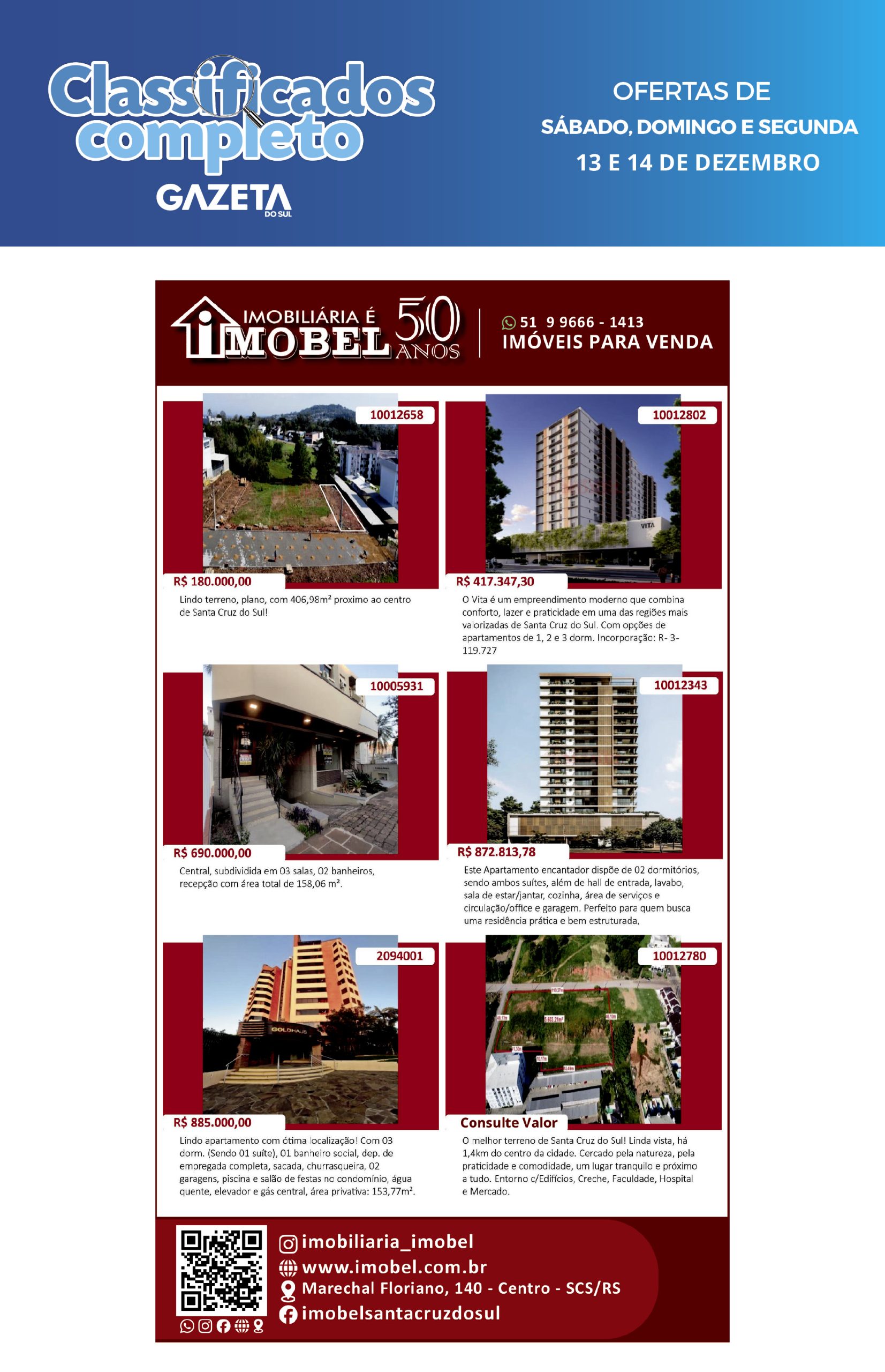 O suplemento de Classificados, que circula nas edições de terças, quintas e sábados, é um dos mais tradicionais da Gazeta do Sul, como vitrine e canal de negócios, de oferta, compra e venda em toda a região central do Rio Grande do Sul. E, para enriquecer pesquisas de produtos e serviços e possibilitar resultado ainda melhor a usuários e parceiros, nos anúncios de clientes cadastrados, o leitor tem acesso direto com link ao site do anunciante, onde poderá verificar mais detalhes sobre os itens. Confira as ofertas: