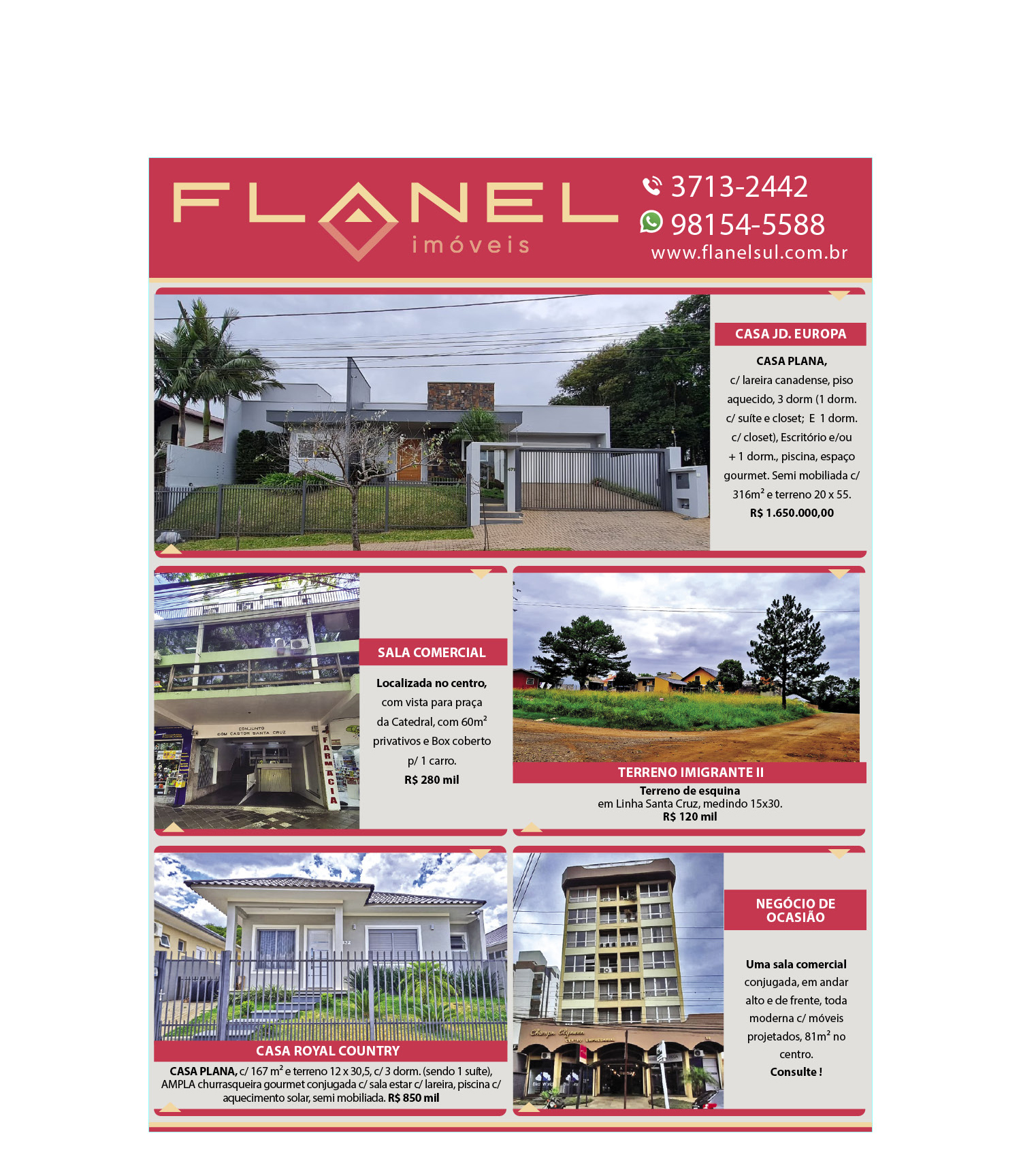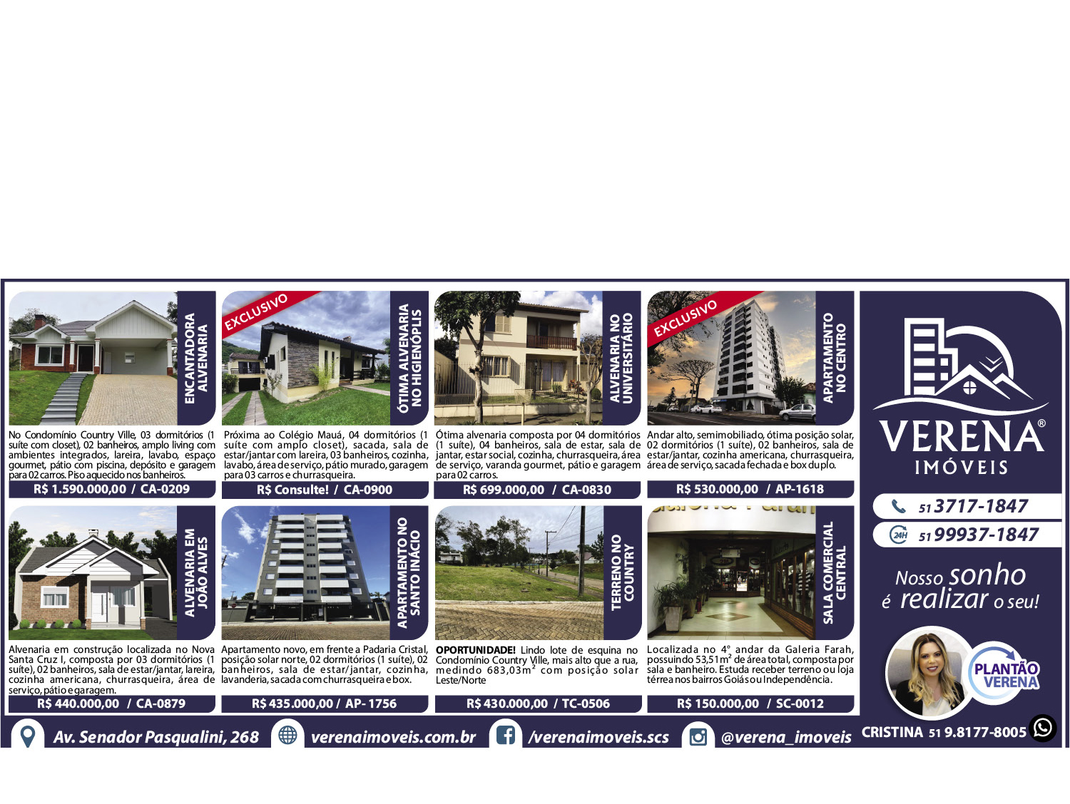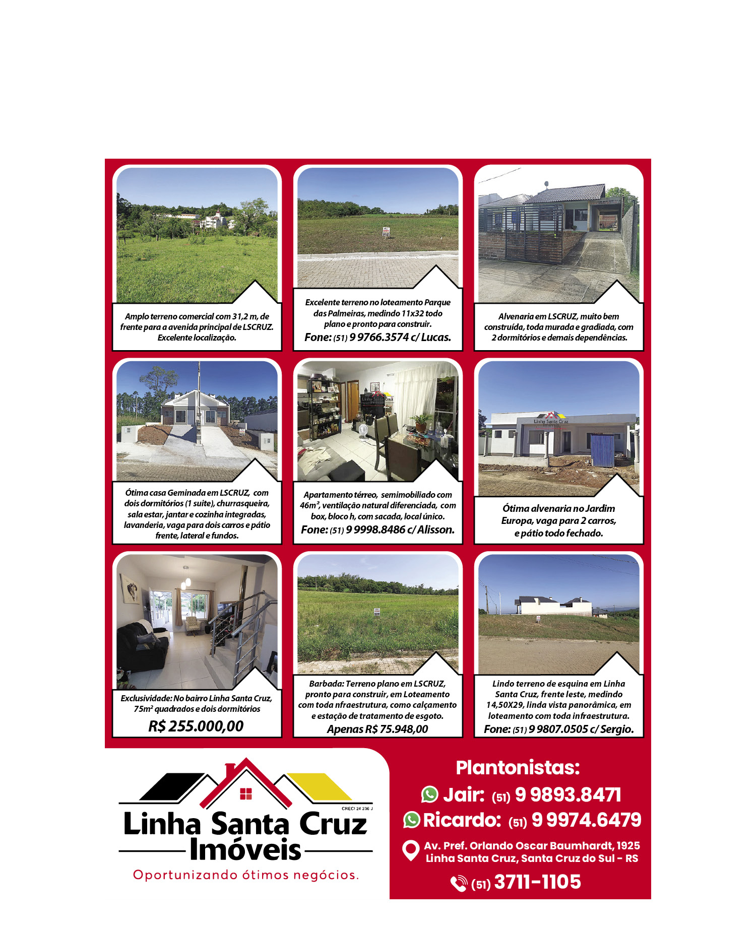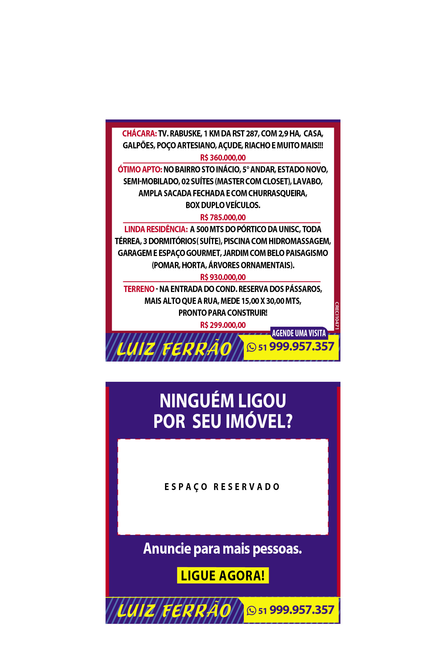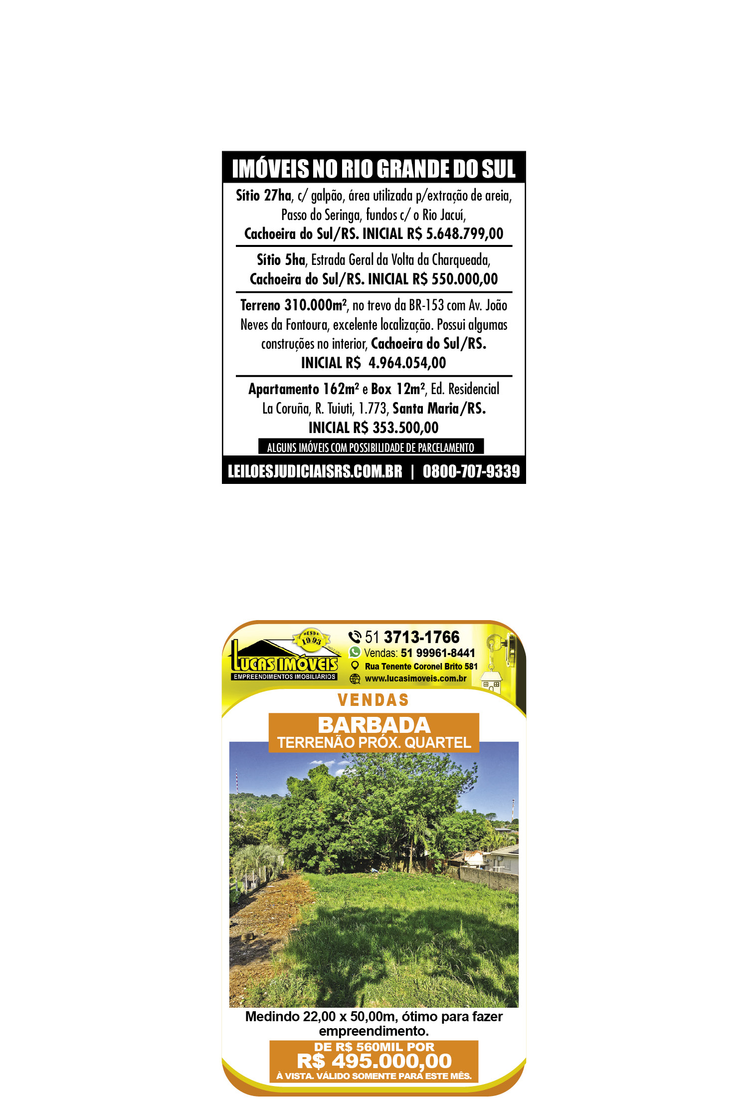 O suplemento de Classificados, que circula nas edições de terças, quintas e sábados, é um dos mais tradicionais da Gazeta do Sul, como vitrine e canal de negócios, de oferta, compra e venda em toda a região central do Rio Grande do Sul. E, para enriquecer pesquisas de produtos e serviços e possibilitar resultado ainda melhor a usuários e parceiros, nos anúncios de clientes cadastrados, o leitor tem acesso direto com link ao site do anunciante, onde poderá verificar mais detalhes sobre os itens. Confira as ofertas: