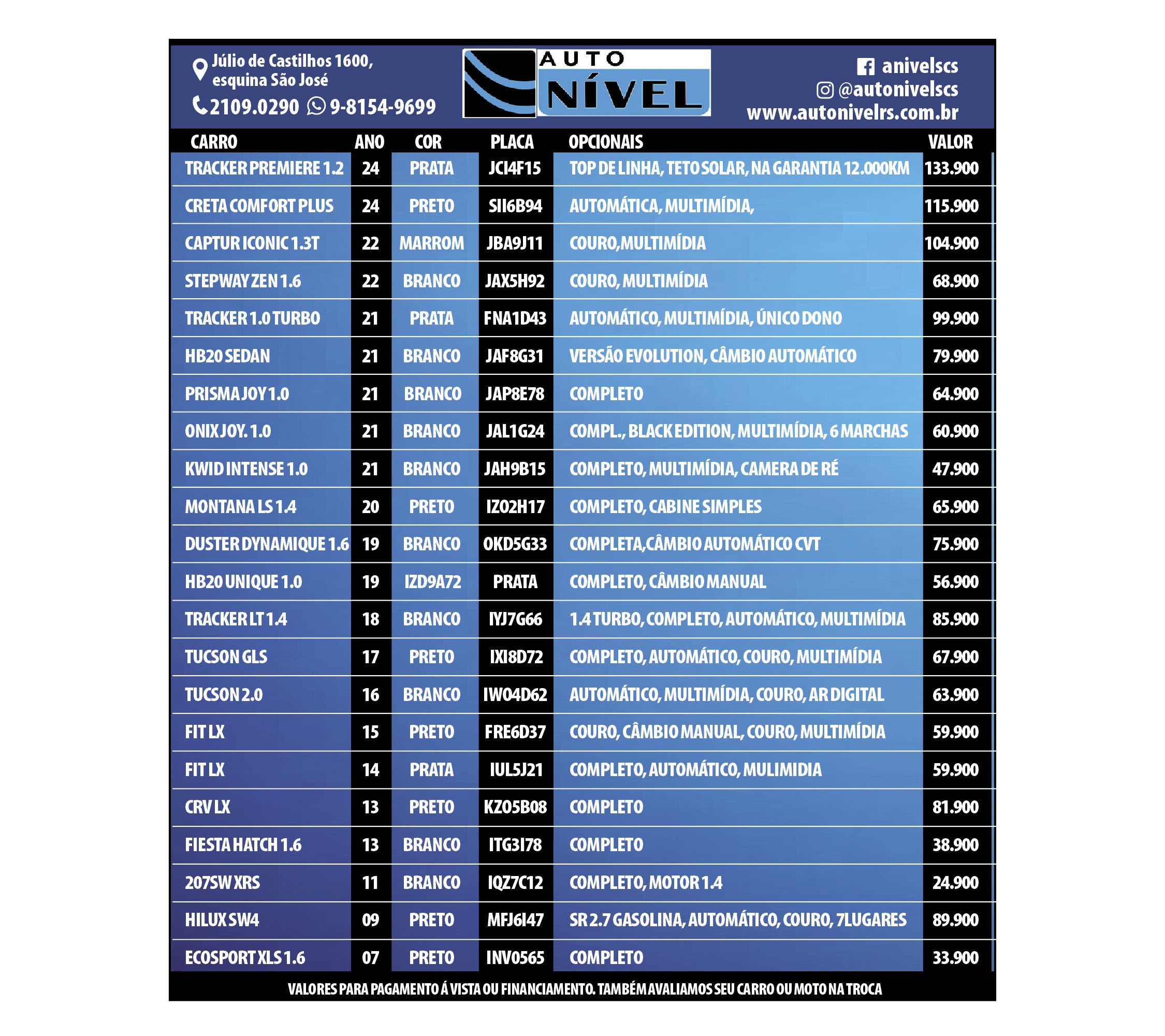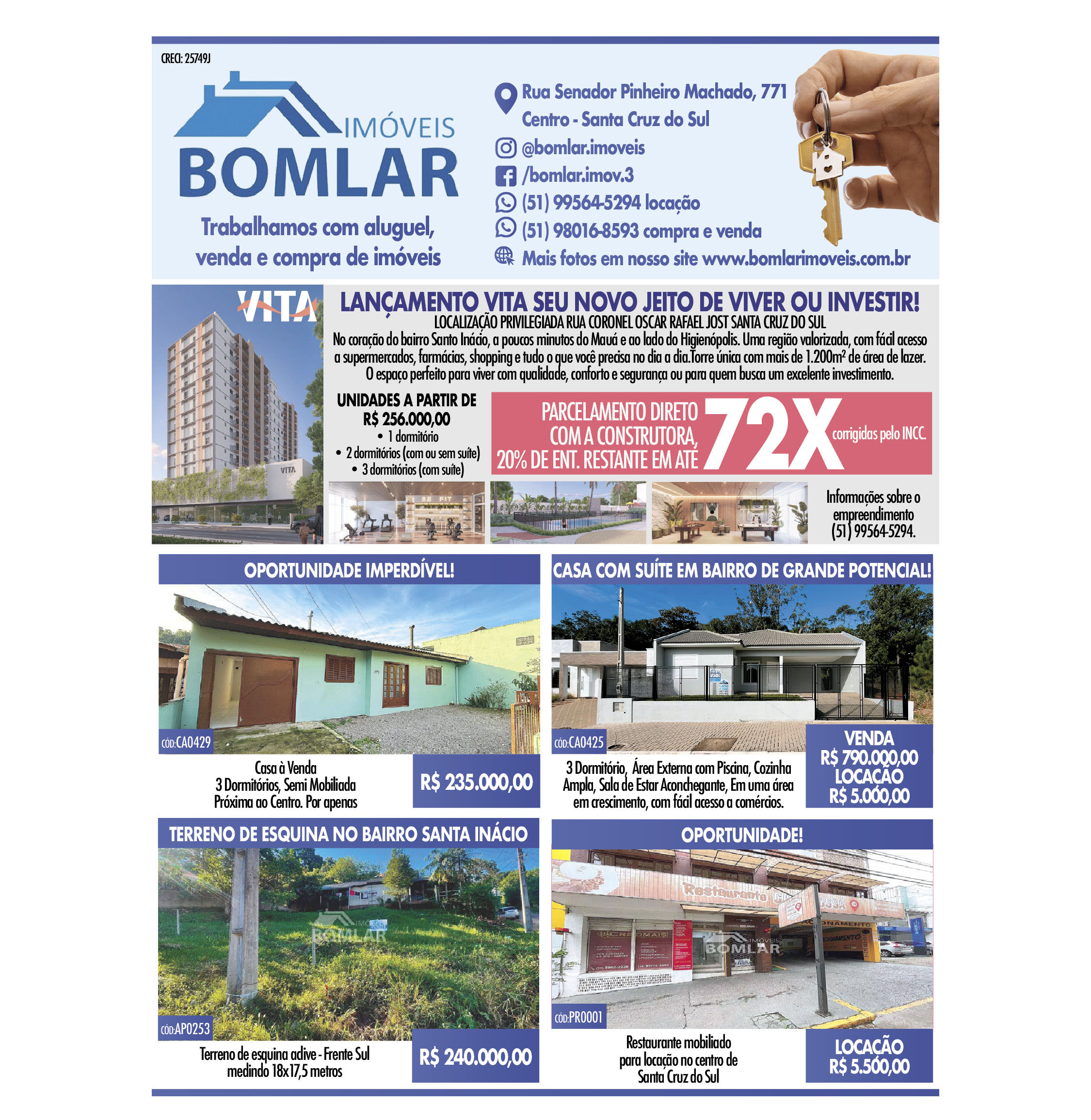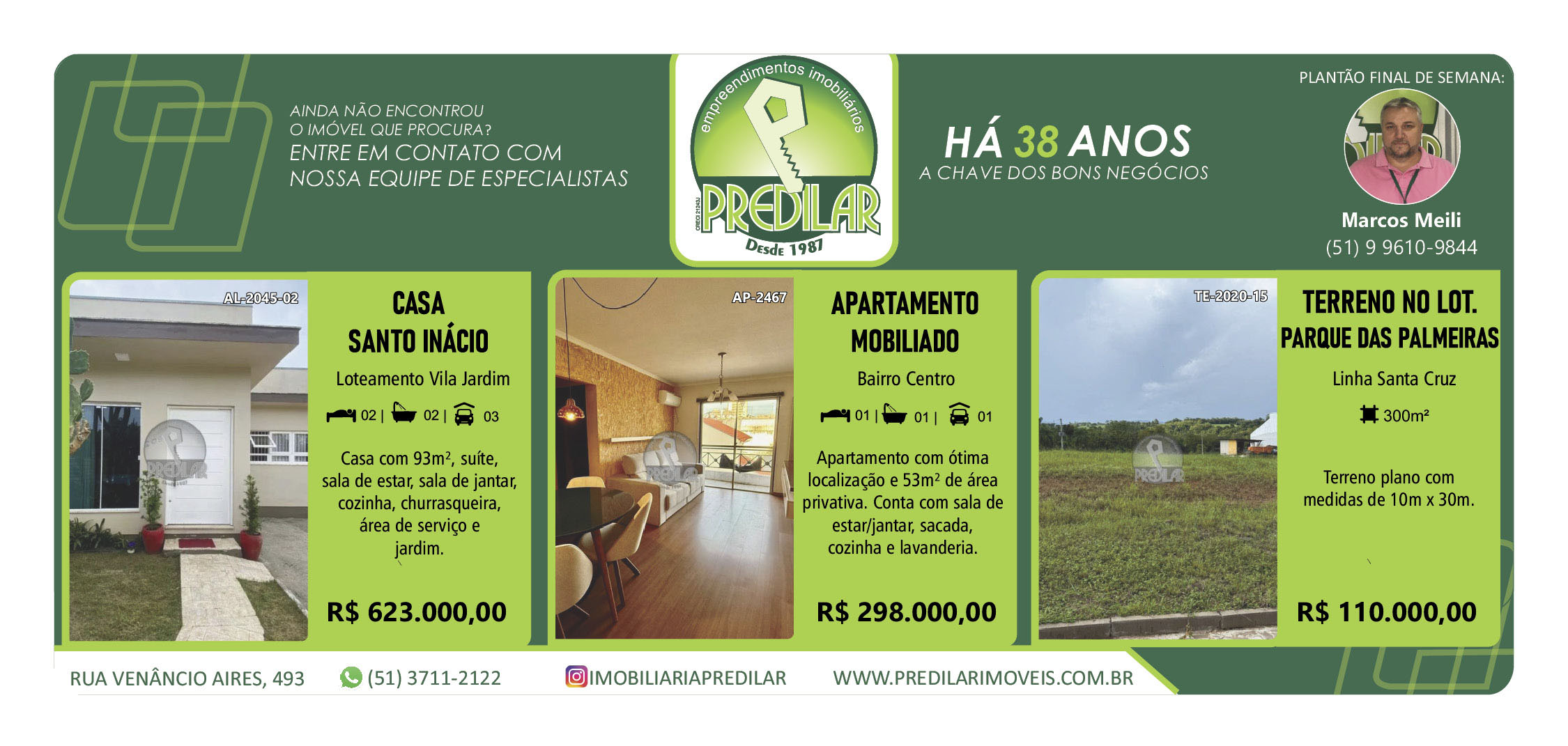 O suplemento de Classificados, que circula nas edições de terças, quintas e sábados, é um dos mais tradicionais da Gazeta do Sul, como vitrine e canal de negócios, de oferta, compra e venda em toda a região central do Rio Grande do Sul. E, para enriquecer pesquisas de produtos e serviços e possibilitar resultado ainda melhor a usuários e parceiros, nos anúncios de clientes cadastrados, o leitor tem acesso direto com link ao site do anunciante, onde poderá verificar mais detalhes sobre os itens. Confira as ofertas: