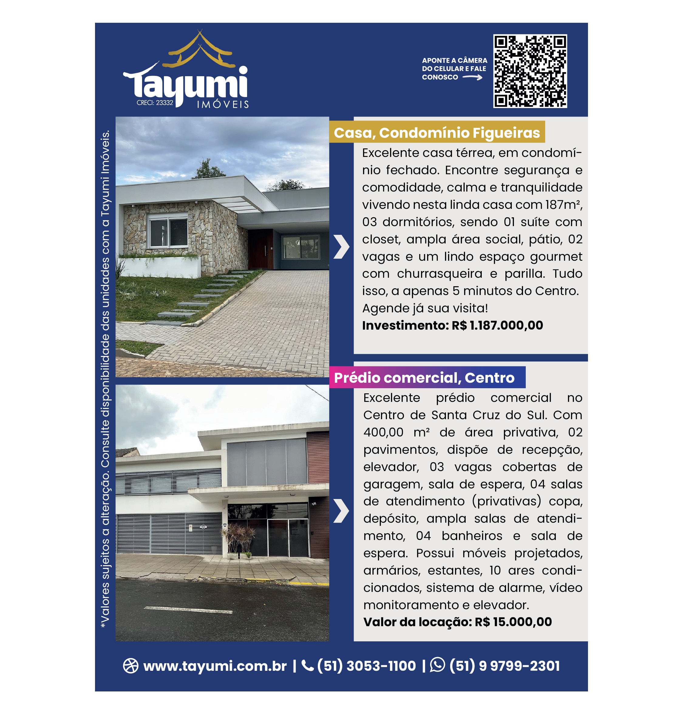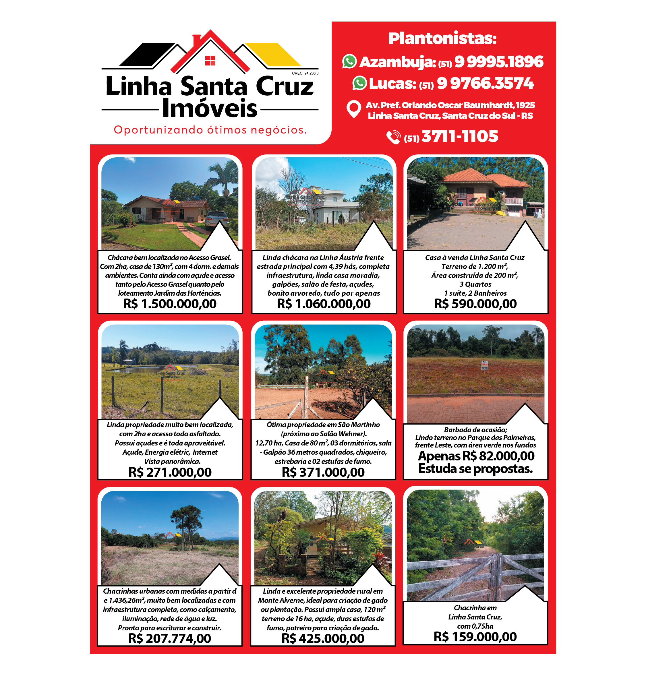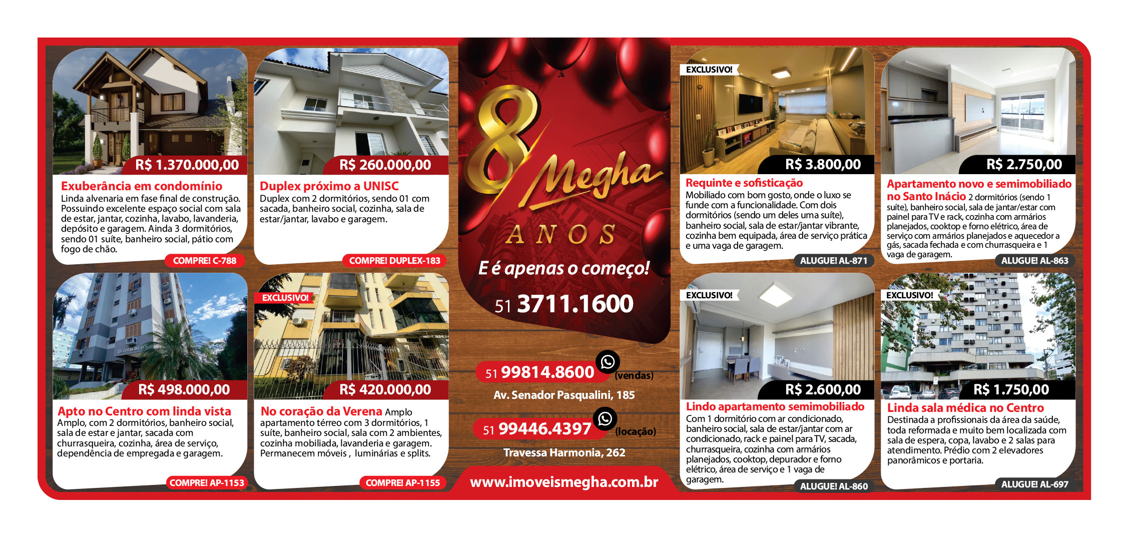 O suplemento de Classificados, que circula nas edições de terças, quintas e sábados, é um dos mais tradicionais da Gazeta do Sul, como vitrine e canal de negócios, de oferta, compra e venda em toda a região central do Rio Grande do Sul. E, para enriquecer pesquisas de produtos e serviços e possibilitar resultado ainda melhor a usuários e parceiros, nos anúncios de clientes cadastrados, o leitor tem acesso direto com link ao site do anunciante, onde poderá verificar mais detalhes sobre os itens. Confira as ofertas: