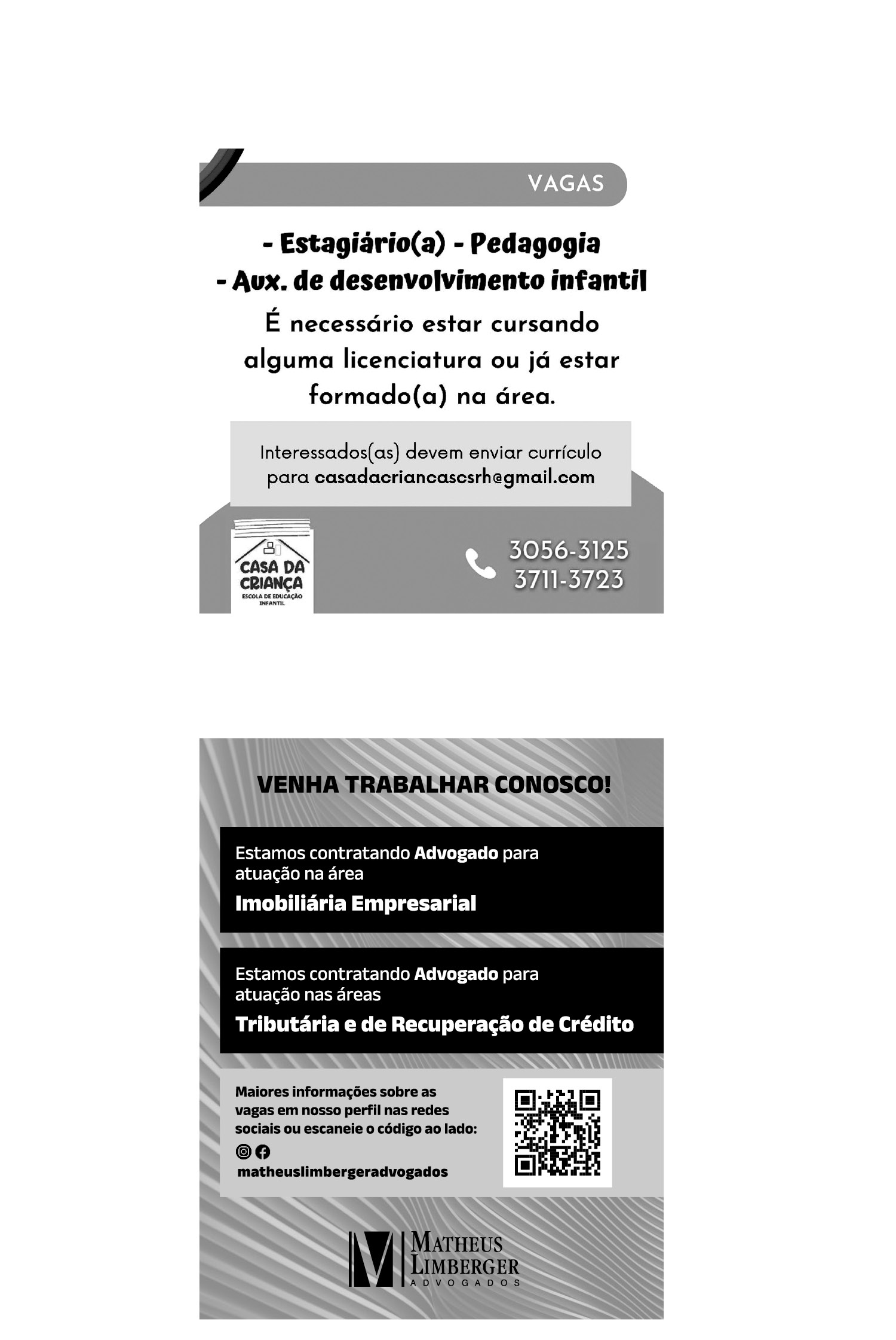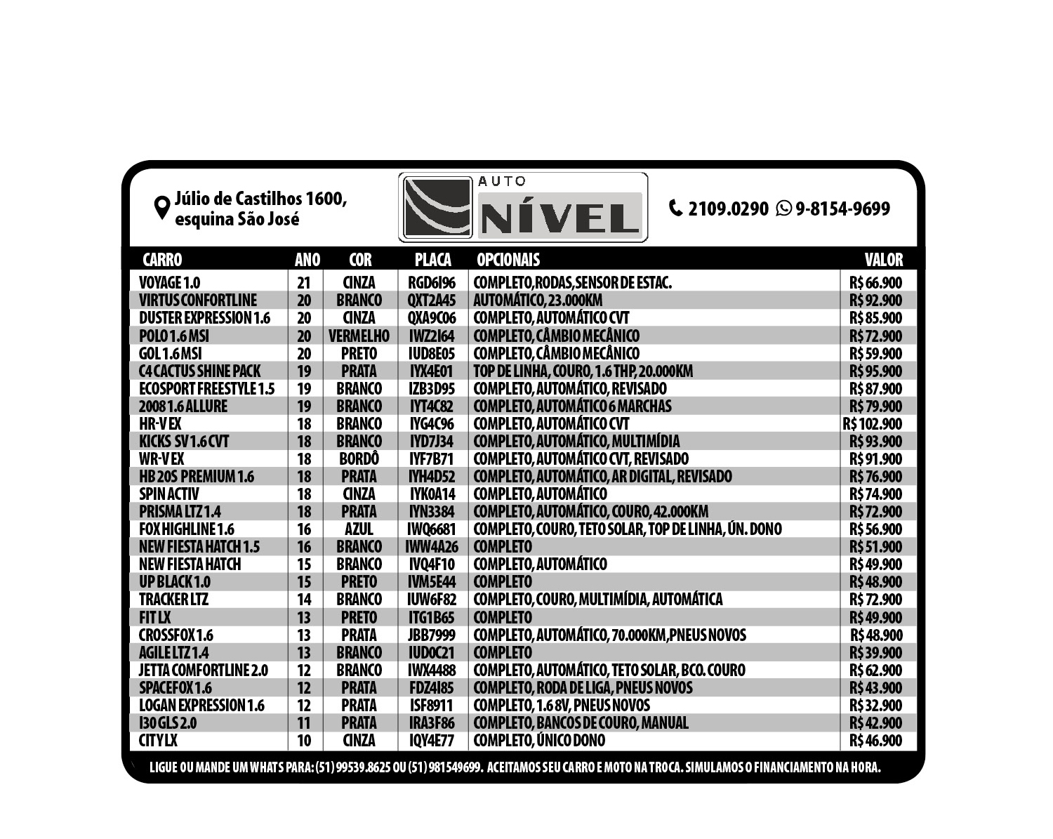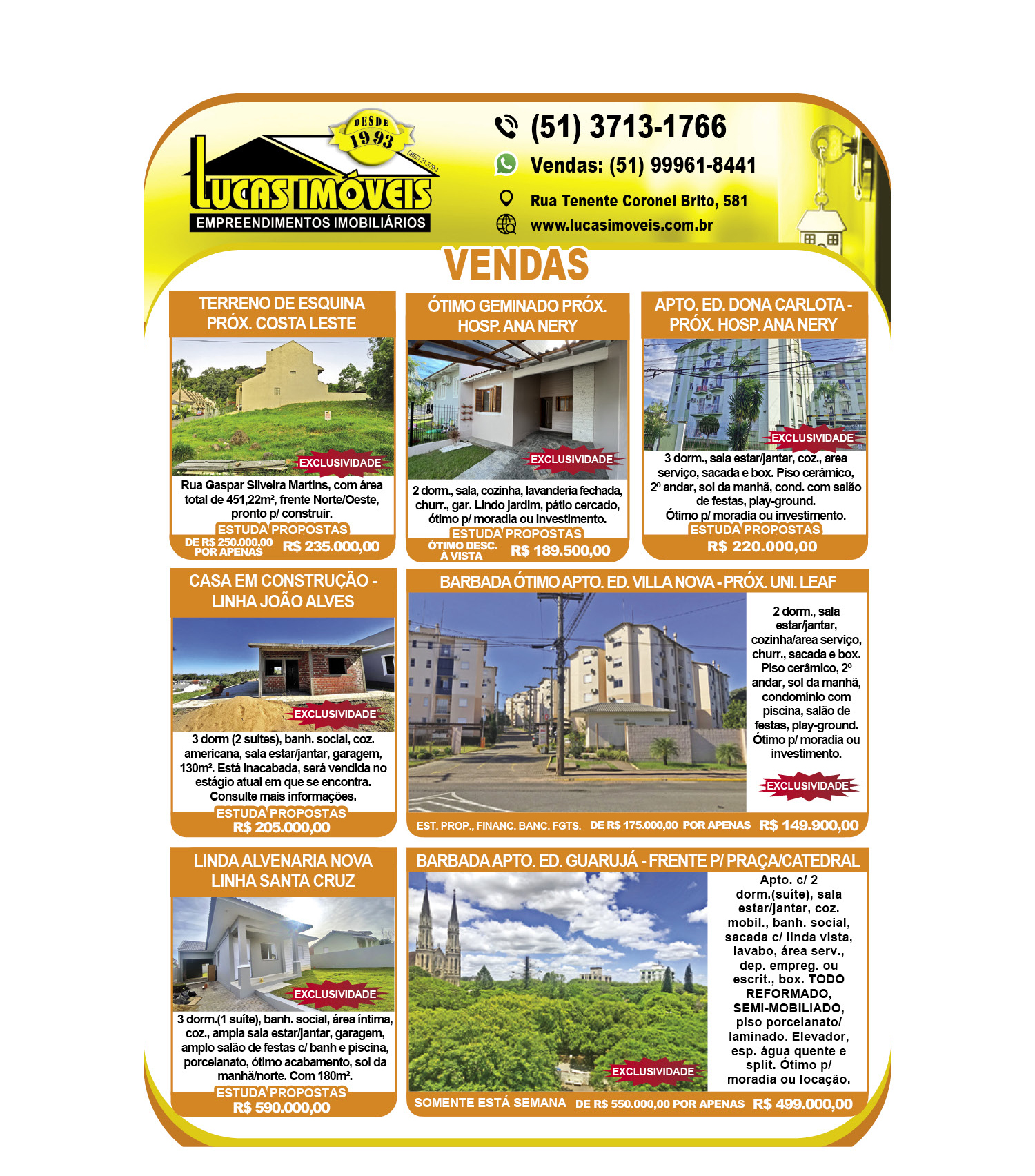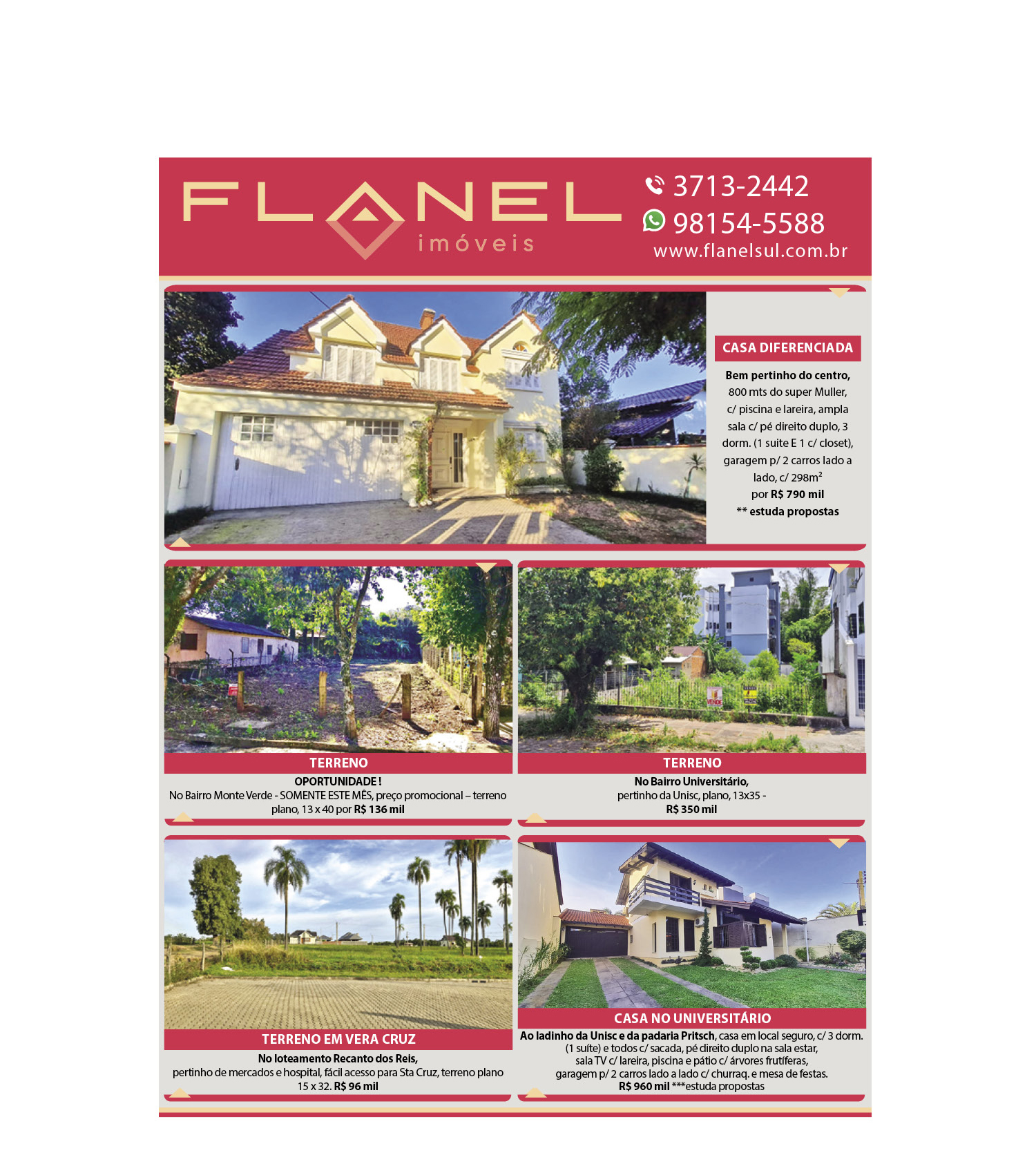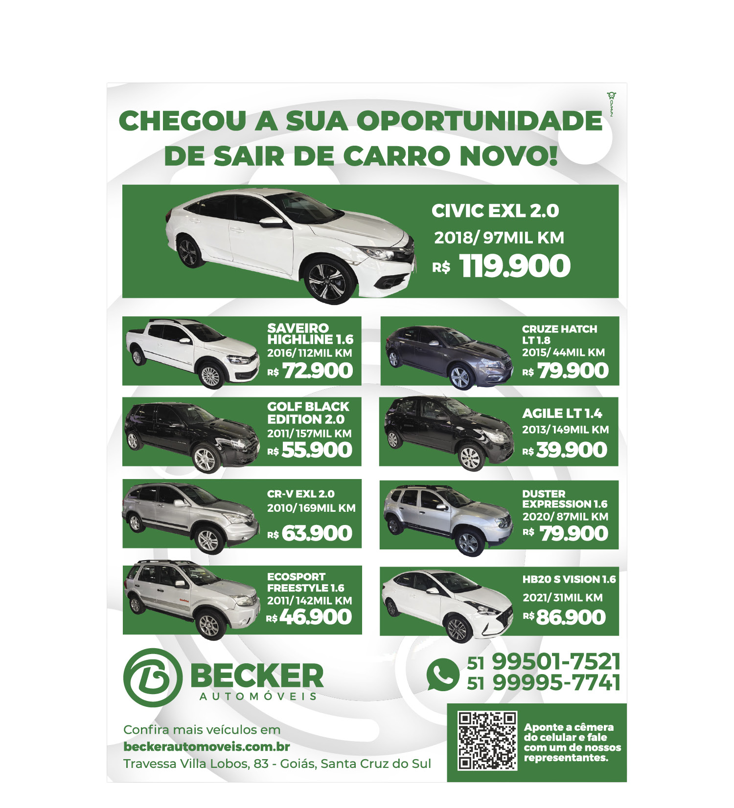 O suplemento de Classificados, que circula nas edições de terças, quintas e sábados, é um dos mais tradicionais da Gazeta do Sul, como vitrine e canal de negócios, de oferta, compra e venda em toda a região central do Rio Grande do Sul. E, para enriquecer pesquisas de produtos e serviços e possibilitar resultado ainda melhor a usuários e parceiros, nos anúncios de clientes cadastrados, o leitor tem acesso direto com link ao site do anunciante, onde poderá verificar mais detalhes sobre os itens. Confira as ofertas: