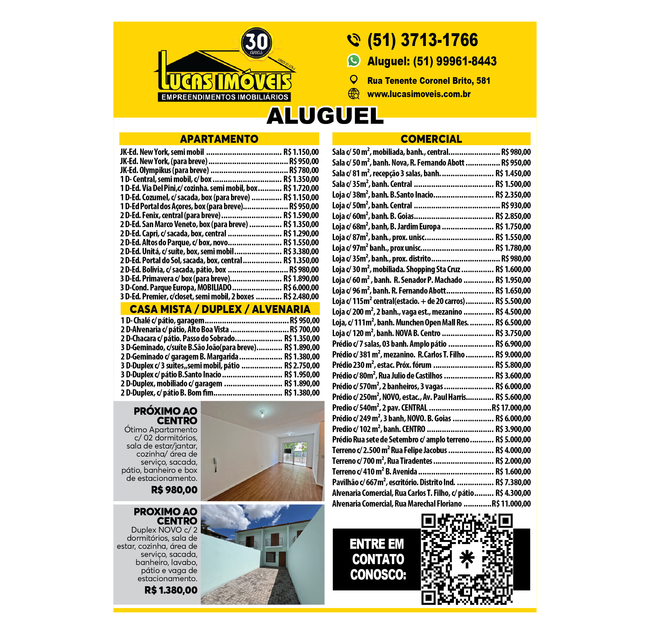 O suplemento de Classificados, que circula nas edições de terças, quintas e sábados, é um dos mais tradicionais da Gazeta do Sul, como vitrine e canal de negócios, de oferta, compra e venda em toda a região central do Rio Grande do Sul. E, para enriquecer pesquisas de produtos e serviços e possibilitar resultado ainda melhor a usuários e parceiros, nos anúncios de clientes cadastrados, o leitor tem acesso direto com link ao site do anunciante, onde poderá verificar mais detalhes sobre os itens. Confira as ofertas: