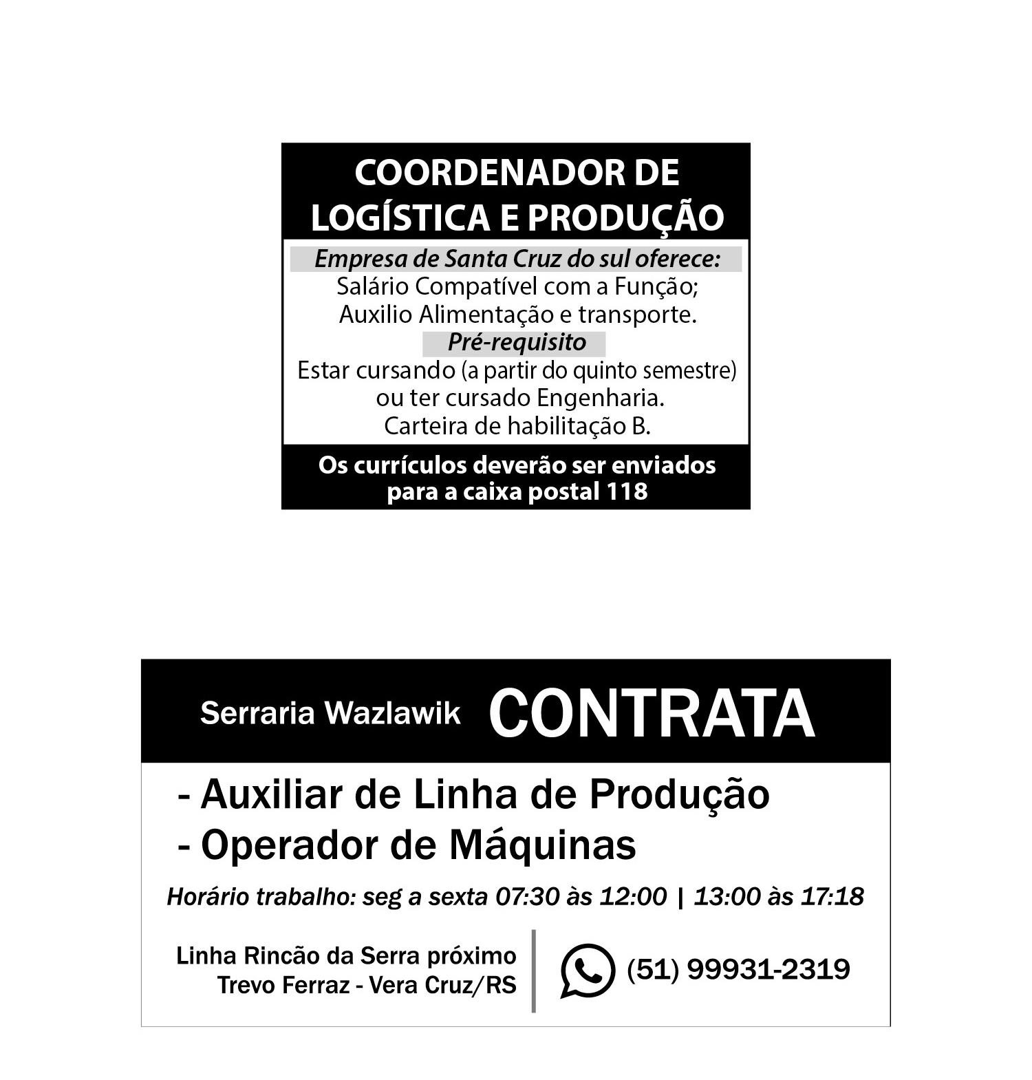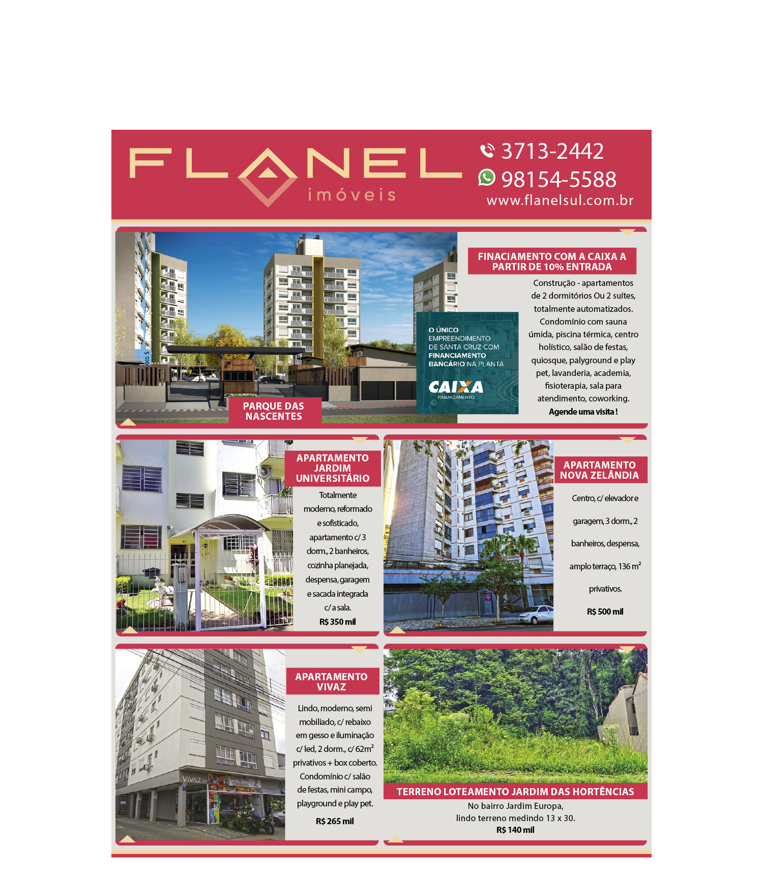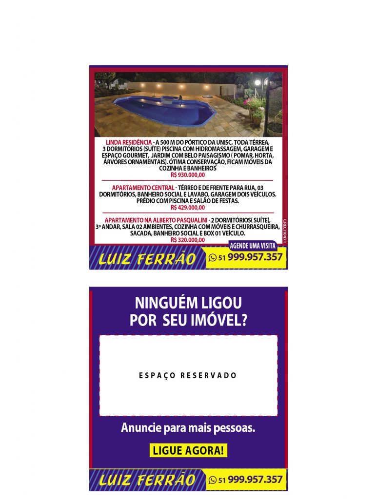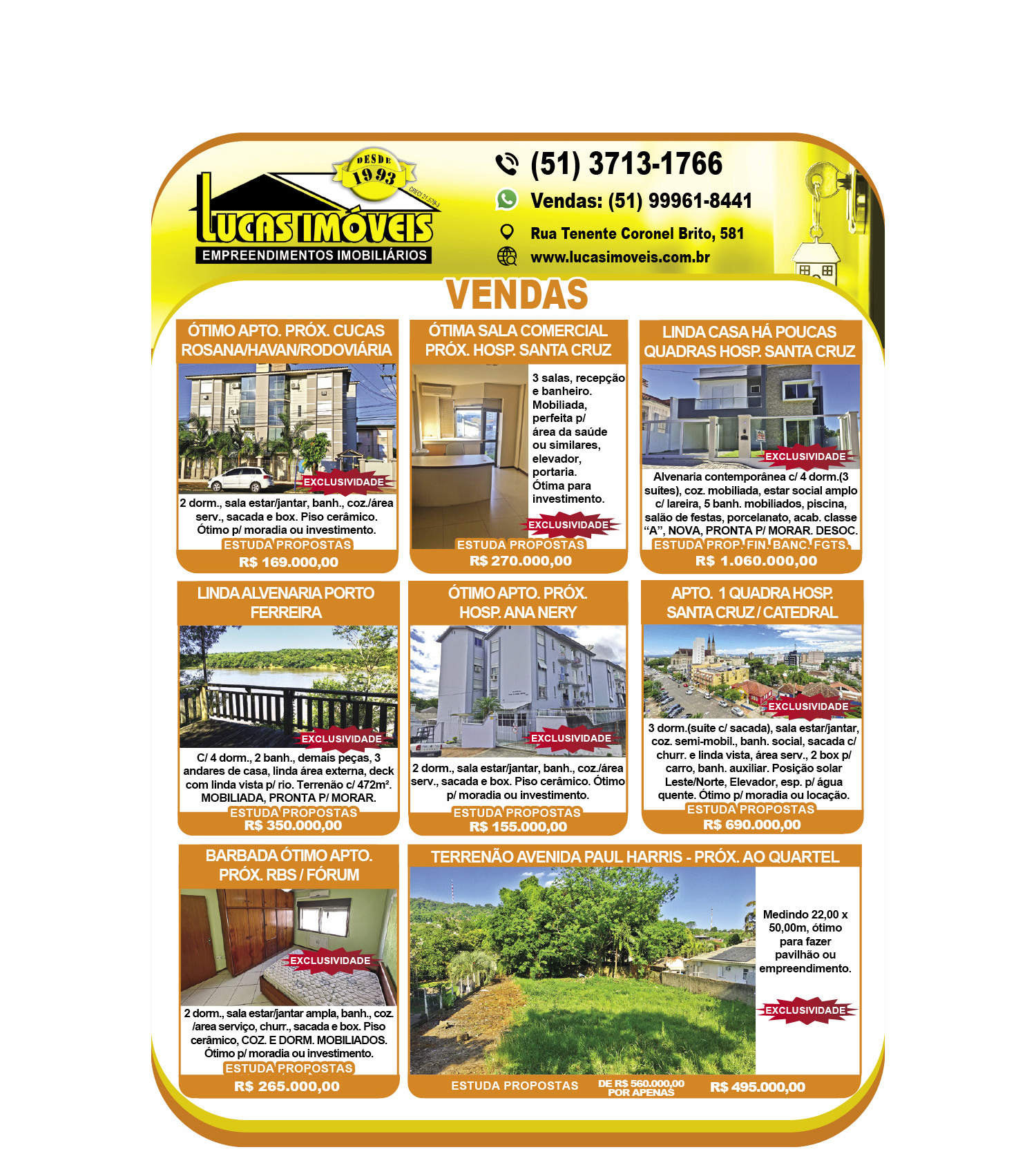 O suplemento de Classificados, que circula nas edições de terças, quintas e sábados, é um dos mais tradicionais da Gazeta do Sul, como vitrine e canal de negócios, de oferta, compra e venda em toda a região central do Rio Grande do Sul. E, para enriquecer pesquisas de produtos e serviços e possibilitar resultado ainda melhor a usuários e parceiros, nos anúncios de clientes cadastrados, o leitor tem acesso direto com link ao site do anunciante, onde poderá verificar mais detalhes sobre os itens. Confira as ofertas: