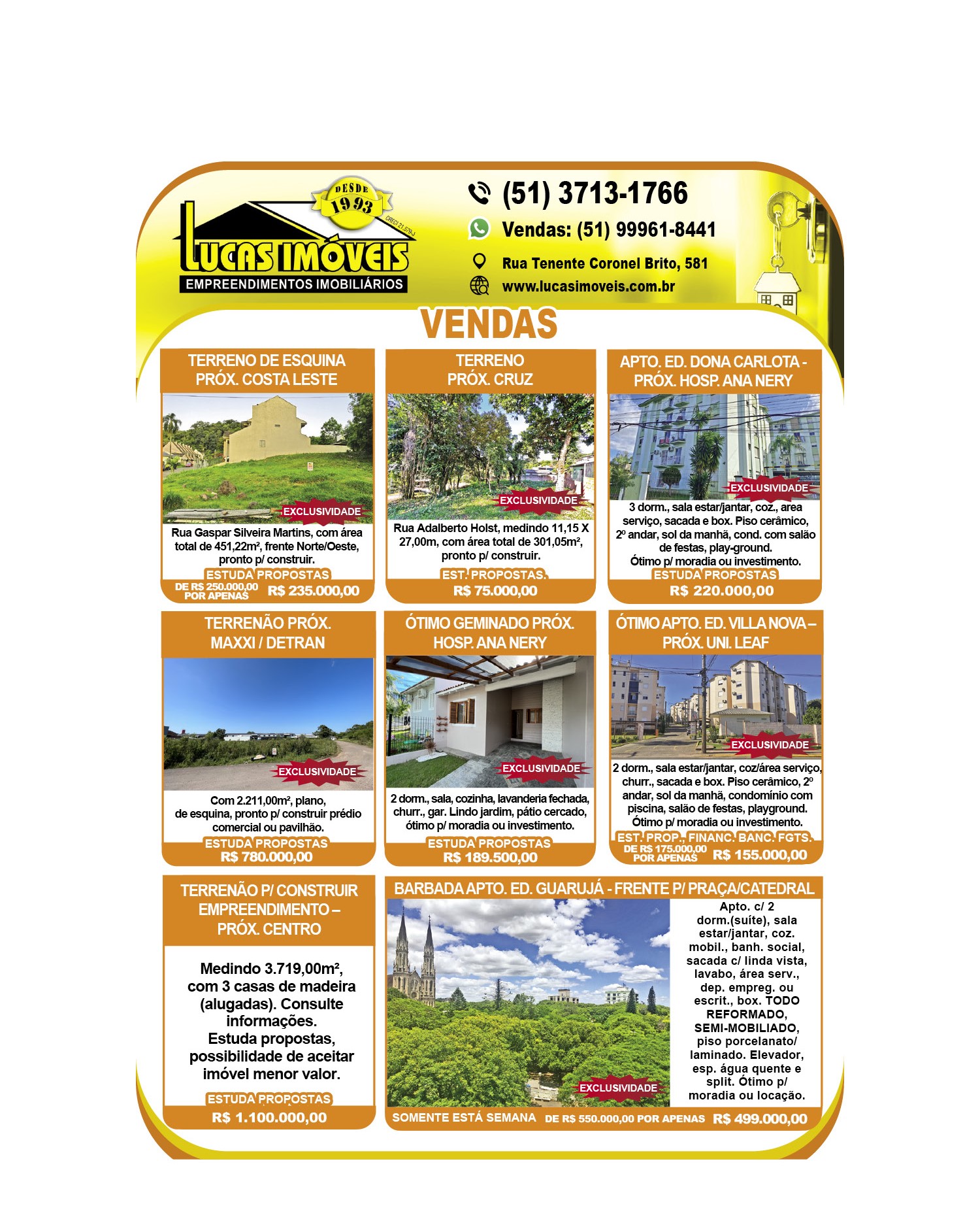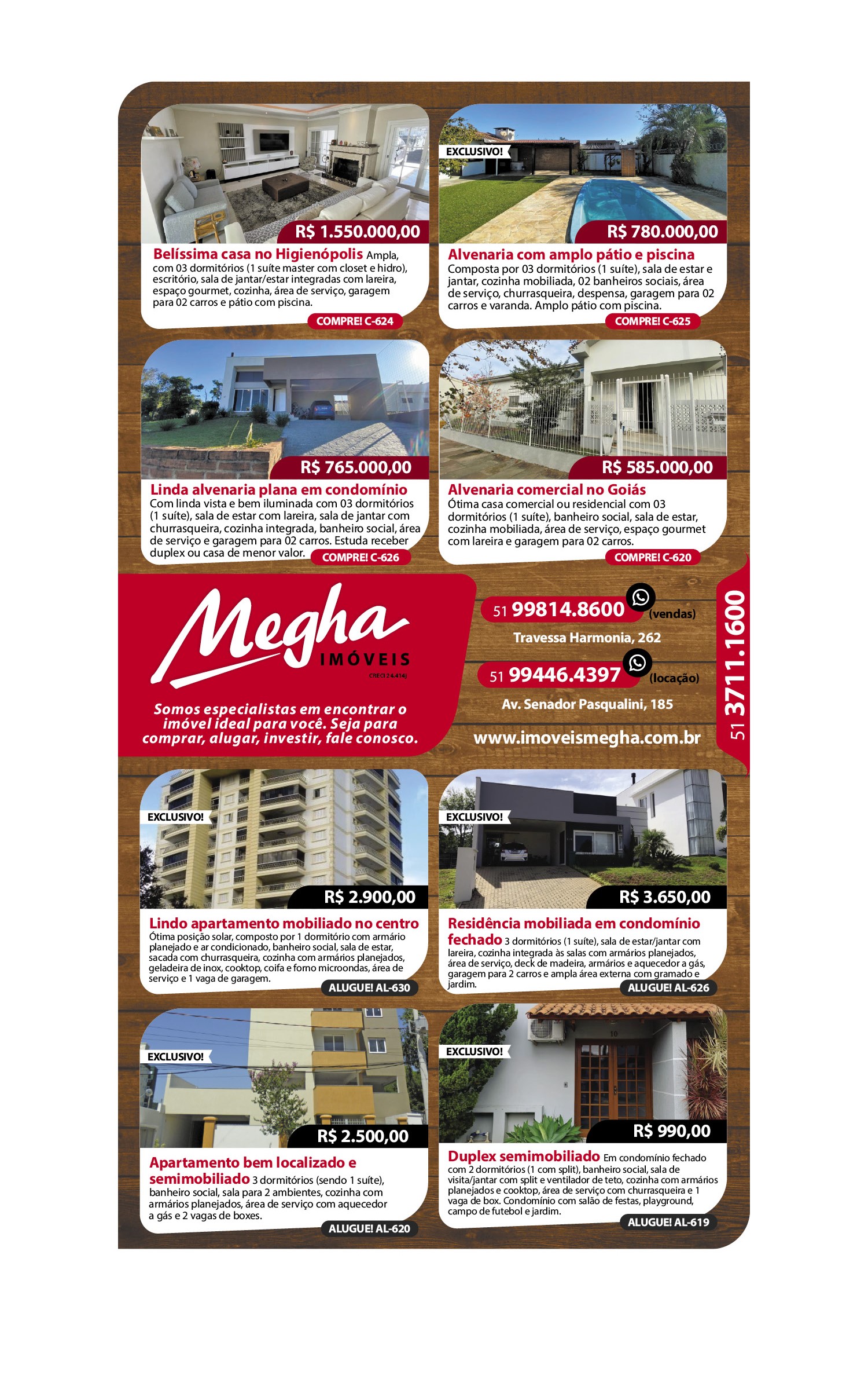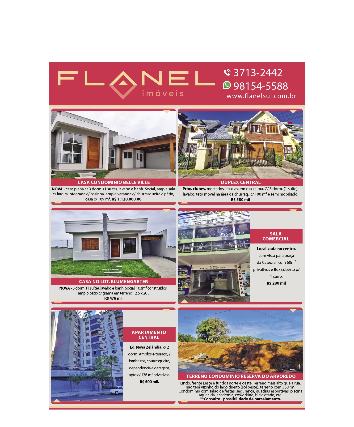 O suplemento de Classificados, que circula nas edições de terças, quintas e sábados, é um dos mais tradicionais da Gazeta do Sul, como vitrine e canal de negócios, de oferta, compra e venda em toda a região central do Rio Grande do Sul. E, para enriquecer pesquisas de produtos e serviços e possibilitar resultado ainda melhor a usuários e parceiros, nos anúncios de clientes cadastrados, o leitor tem acesso direto com link ao site do anunciante, onde poderá verificar mais detalhes sobre os itens. Confira as ofertas: