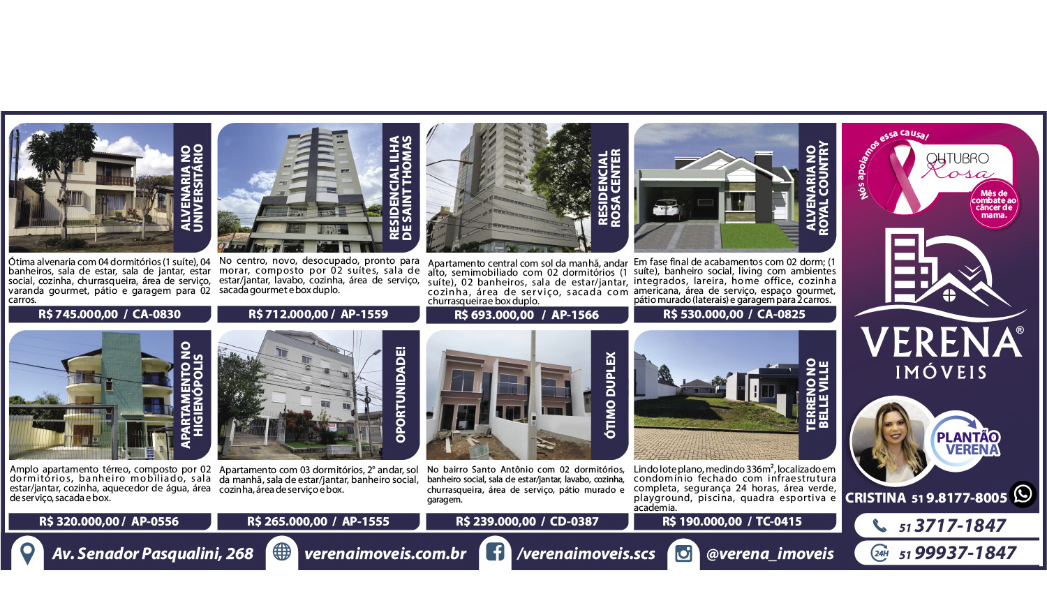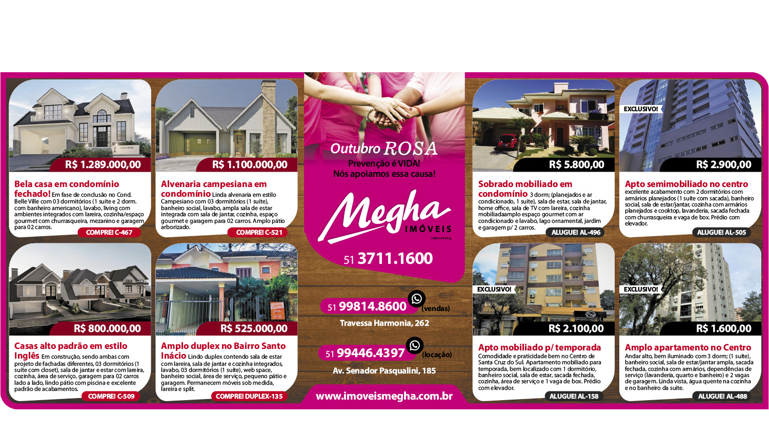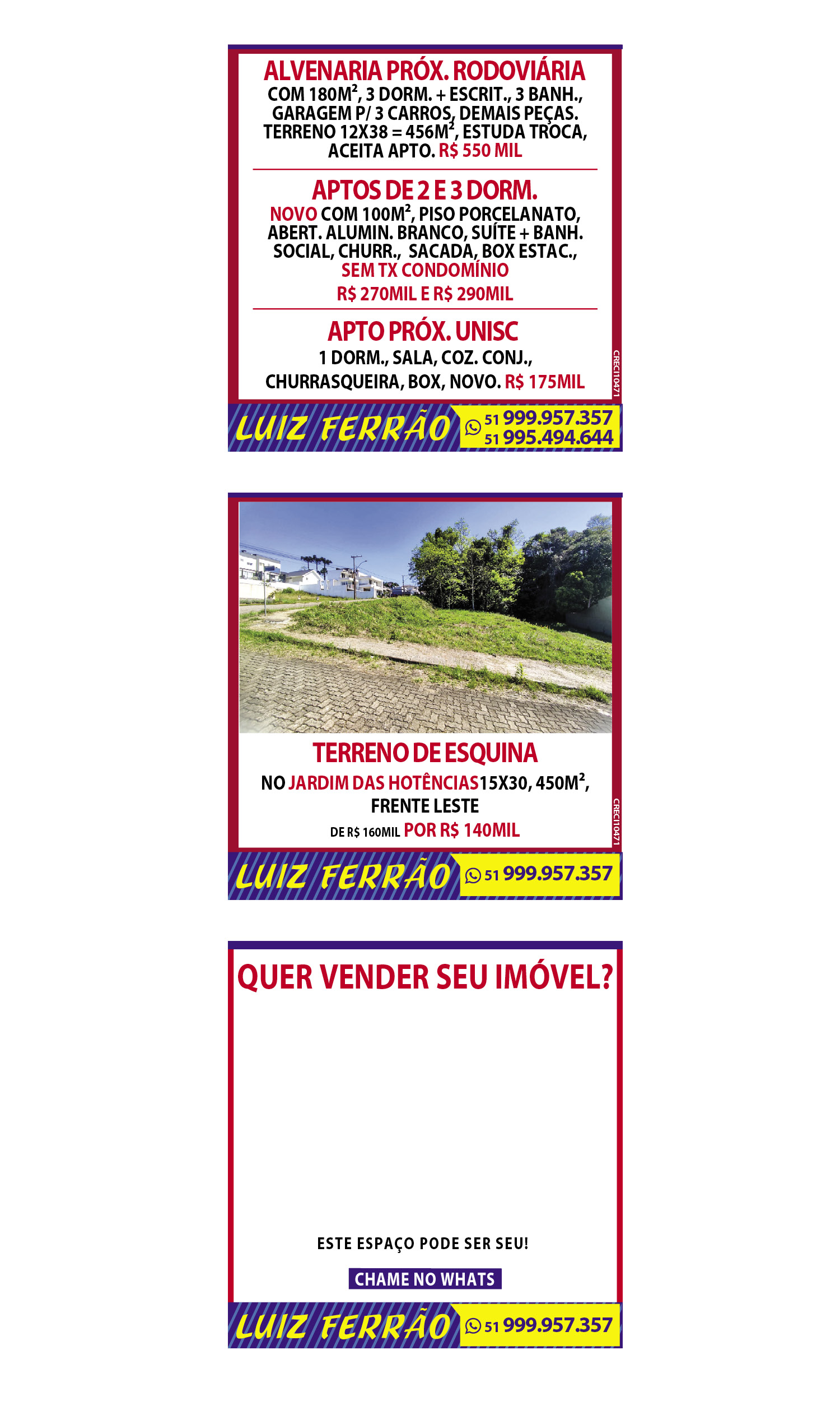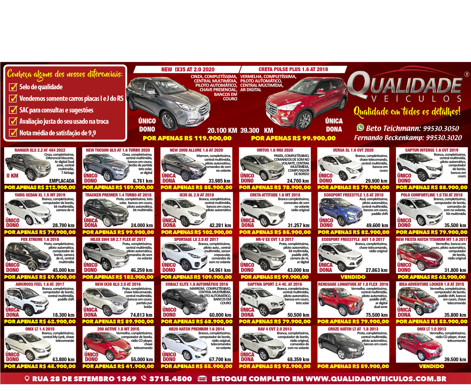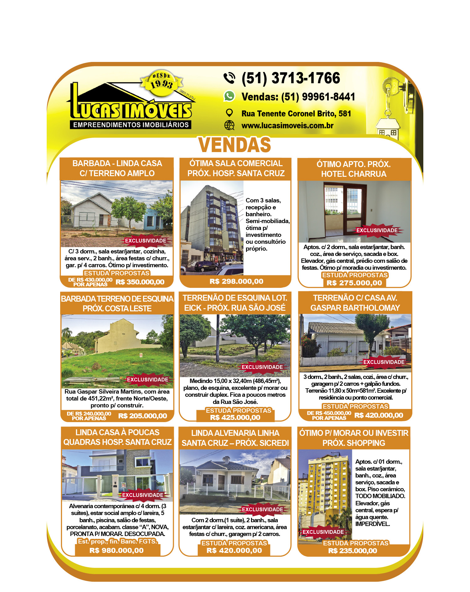 O suplemento de Classificados, que circula nas edições de terças, quintas e sábados, é um dos mais tradicionais da Gazeta do Sul, como vitrine e canal de negócios, de oferta, compra e venda em toda a região central do Rio Grande do Sul. E, para enriquecer pesquisas de produtos e serviços e possibilitar resultado ainda melhor a usuários e parceiros, nos anúncios de clientes cadastrados, o leitor tem acesso direto com link ao site do anunciante, onde poderá verificar mais detalhes sobre os itens. Confira as ofertas: