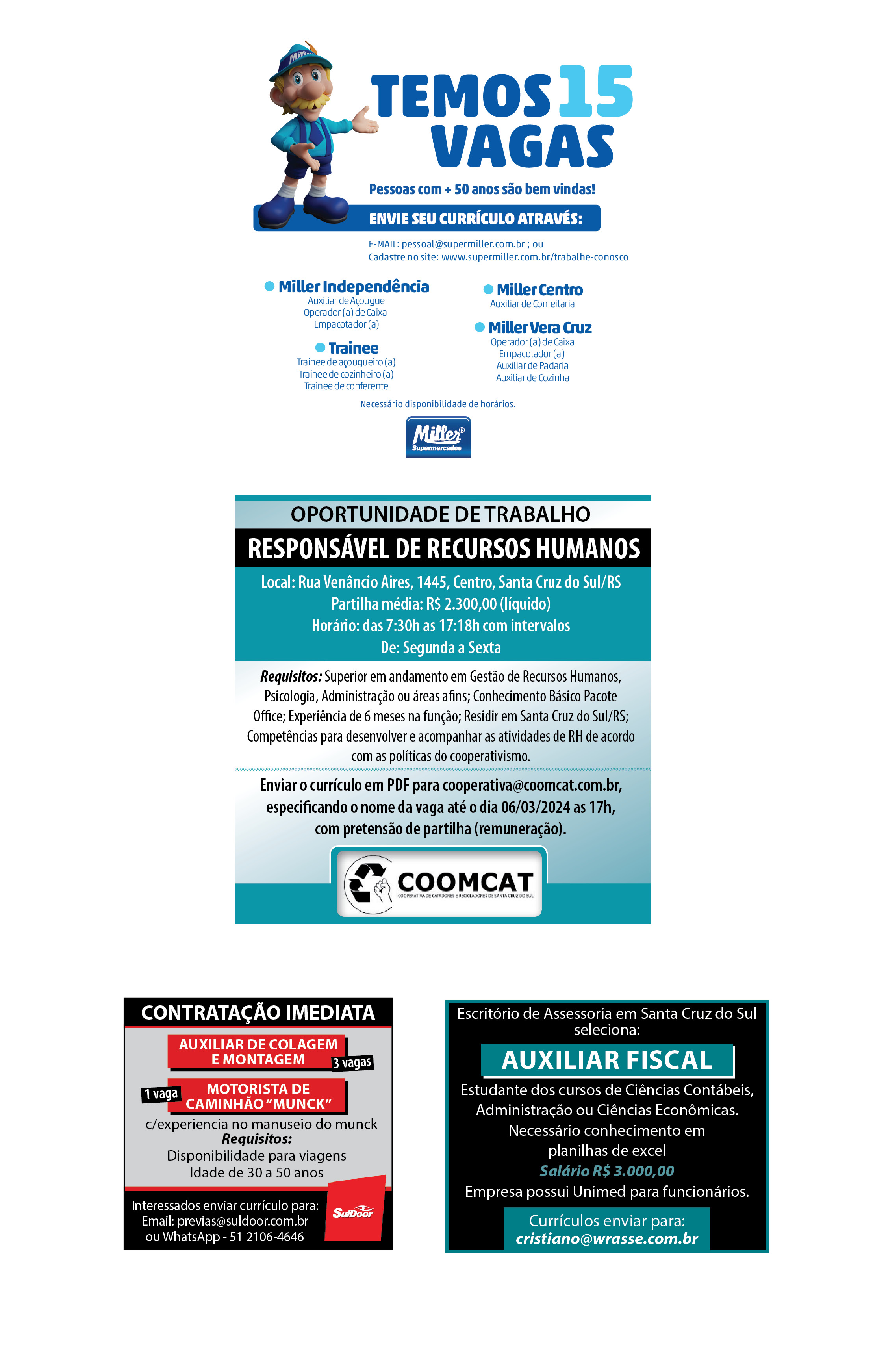 Confira oportunidades de negócios em Santa Cruz e região para os dias 2 e 3 de março de 2024