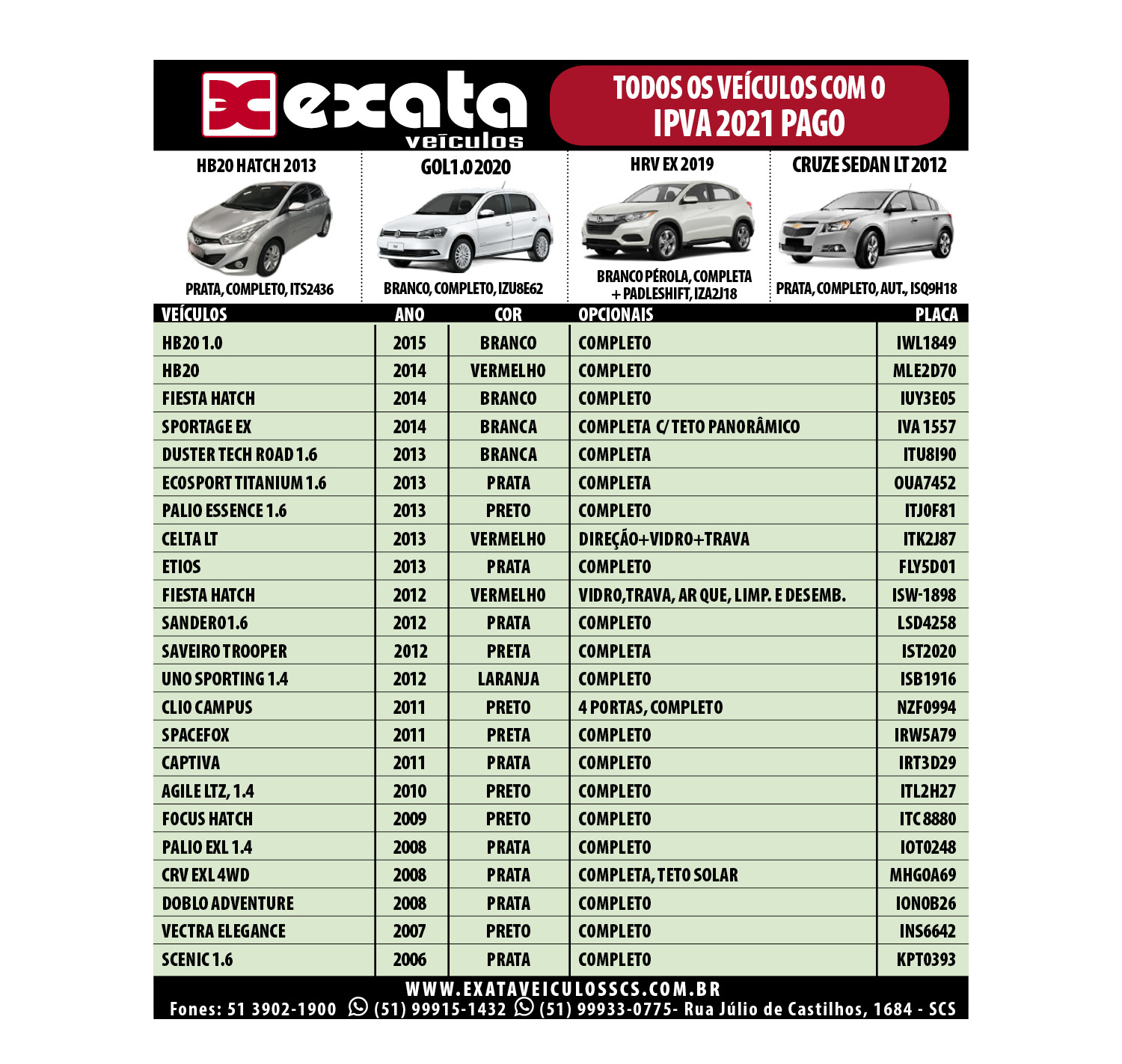 Para mais ofertas acesse: www.exataveiculosscs.com.br