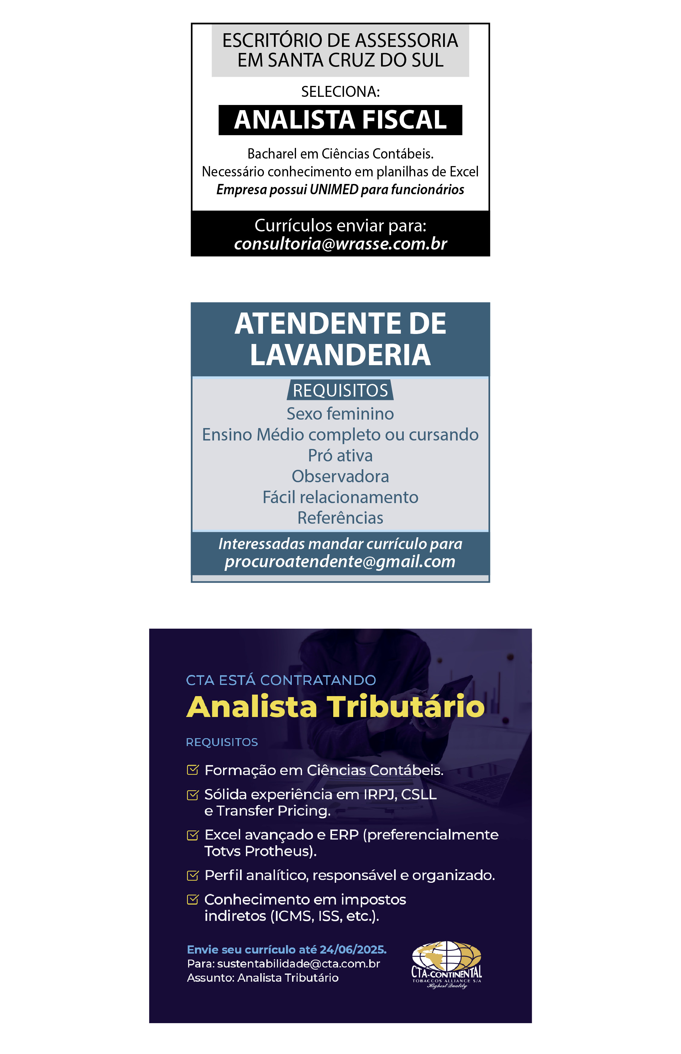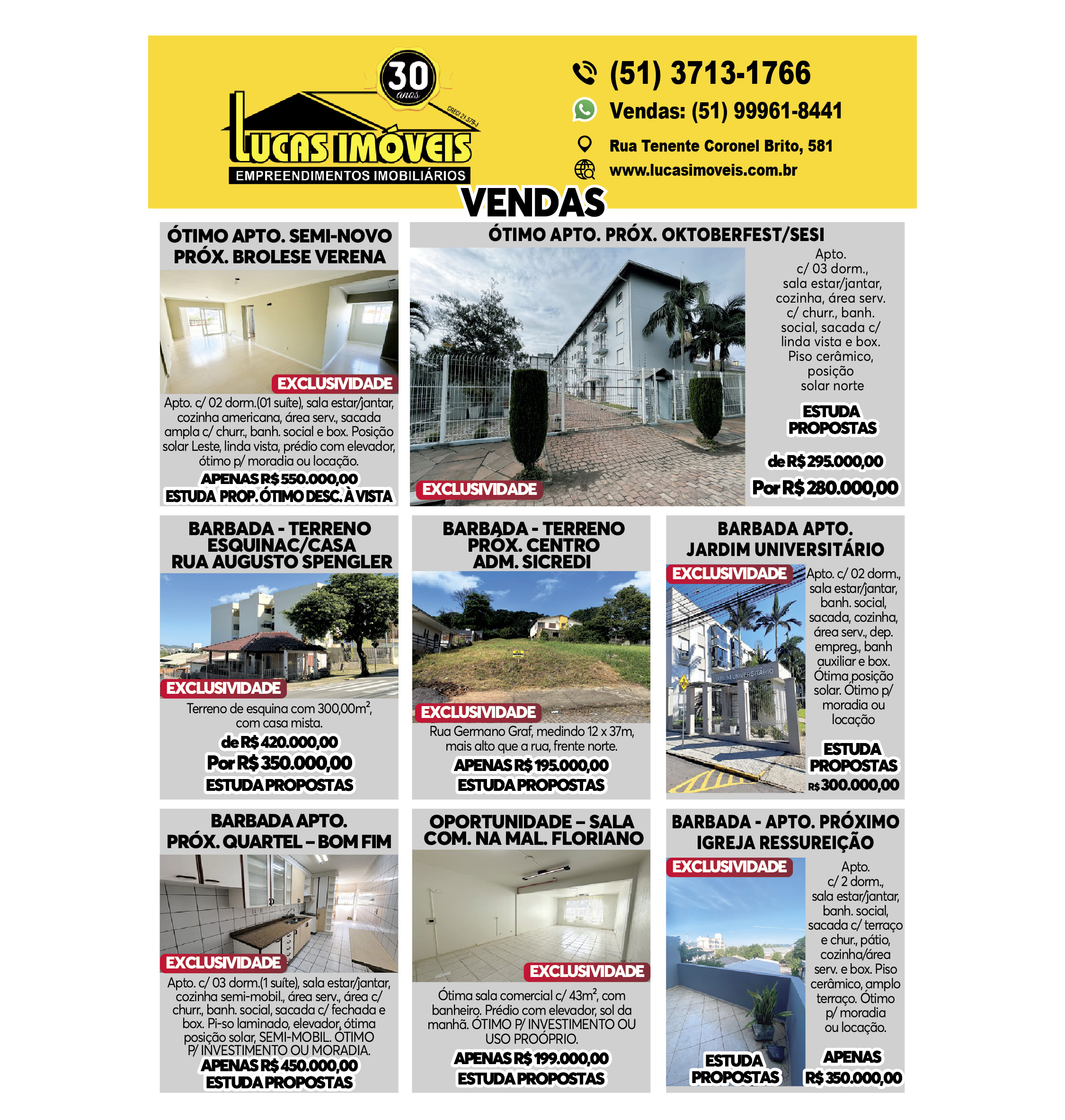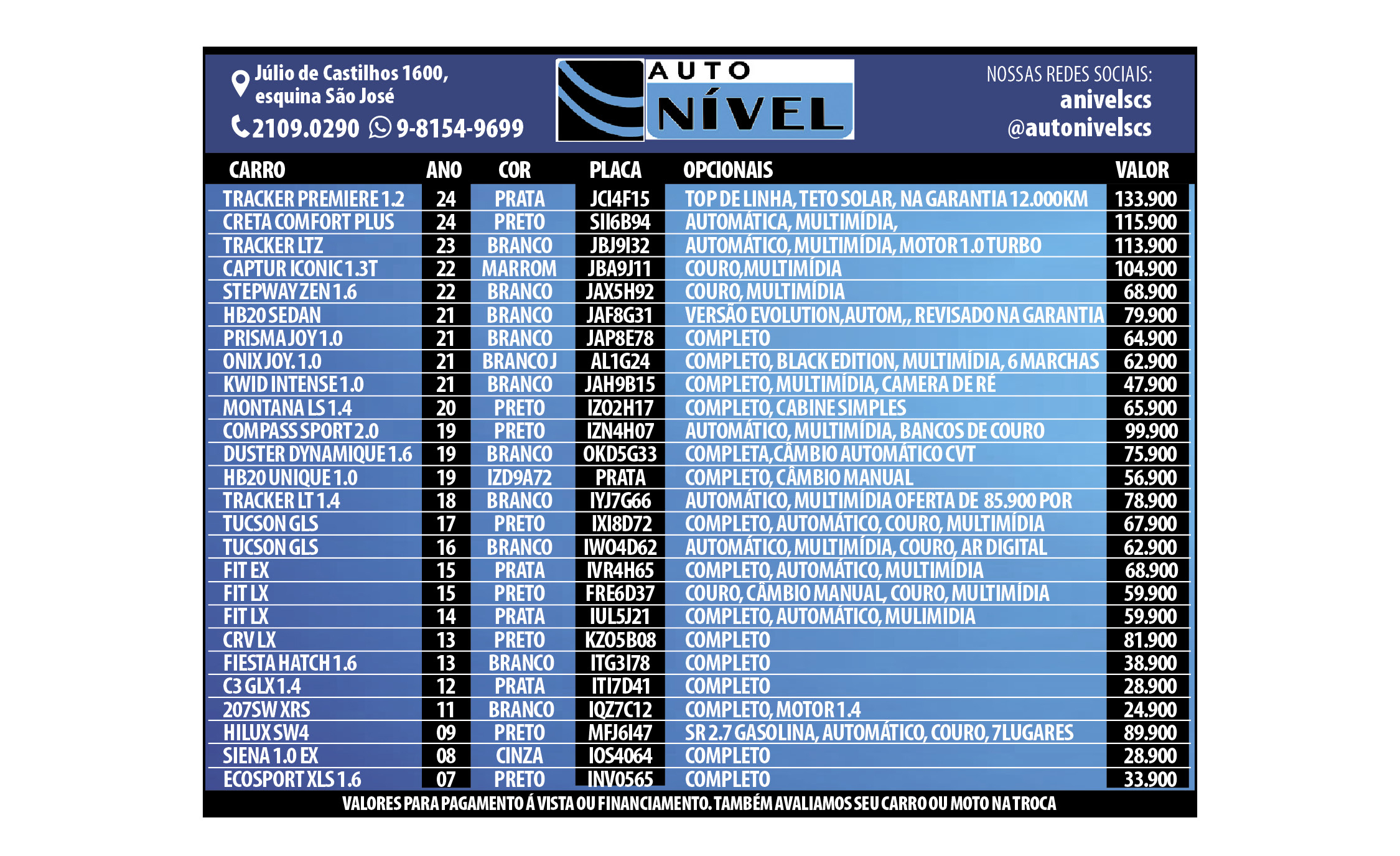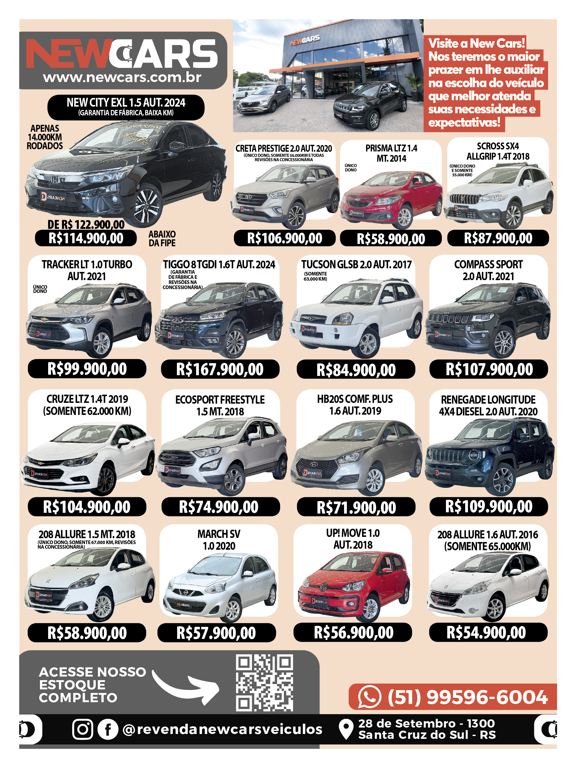 O suplemento de Classificados, que circula nas edições de terças, quintas e sábados, é um dos mais tradicionais da Gazeta do Sul, como vitrine e canal de negócios, de oferta, compra e venda em toda a região central do Rio Grande do Sul. E, para enriquecer pesquisas de produtos e serviços e possibilitar resultado ainda melhor a usuários e parceiros, nos anúncios de clientes cadastrados, o leitor tem acesso direto com link ao site do anunciante, onde poderá verificar mais detalhes sobre os itens. Confira as ofertas: