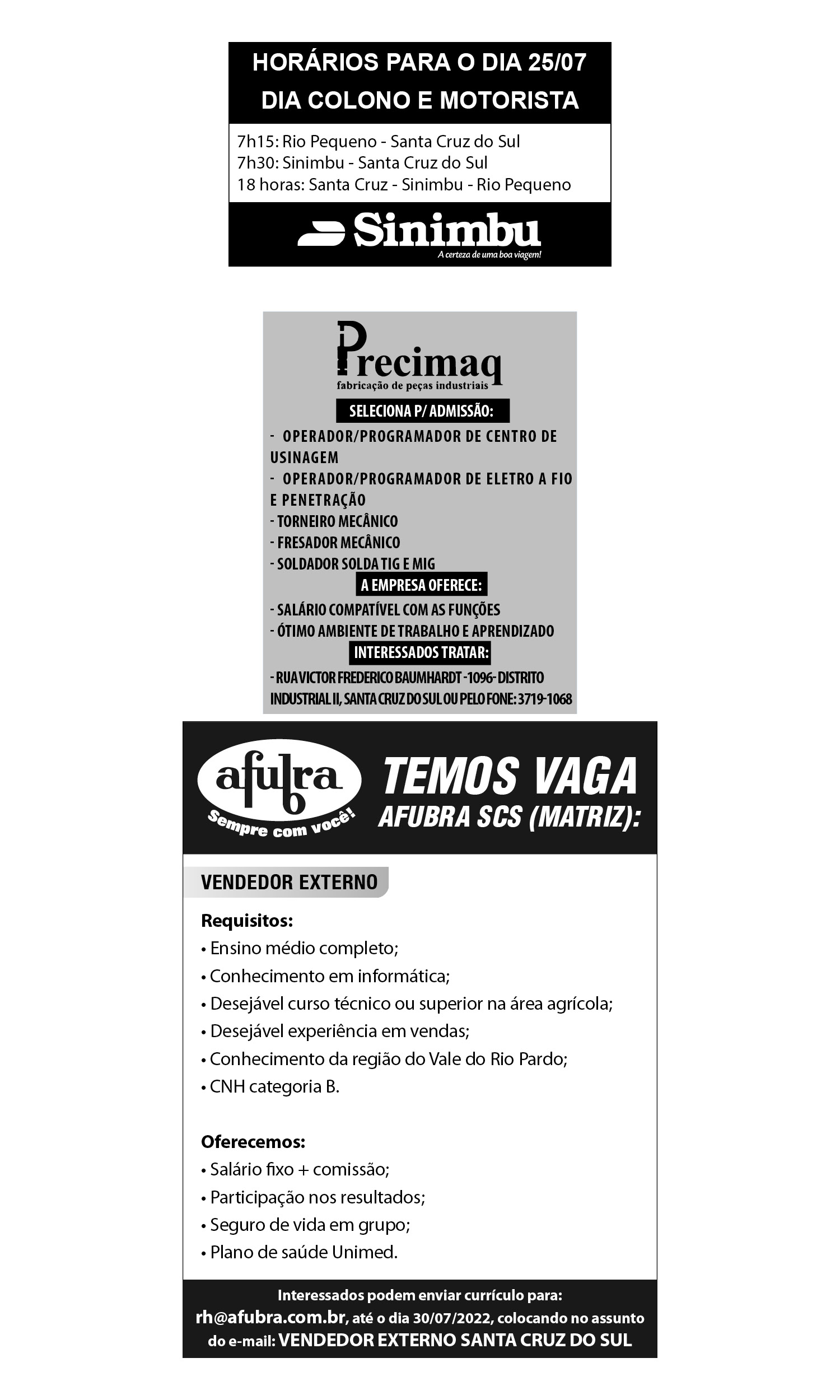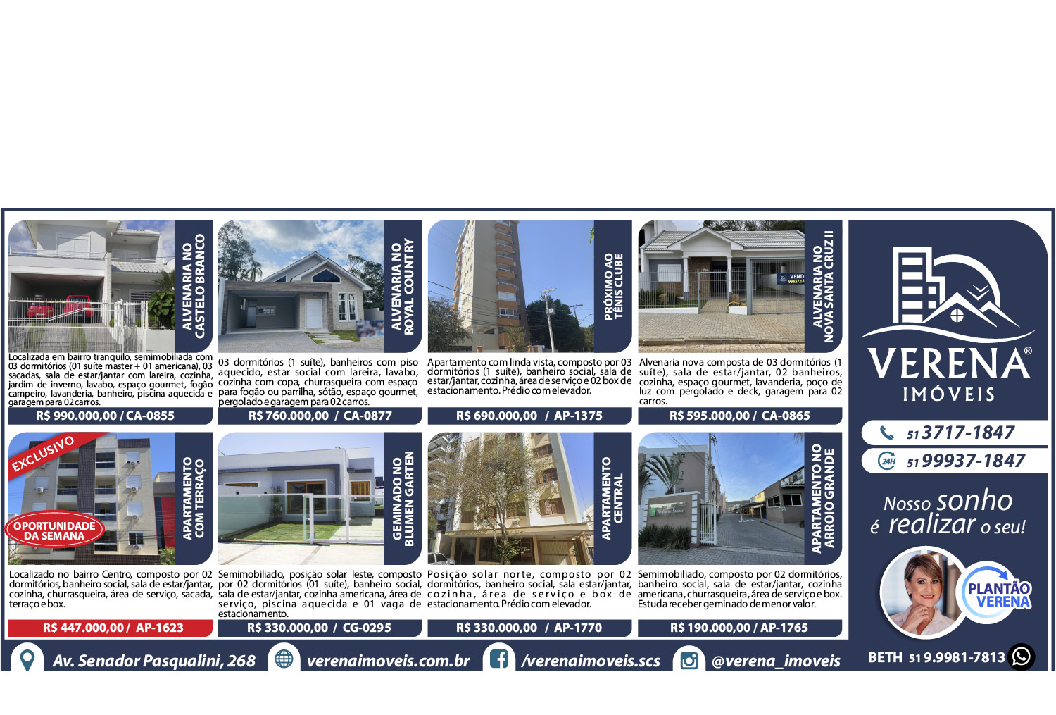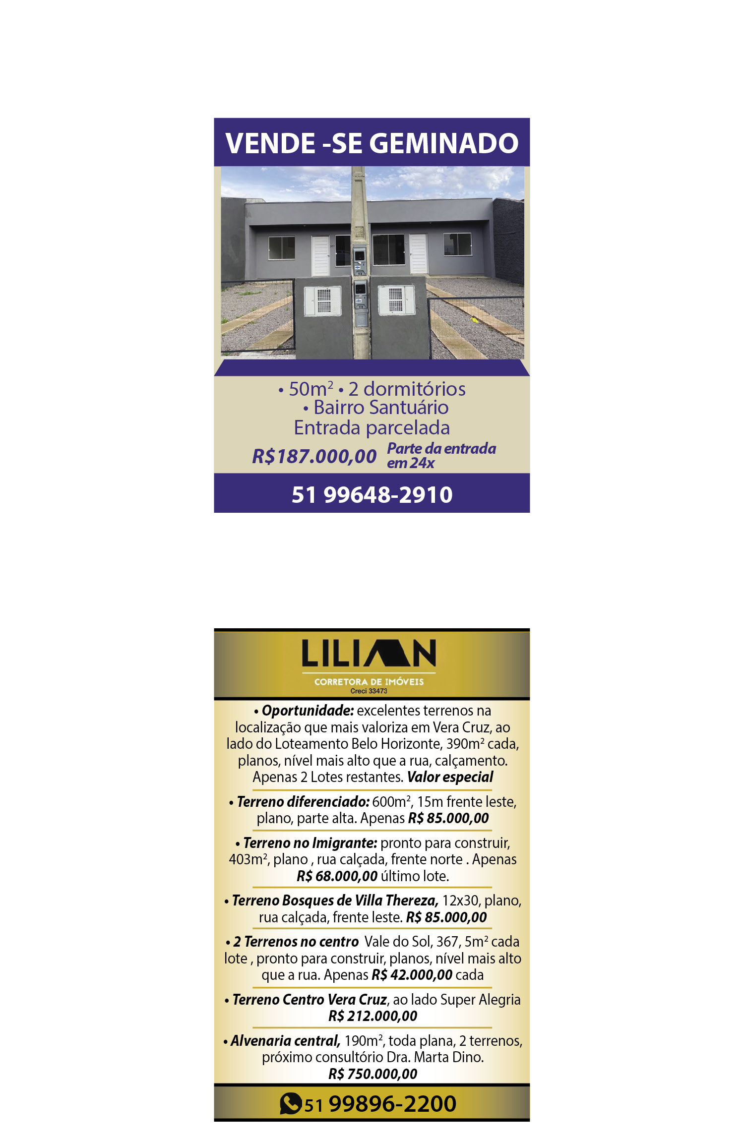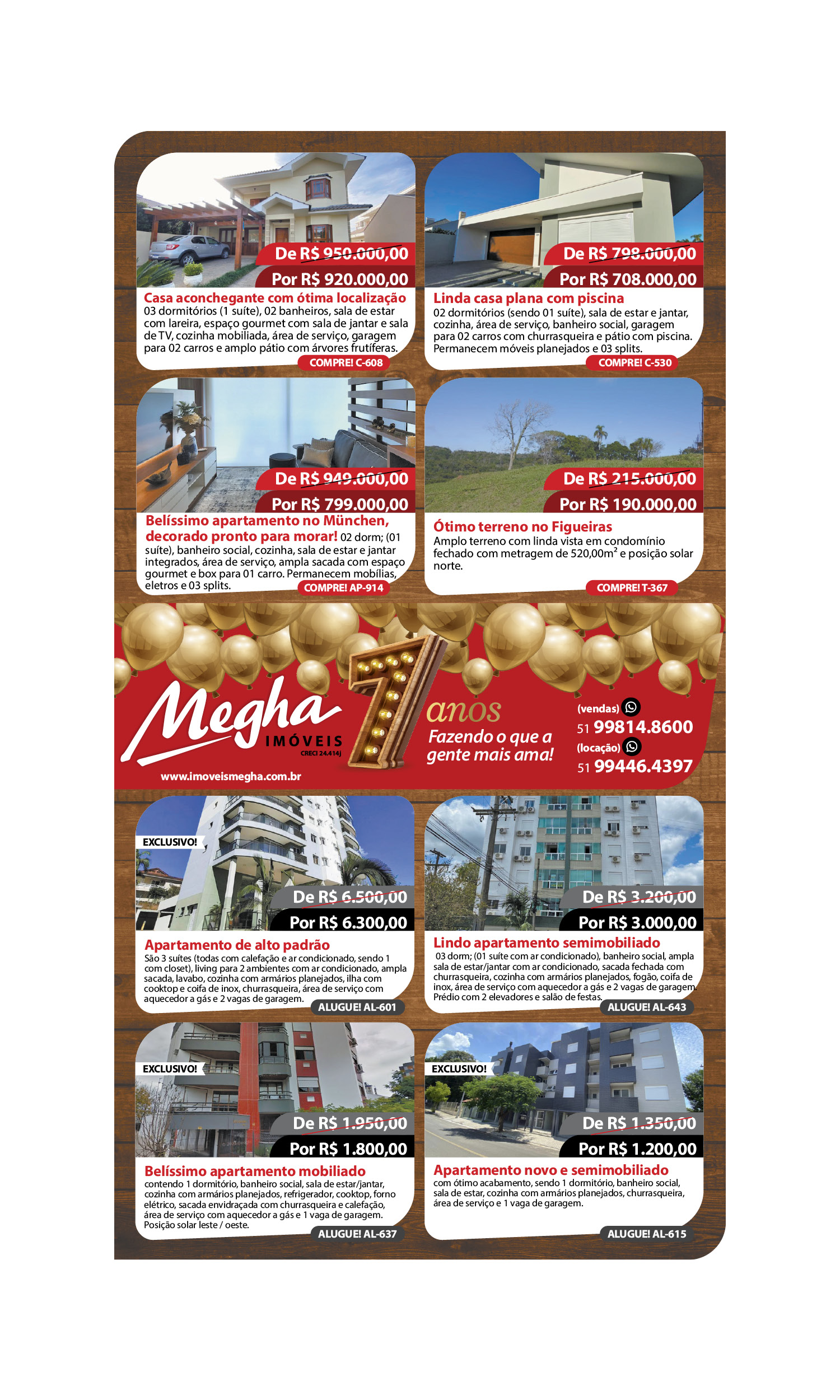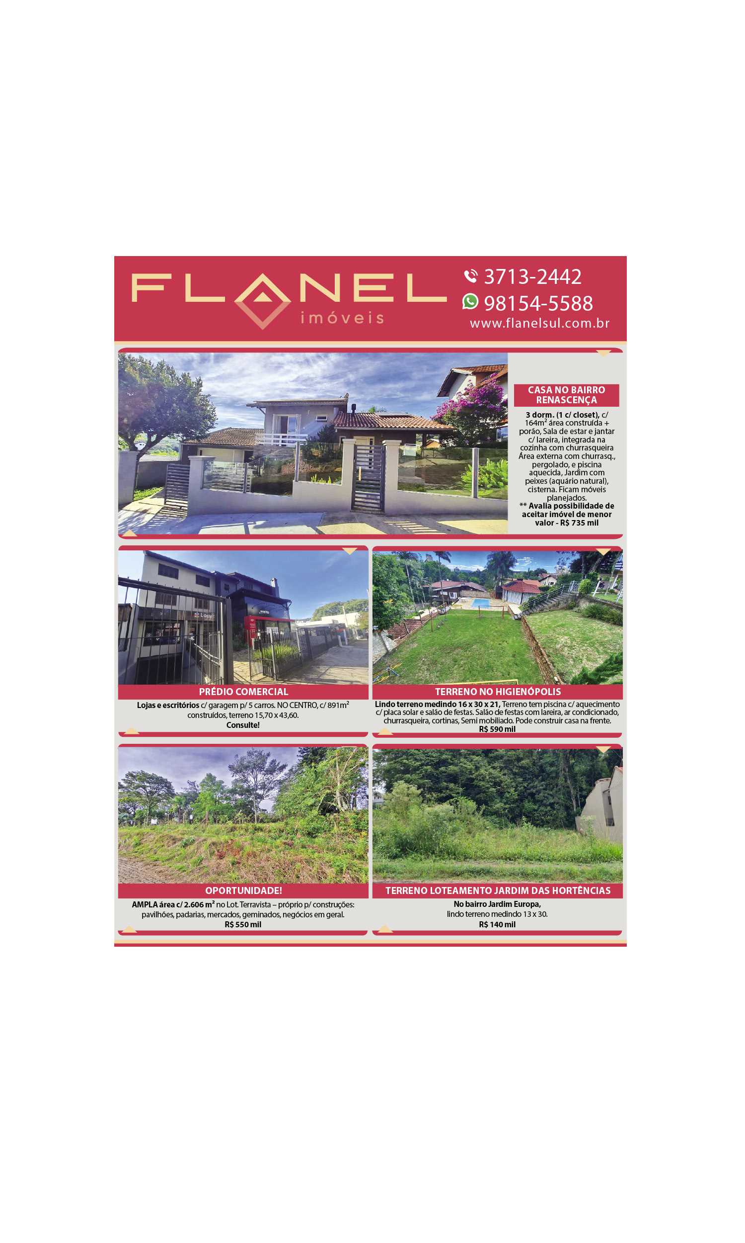 O suplemento de Classificados, que circula nas edições de terças, quintas e sábados, é um dos mais tradicionais da Gazeta do Sul, como vitrine e canal de negócios, de oferta, compra e venda em toda a região central do Rio Grande do Sul. E, para enriquecer pesquisas de produtos e serviços e possibilitar resultado ainda melhor a usuários e parceiros, nos anúncios de clientes cadastrados, o leitor tem acesso direto com link ao site do anunciante, onde poderá verificar mais detalhes sobre os itens. Confira as ofertas: