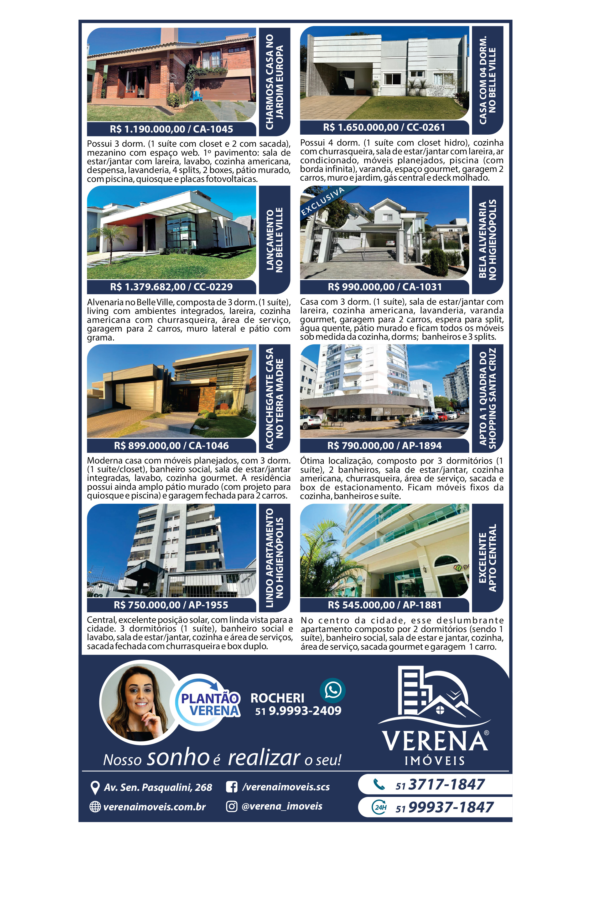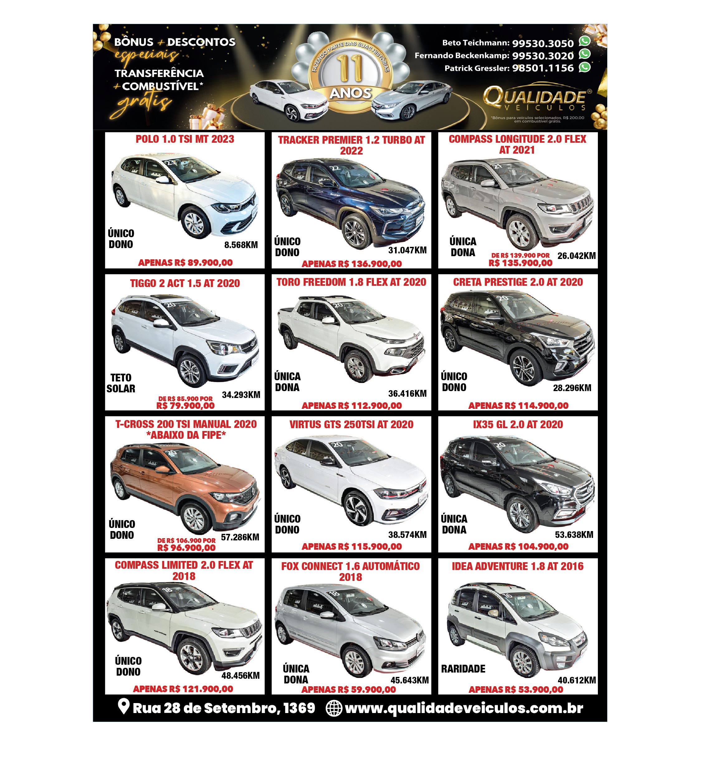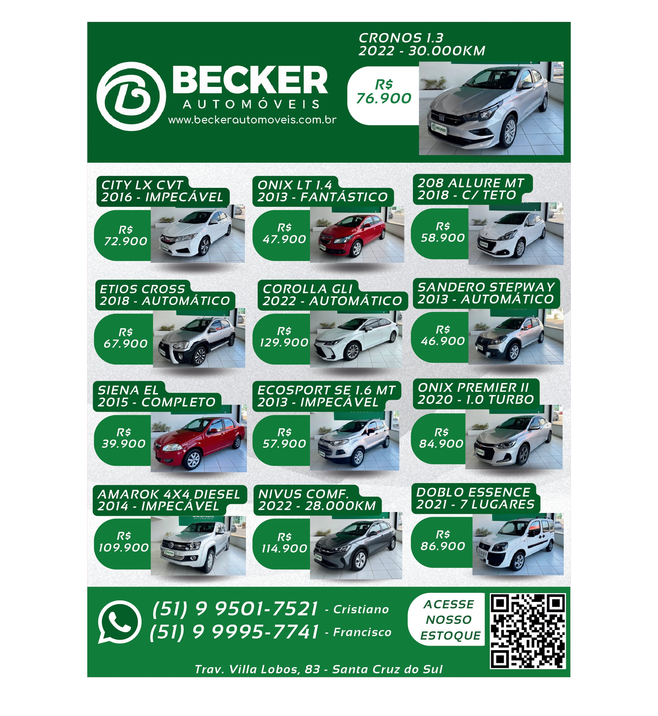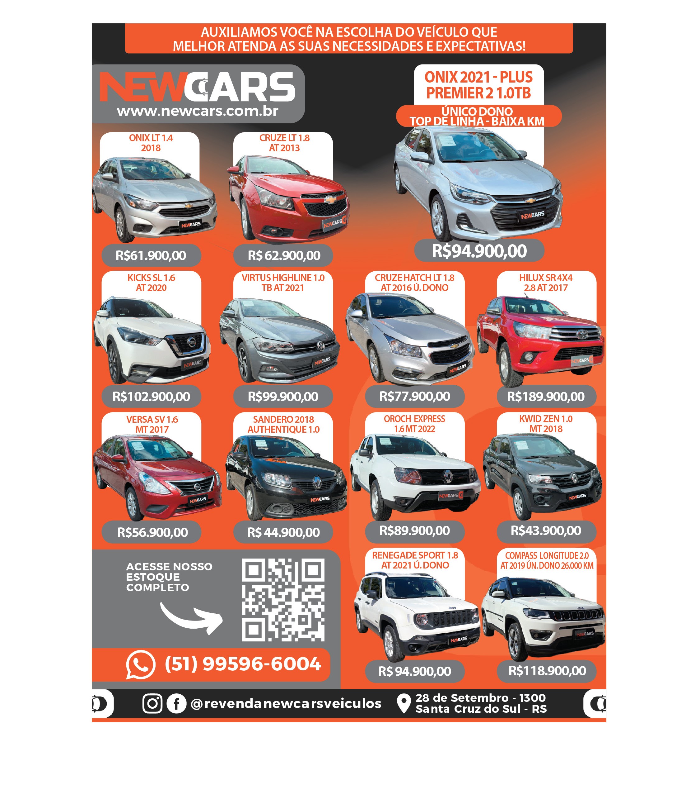 O suplemento de Classificados, que circula nas edições de terças, quintas e sábados, é um dos mais tradicionais da Gazeta do Sul, como vitrine e canal de negócios, de oferta, compra e venda em toda a região central do Rio Grande do Sul. E, para enriquecer pesquisas de produtos e serviços e possibilitar resultado ainda melhor a usuários e parceiros, nos anúncios de clientes cadastrados, o leitor tem acesso direto com link ao site do anunciante, onde poderá verificar mais detalhes sobre os itens. Confira as ofertas: