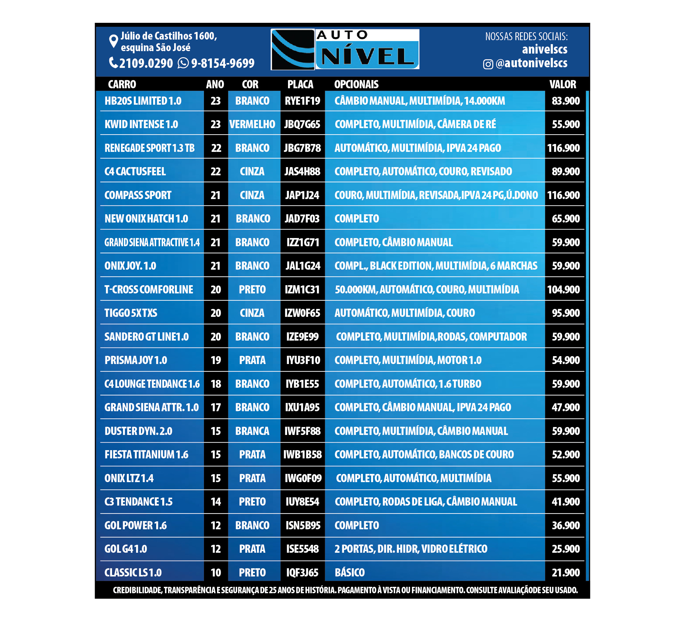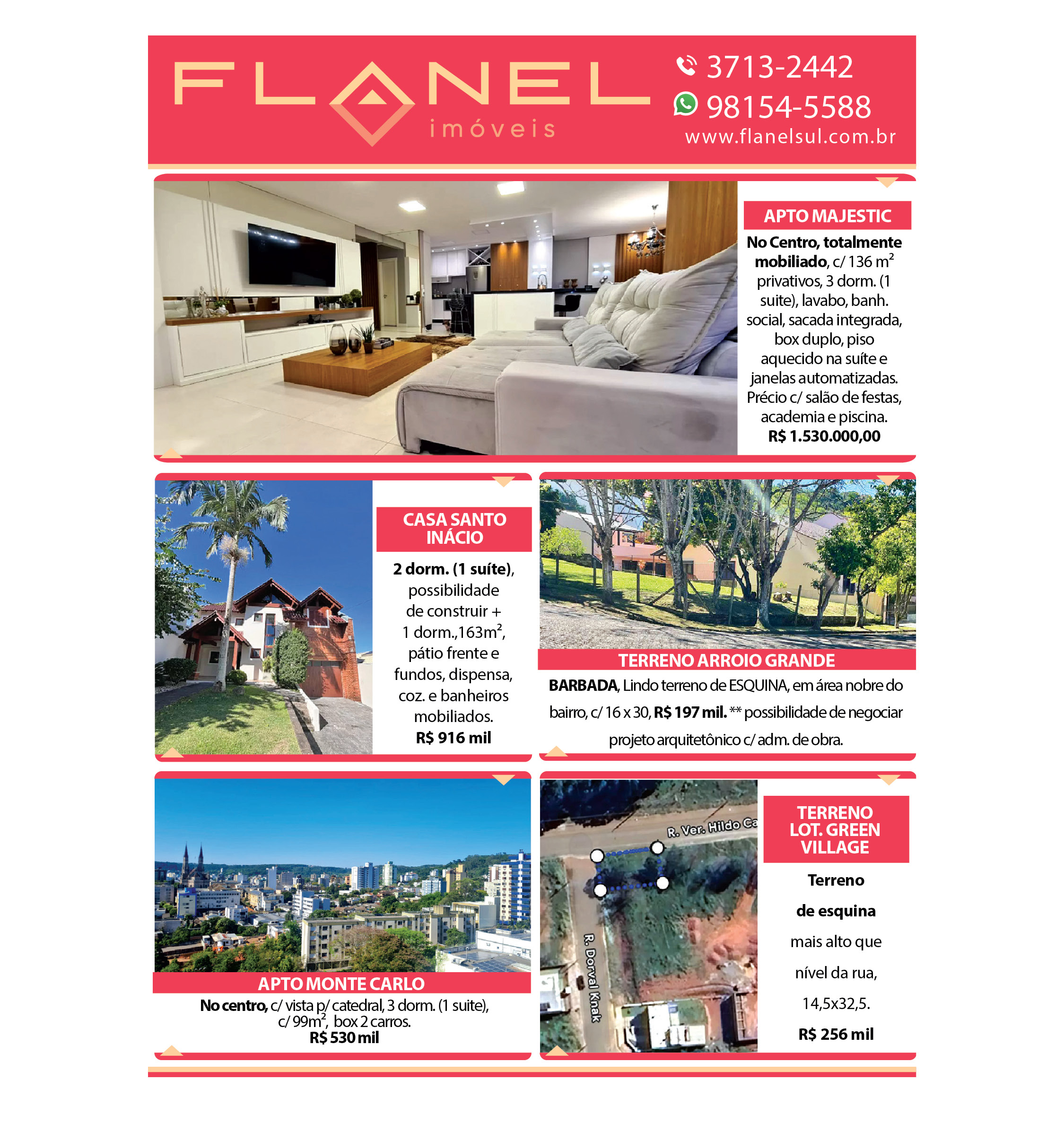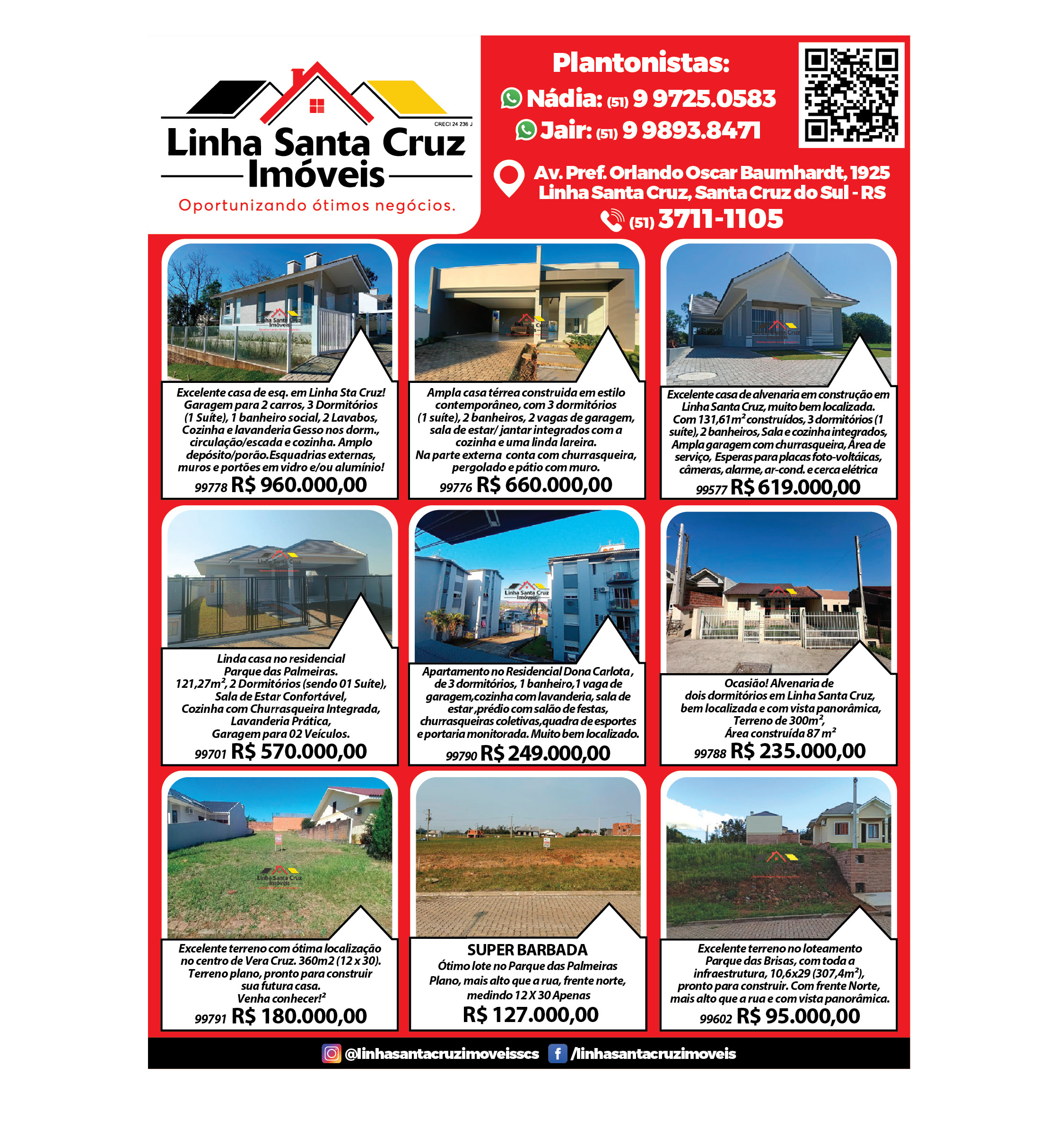 O suplemento de Classificados, que circula nas edições de terças, quintas e sábados, é um dos mais tradicionais da Gazeta do Sul, como vitrine e canal de negócios, de oferta, compra e venda em toda a região central do Rio Grande do Sul. E, para enriquecer pesquisas de produtos e serviços e possibilitar resultado ainda melhor a usuários e parceiros, nos anúncios de clientes cadastrados, o leitor tem acesso direto com link ao site do anunciante, onde poderá verificar mais detalhes sobre os itens. Confira as ofertas: