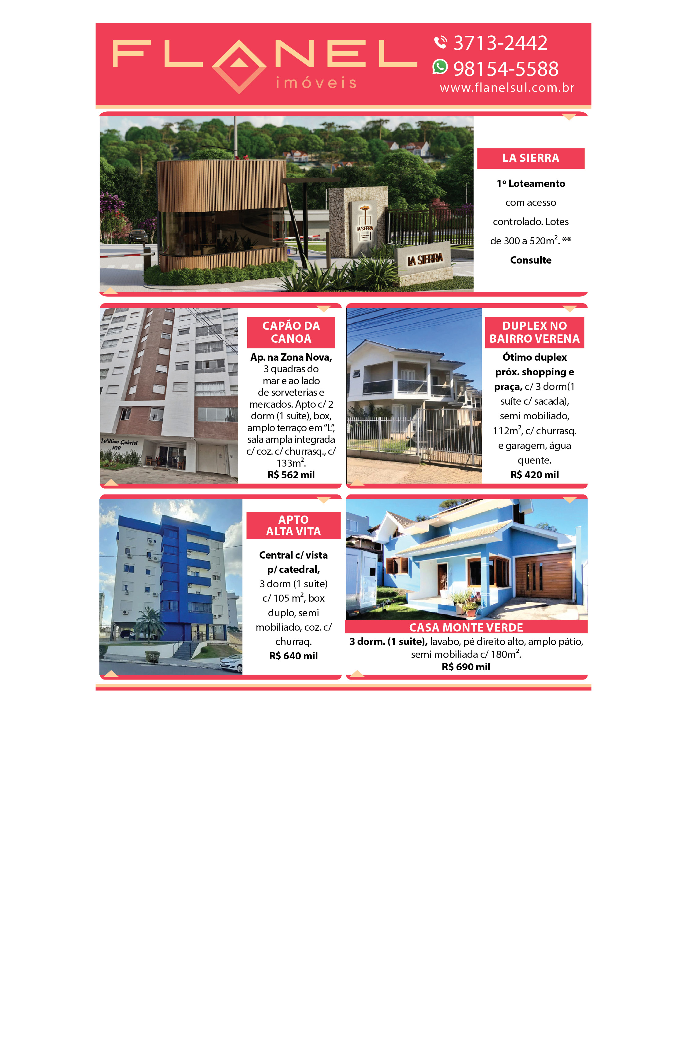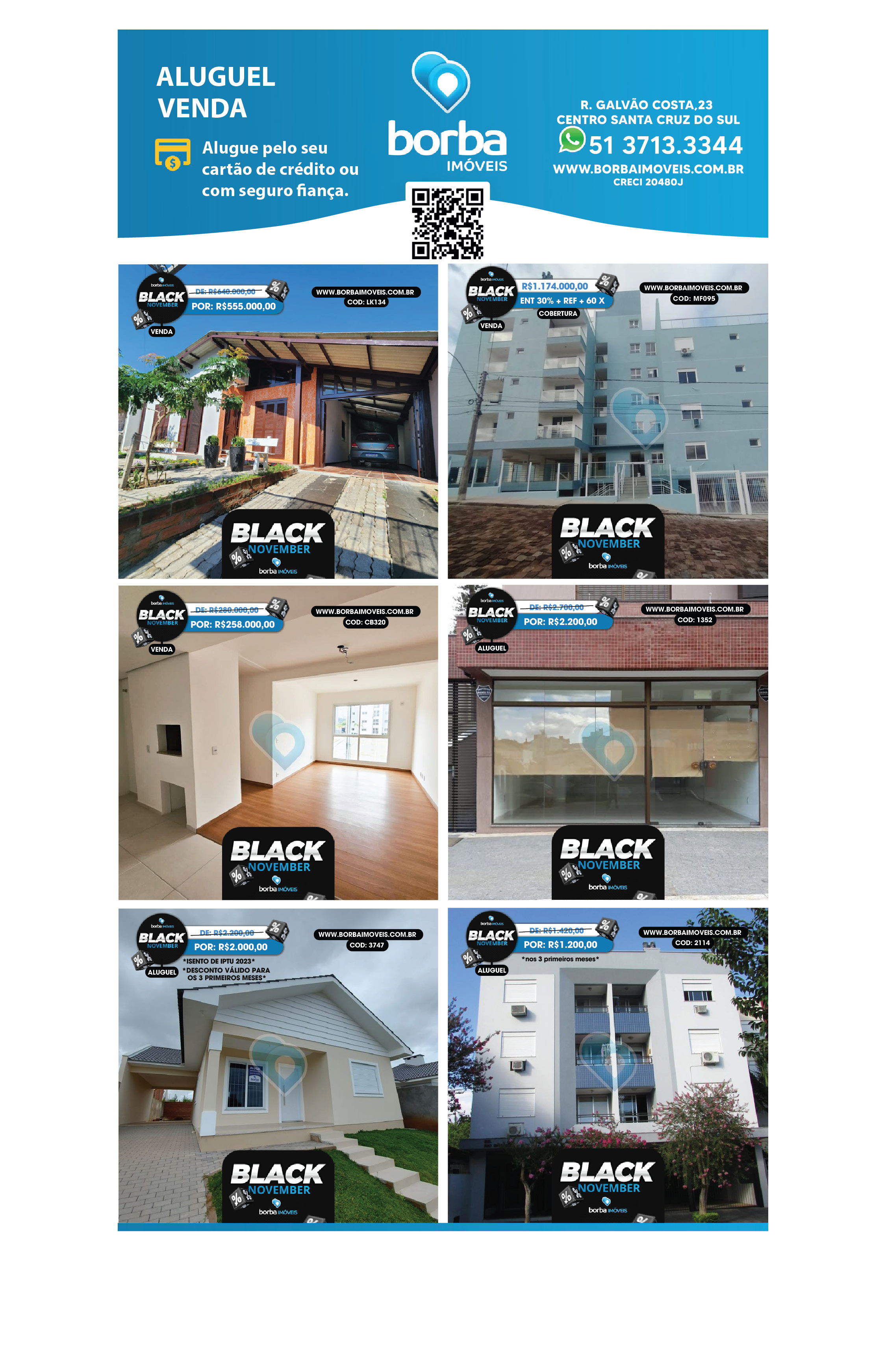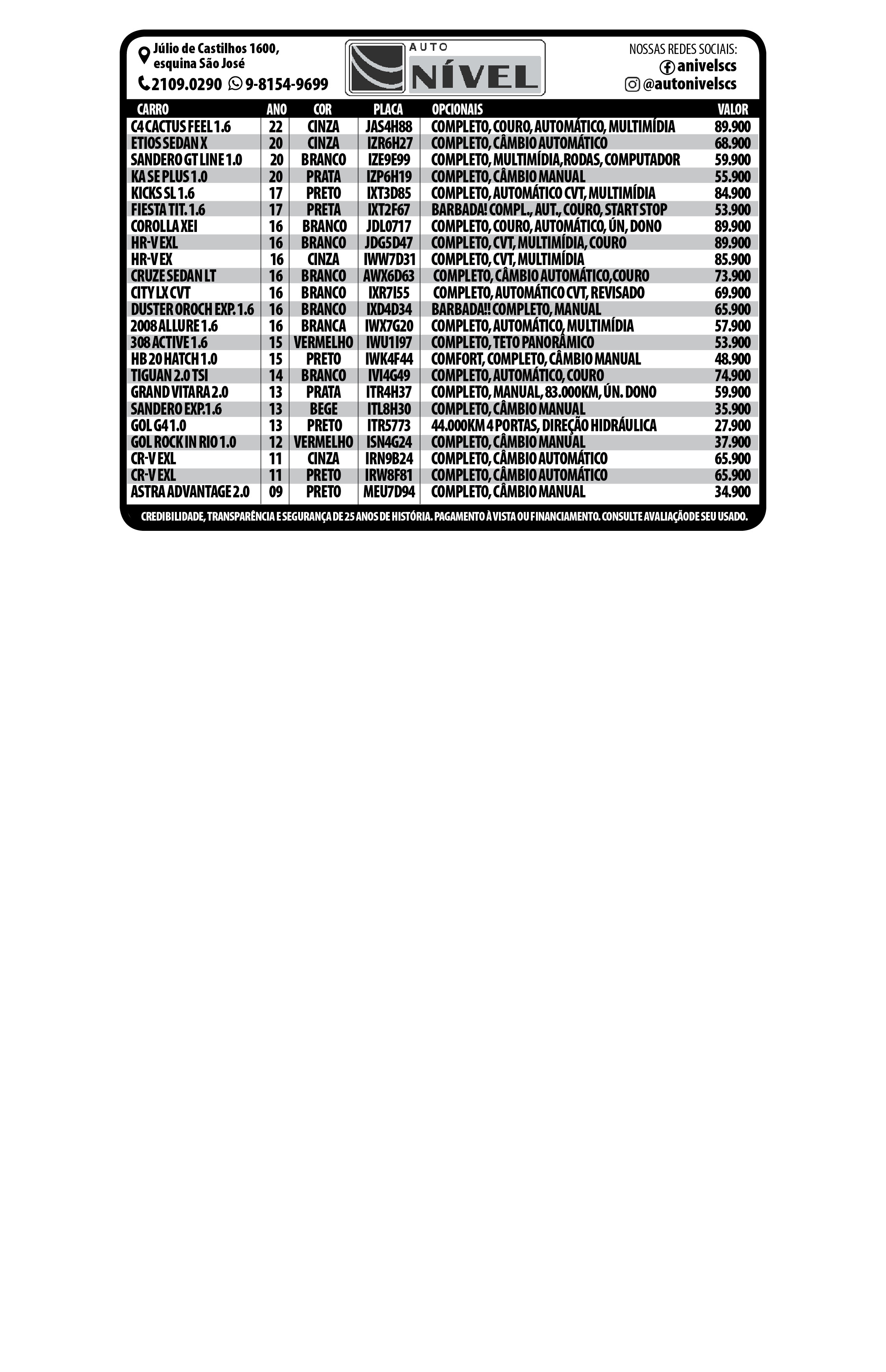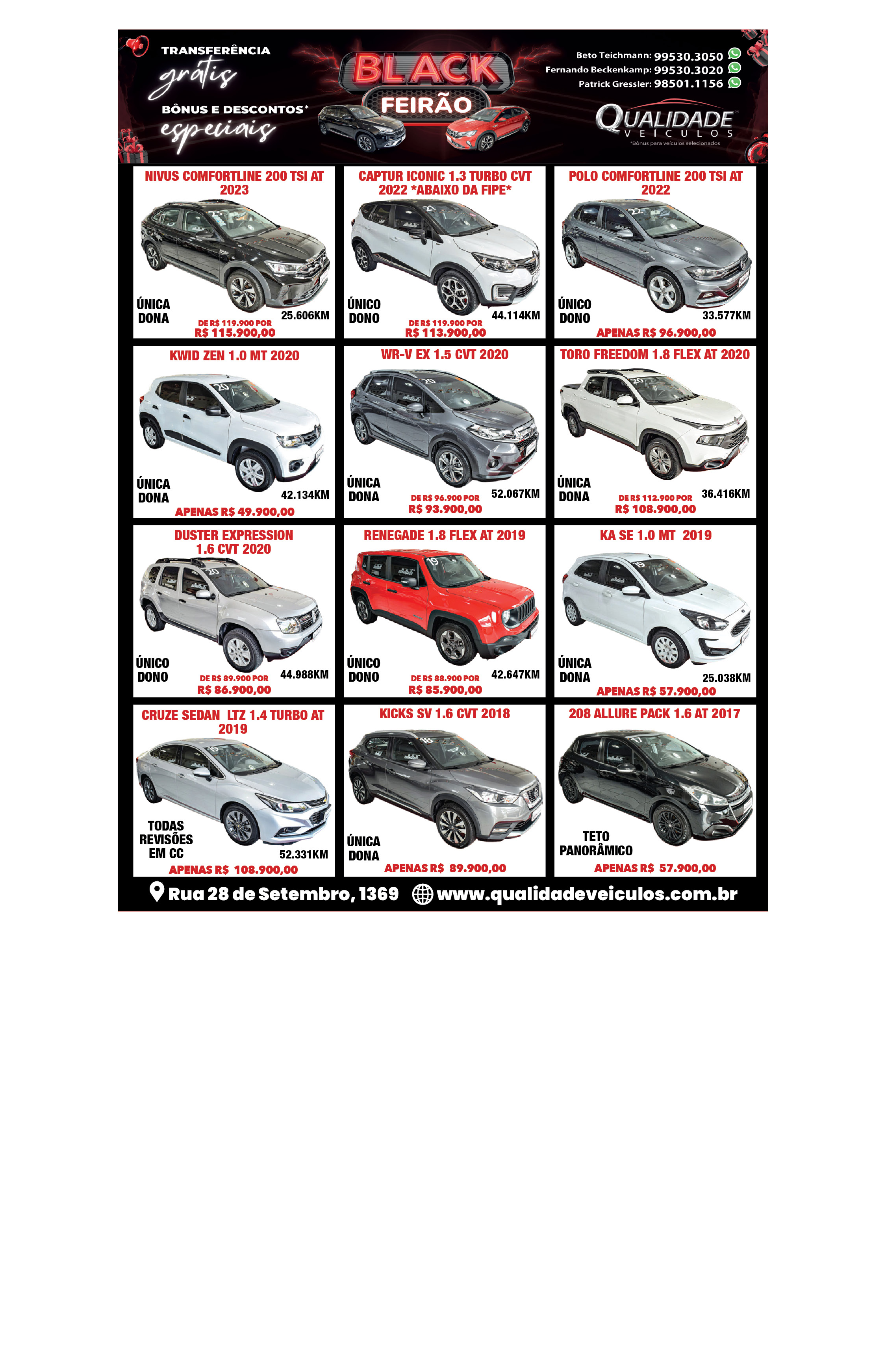 O suplemento de Classificados, que circula nas edições de terças, quintas e sábados, é um dos mais tradicionais da Gazeta do Sul, como vitrine e canal de negócios, de oferta, compra e venda em toda a região central do Rio Grande do Sul. E, para enriquecer pesquisas de produtos e serviços e possibilitar resultado ainda melhor a usuários e parceiros, nos anúncios de clientes cadastrados, o leitor tem acesso direto com link ao site do anunciante, onde poderá verificar mais detalhes sobre os itens. Confira as ofertas: