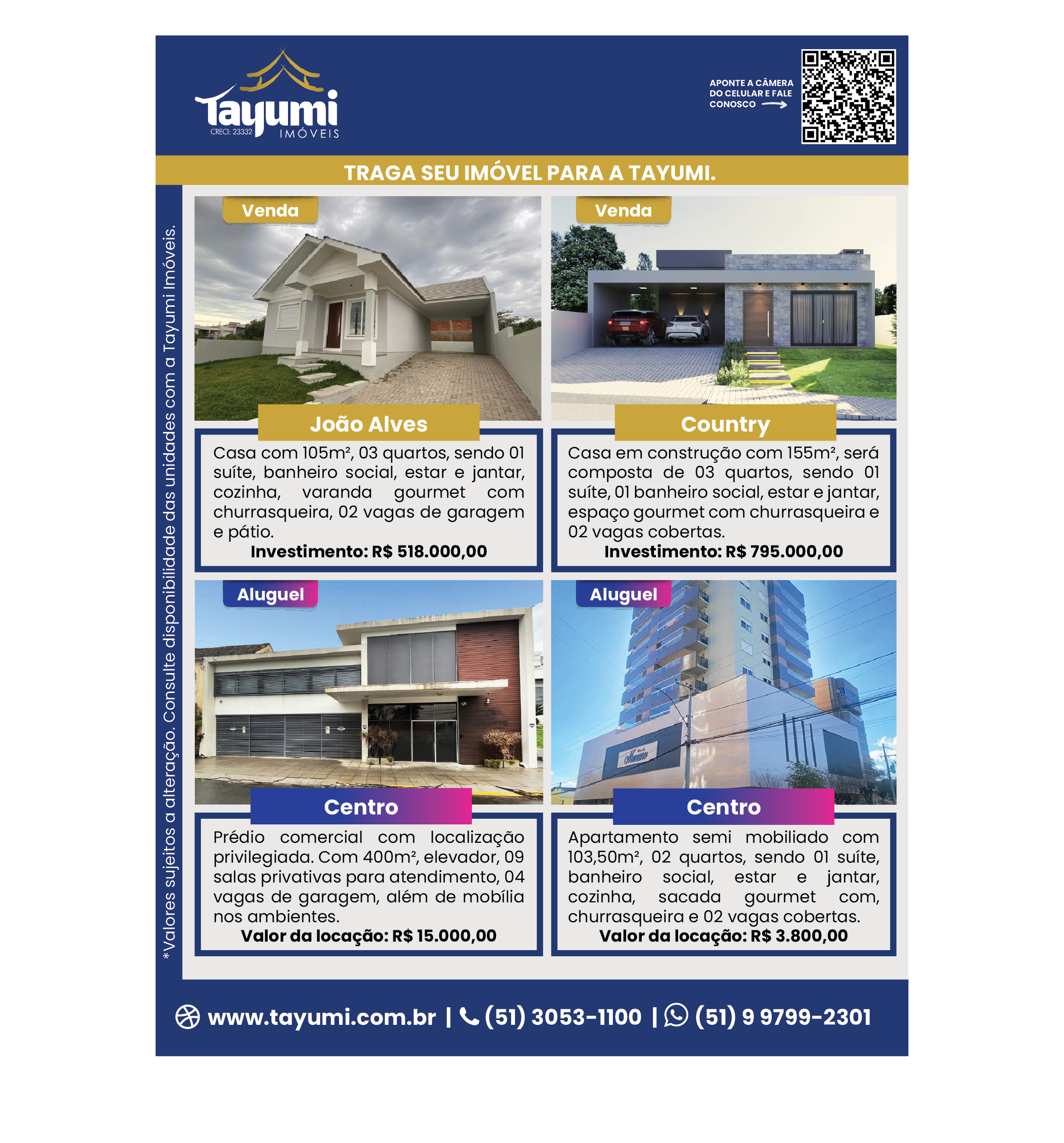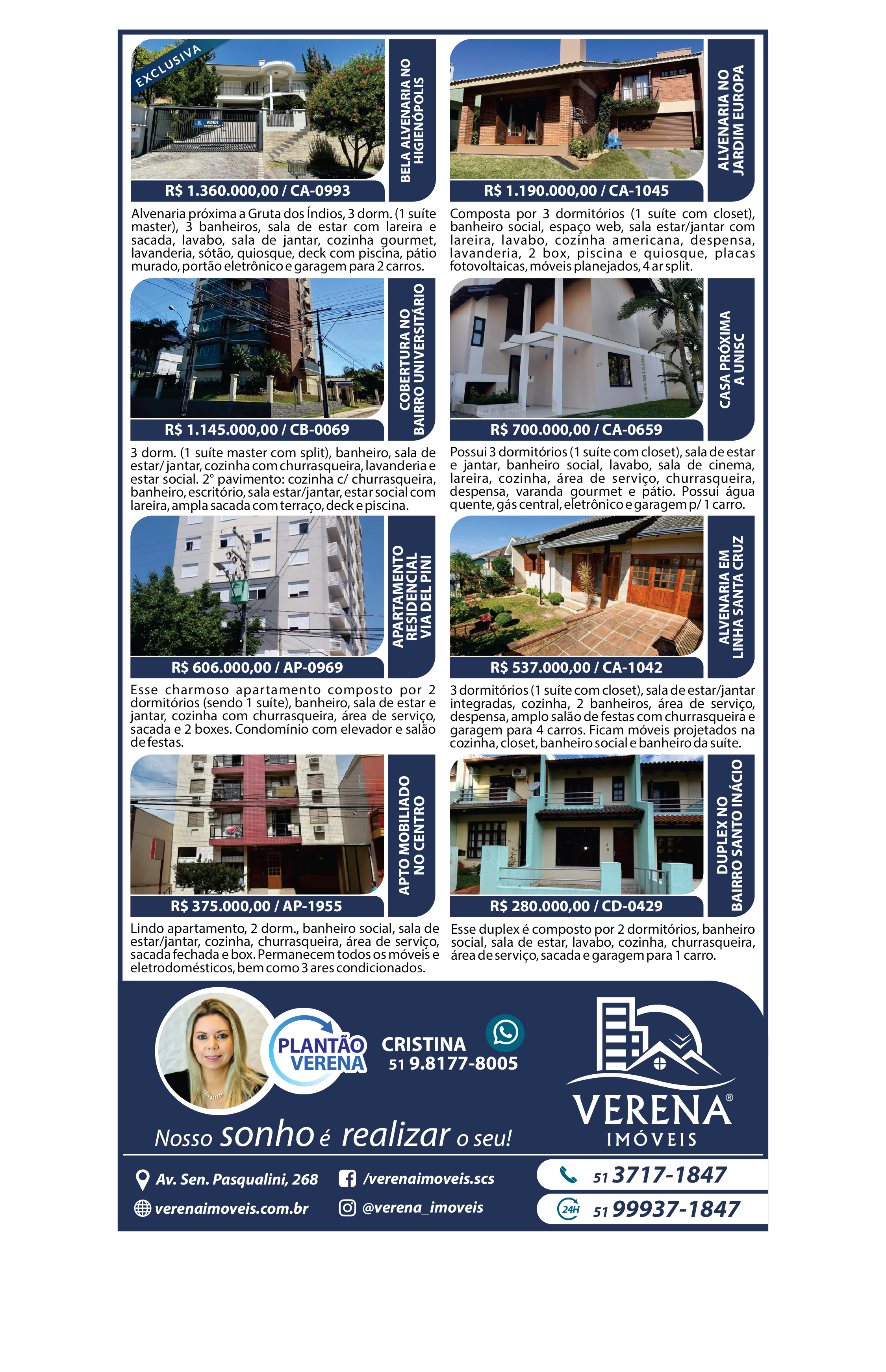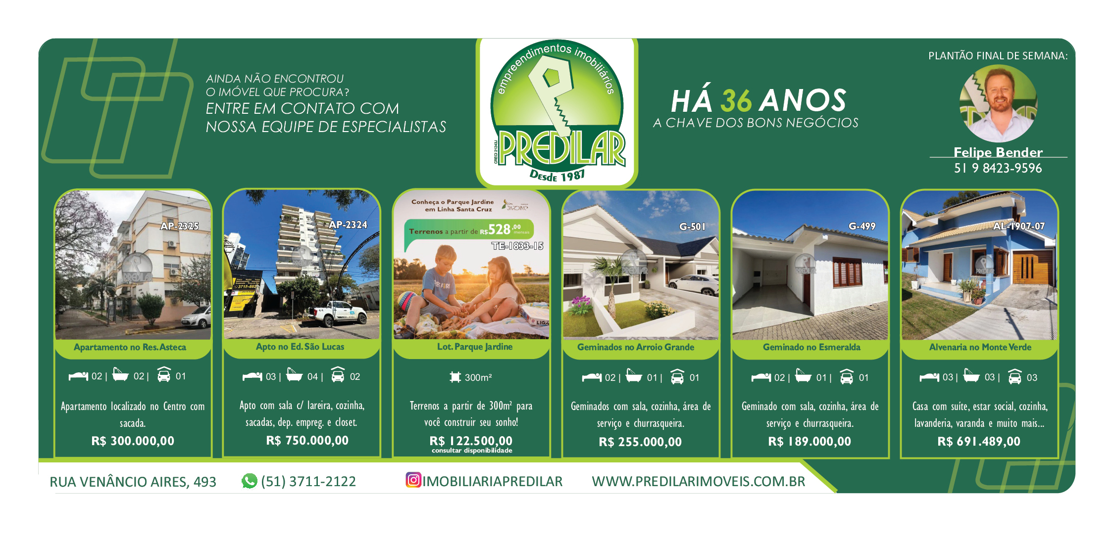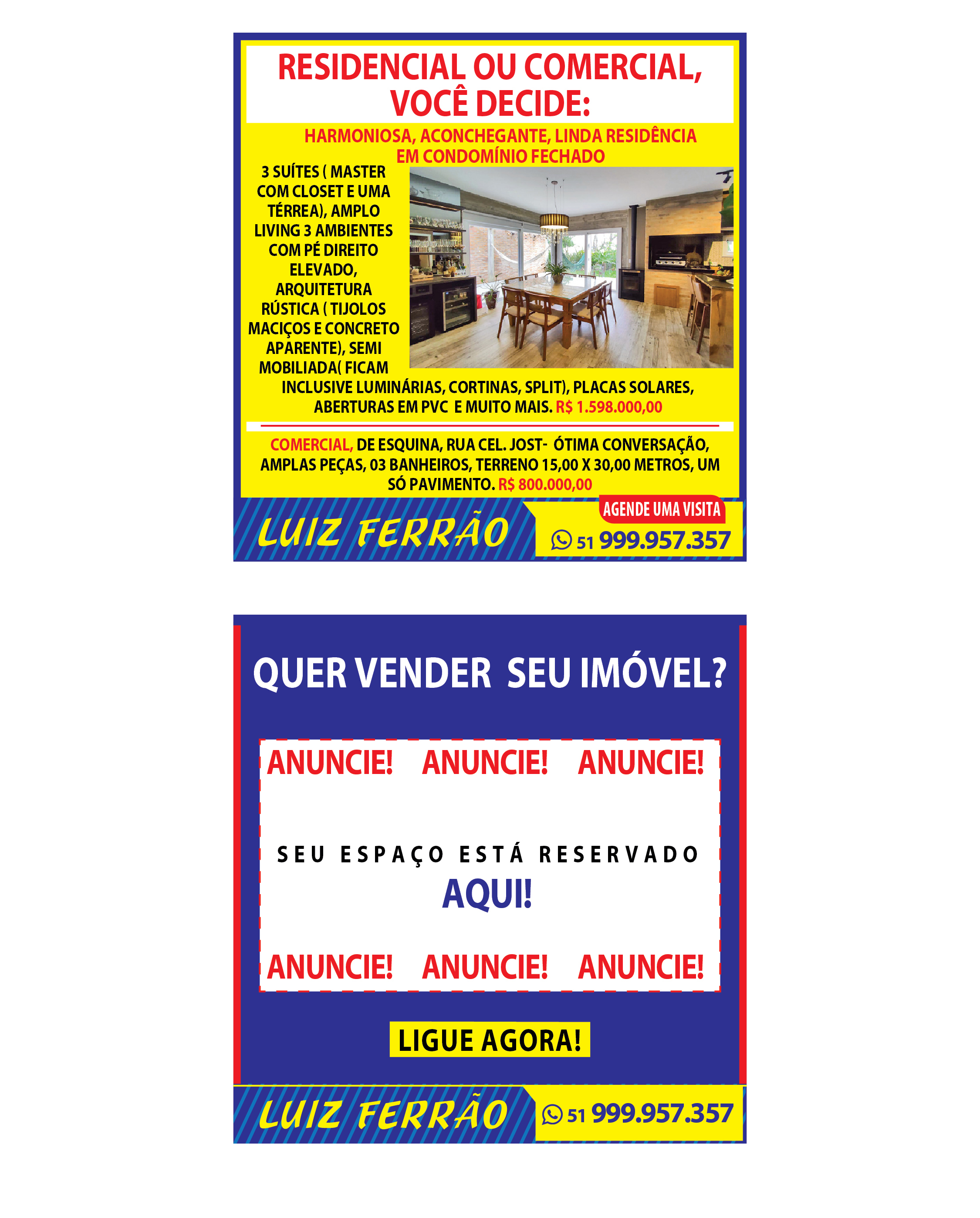 O suplemento de Classificados, que circula nas edições de terças, quintas e sábados, é um dos mais tradicionais da Gazeta do Sul, como vitrine e canal de negócios, de oferta, compra e venda em toda a região central do Rio Grande do Sul. E, para enriquecer pesquisas de produtos e serviços e possibilitar resultado ainda melhor a usuários e parceiros, nos anúncios de clientes cadastrados, o leitor tem acesso direto com link ao site do anunciante, onde poderá verificar mais detalhes sobre os itens. Confira as ofertas: