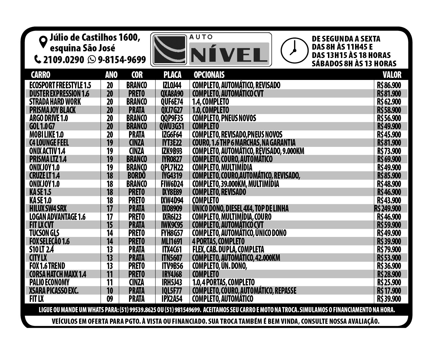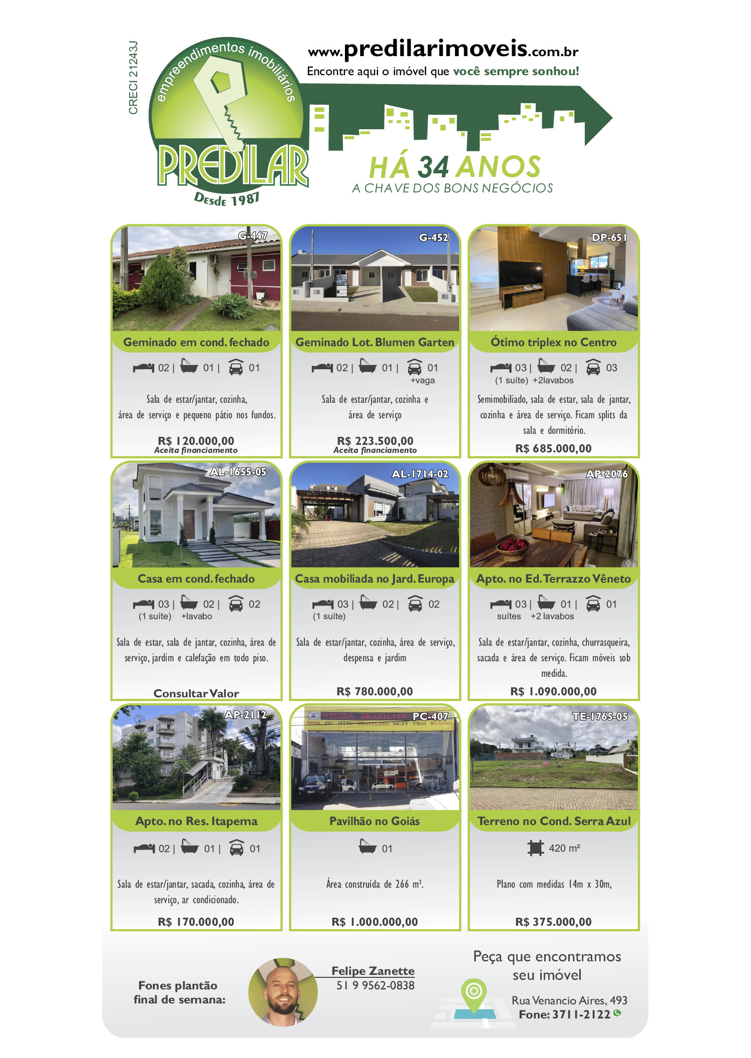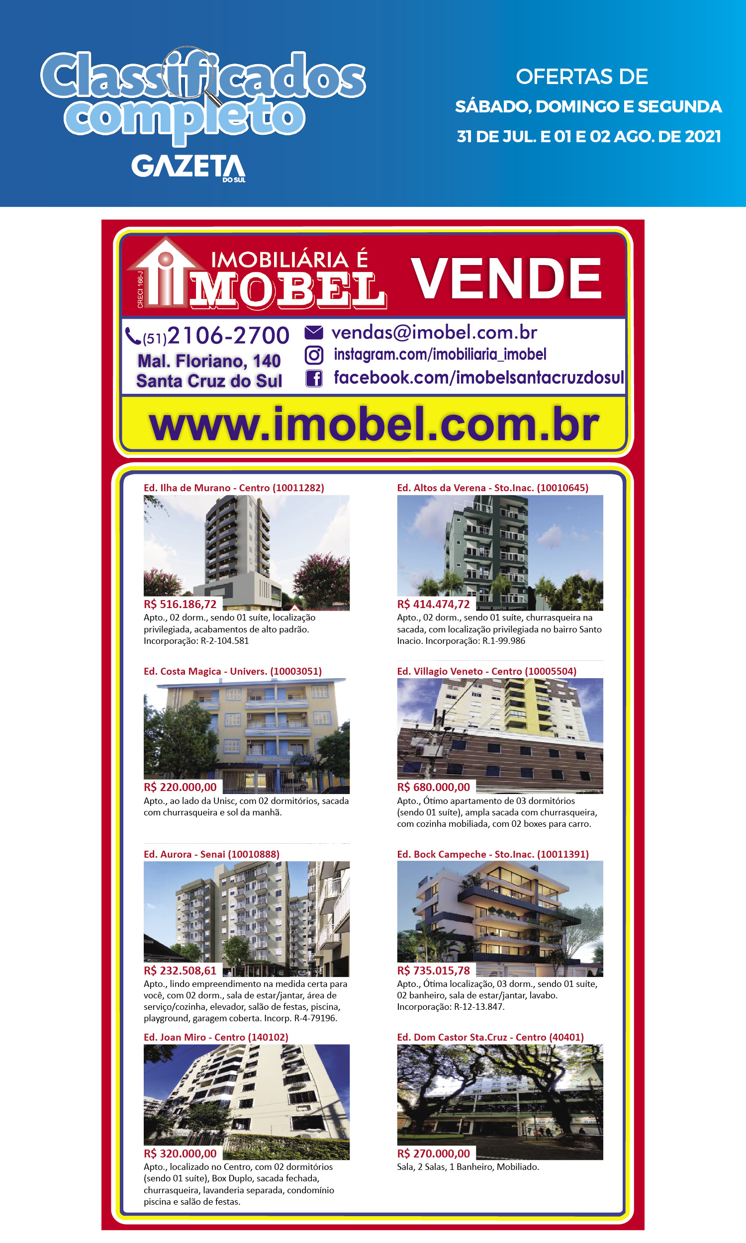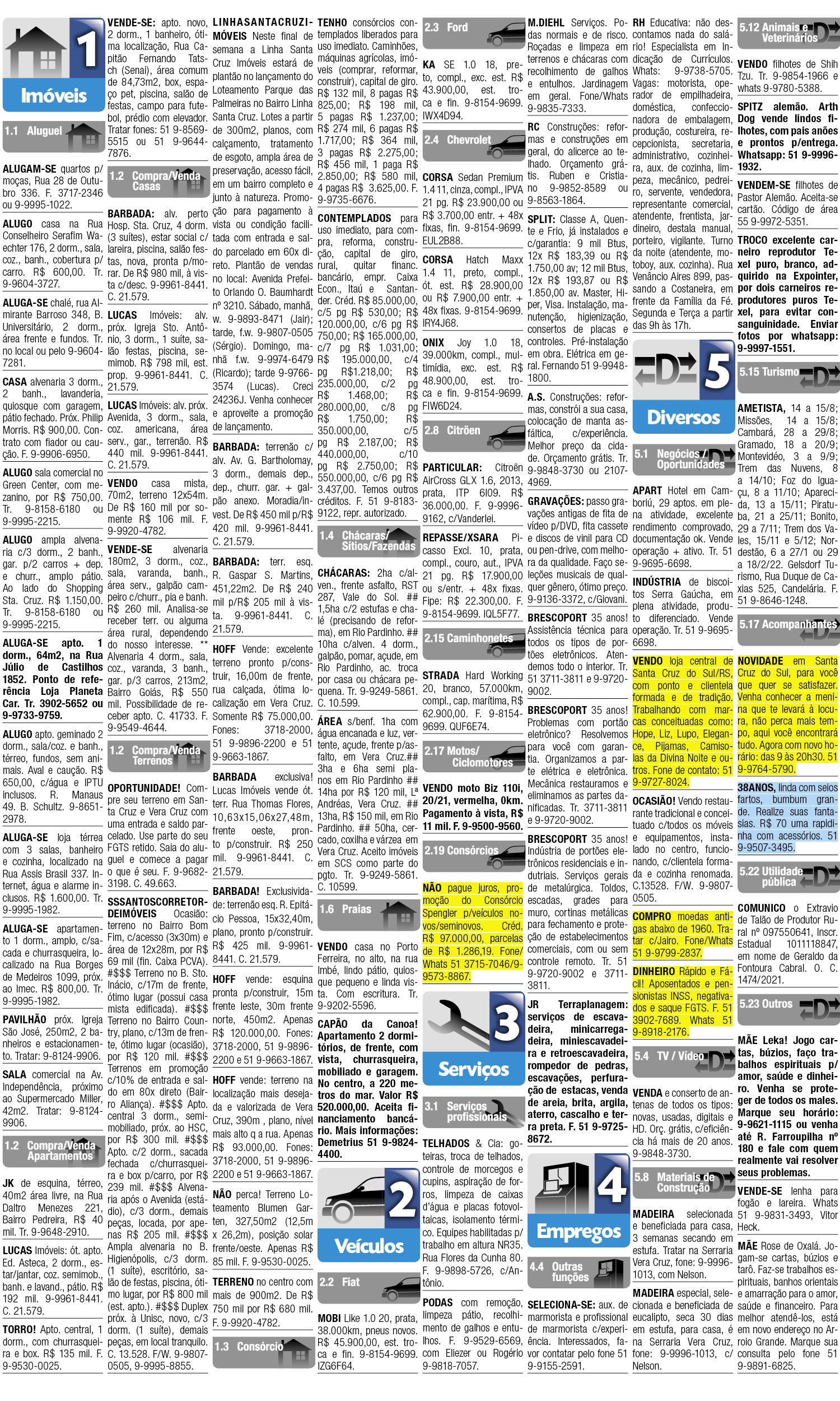 O suplemento de Classificados, que circula nas edições de terças, quintas e sábados, é um dos mais tradicionais da Gazeta do Sul, como vitrine e canal de negócios, de oferta, compra e venda em toda a região central do Rio Grande do Sul. E, para enriquecer pesquisas de produtos e serviços e possibilitar resultado ainda melhor a usuários e parceiros, nos anúncios de clientes cadastrados, o leitor tem acesso direto com link ao site do anunciante, onde poderá verificar mais detalhes sobre os itens. Confira: