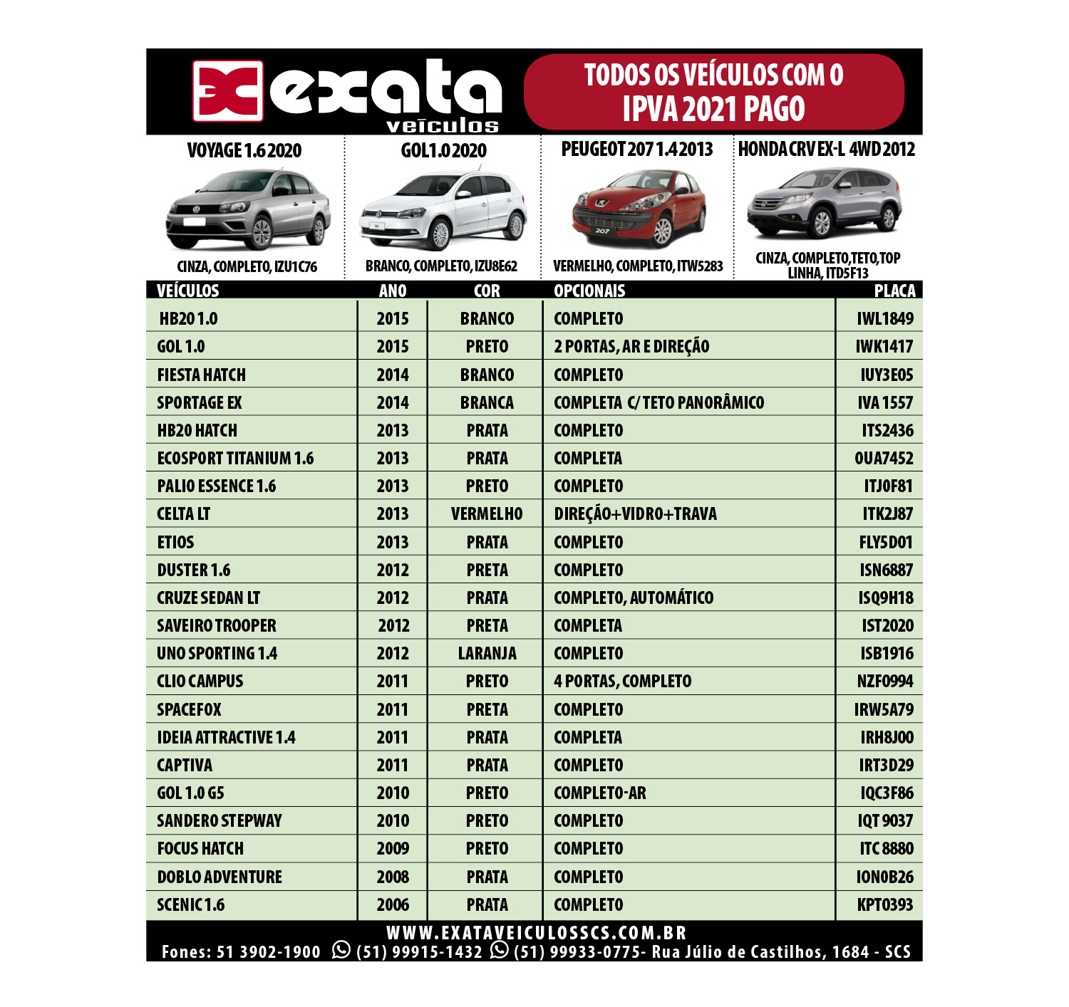 Para mais ofertas acesse: www.exataveiculosscs.com.br