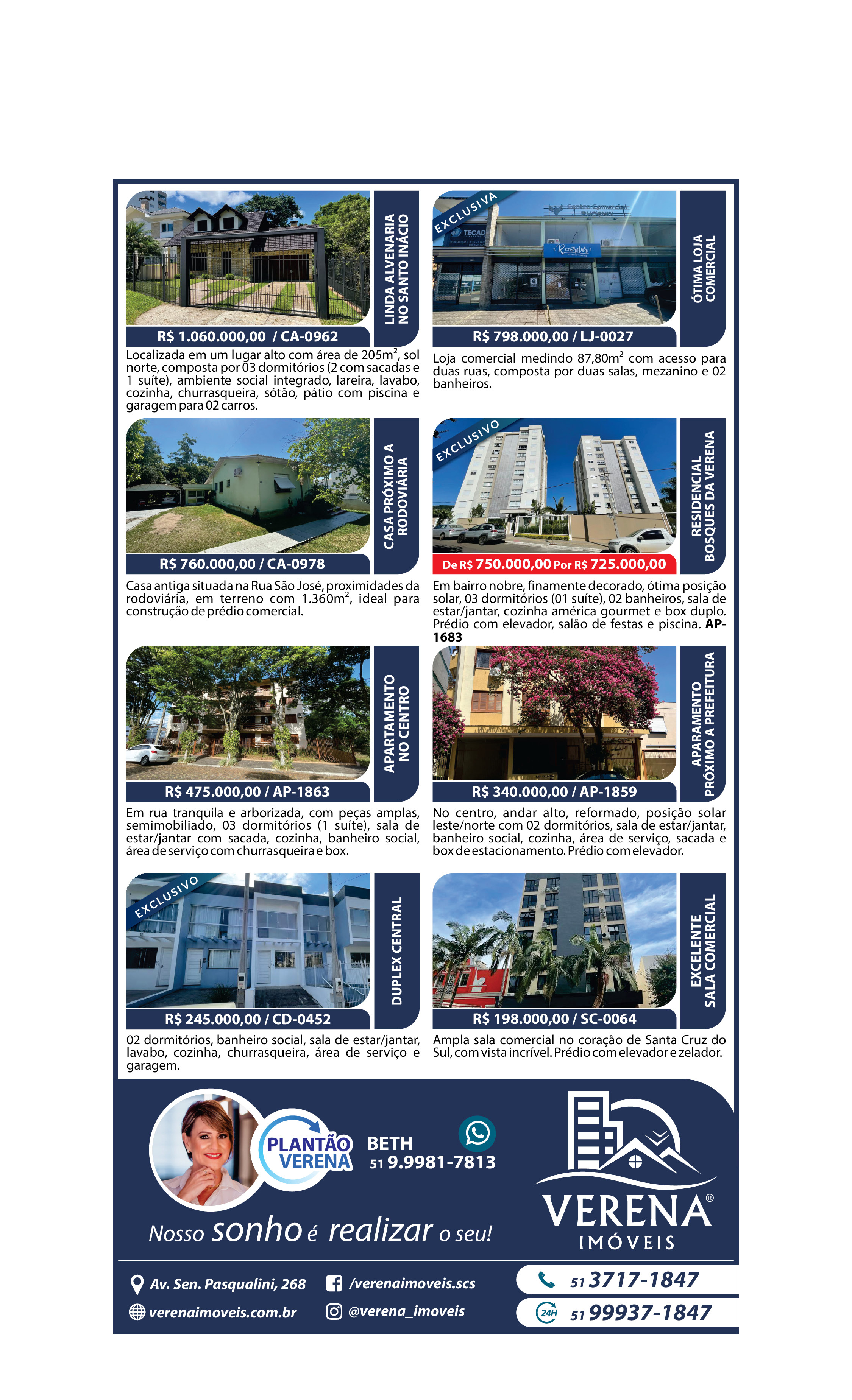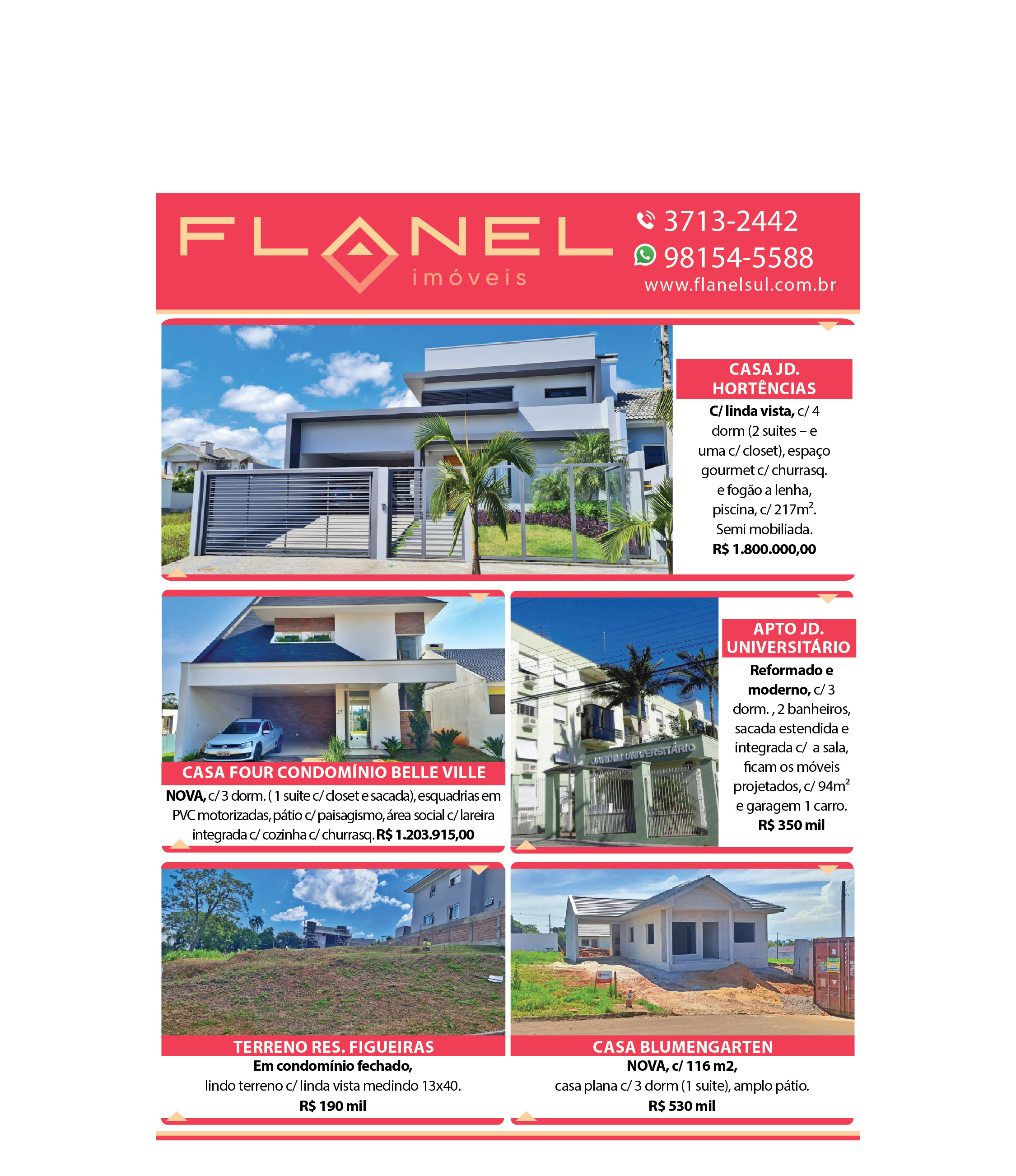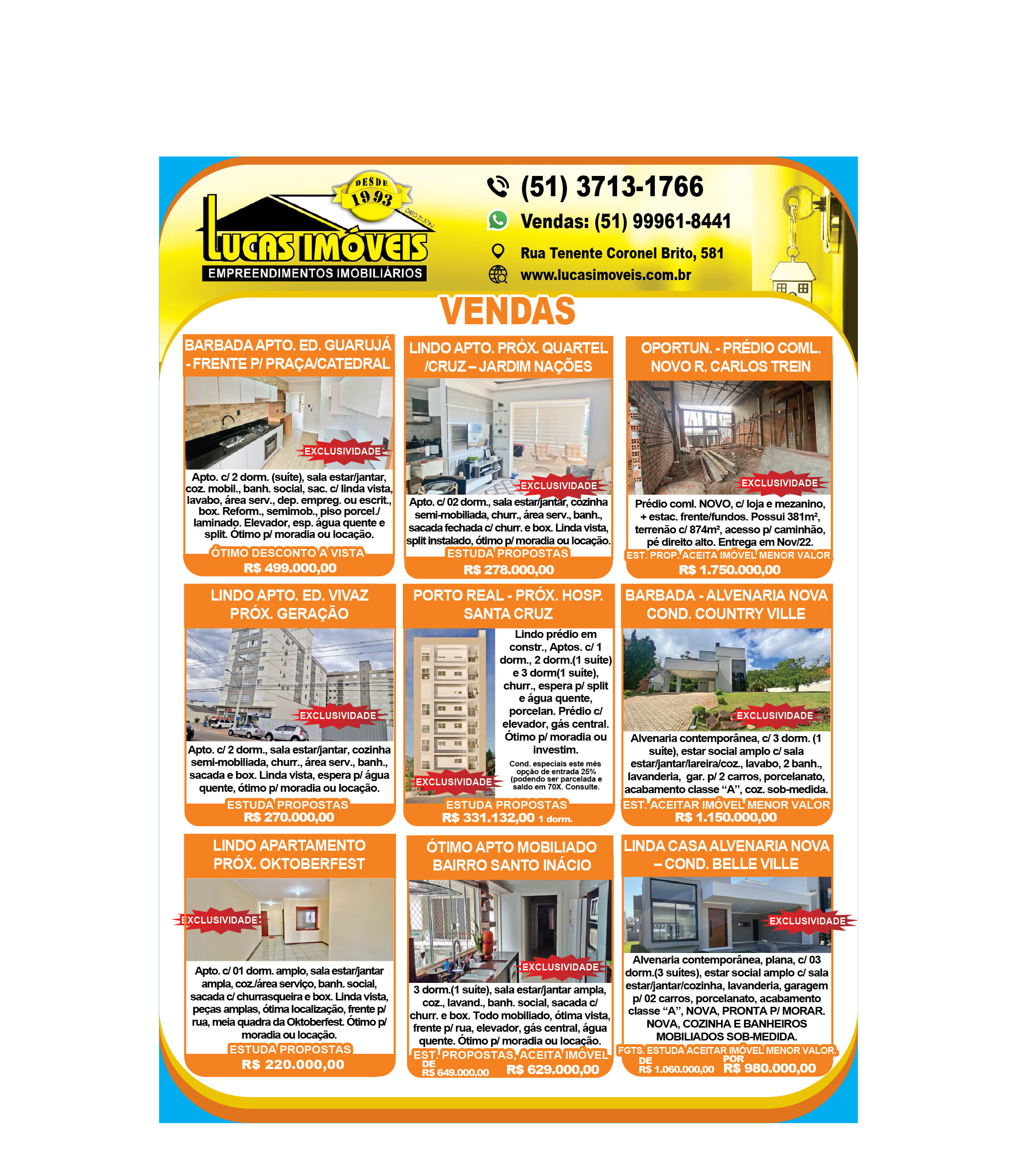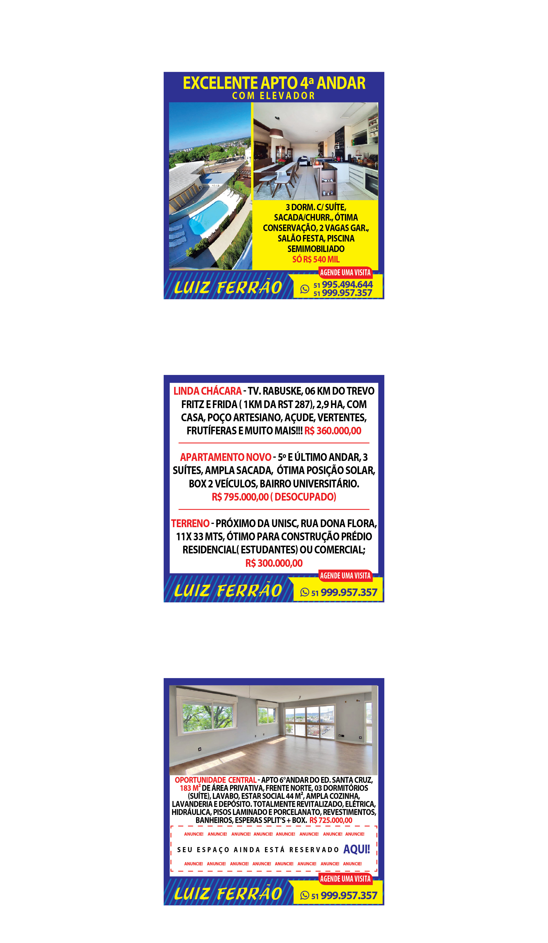 O suplemento de Classificados, que circula nas edições de terças, quintas e sábados, é um dos mais tradicionais da Gazeta do Sul, como vitrine e canal de negócios, de oferta, compra e venda em toda a região central do Rio Grande do Sul. E, para enriquecer pesquisas de produtos e serviços e possibilitar resultado ainda melhor a usuários e parceiros, nos anúncios de clientes cadastrados, o leitor tem acesso direto com link ao site do anunciante, onde poderá verificar mais detalhes sobre os itens. Confira as ofertas: