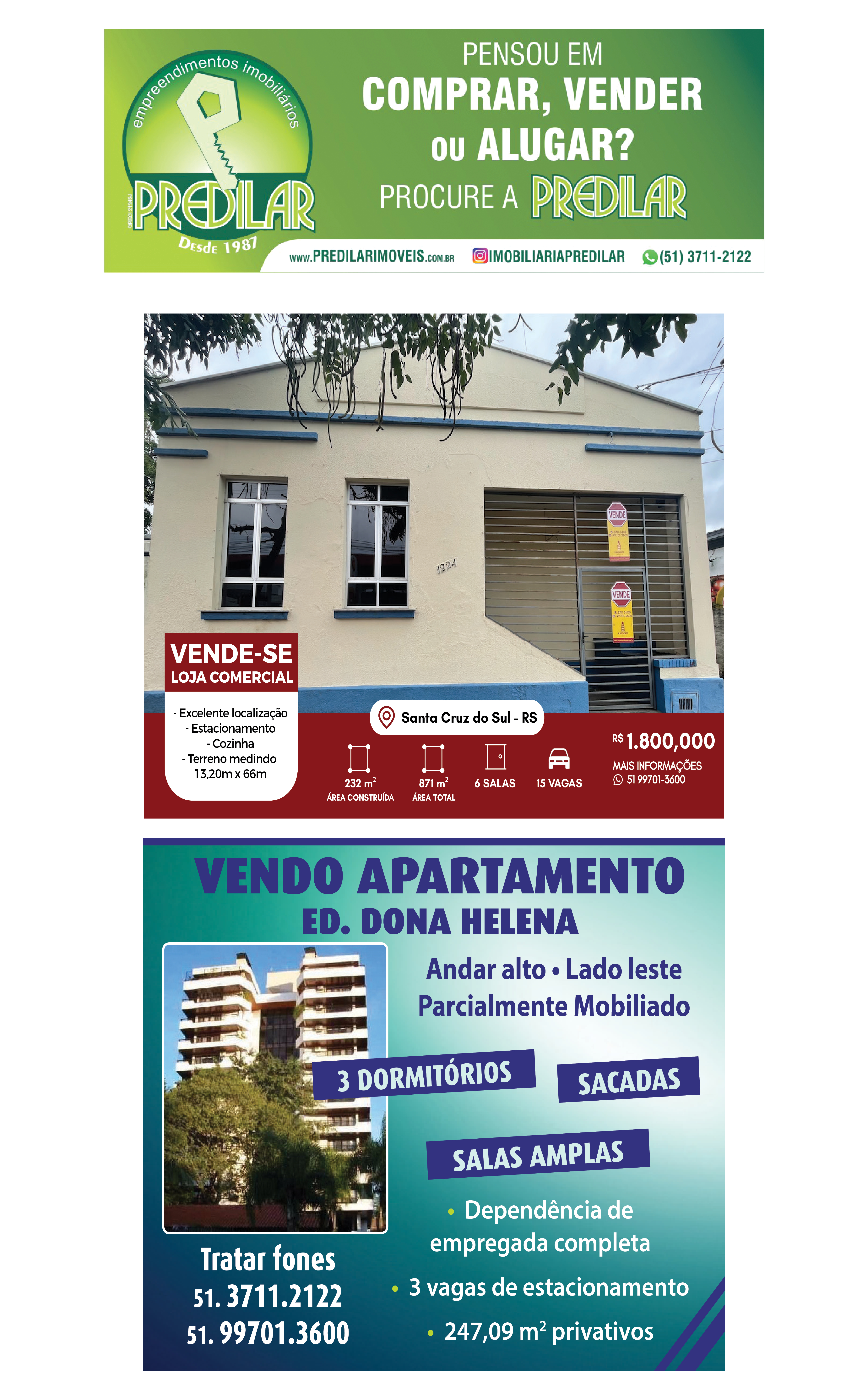O suplemento de Classificados, que circula nas edições de terças, quintas e sábados, é um dos mais tradicionais da Gazeta do Sul, como vitrine e canal de negócios, de oferta, compra e venda em toda a região central do Rio Grande do Sul. E, para enriquecer pesquisas de produtos e serviços e possibilitar resultado ainda melhor a usuários e parceiros, nos anúncios de clientes cadastrados, o leitor tem acesso direto com link ao site do anunciante, onde poderá verificar mais detalhes sobre os itens. Confira as ofertas:
