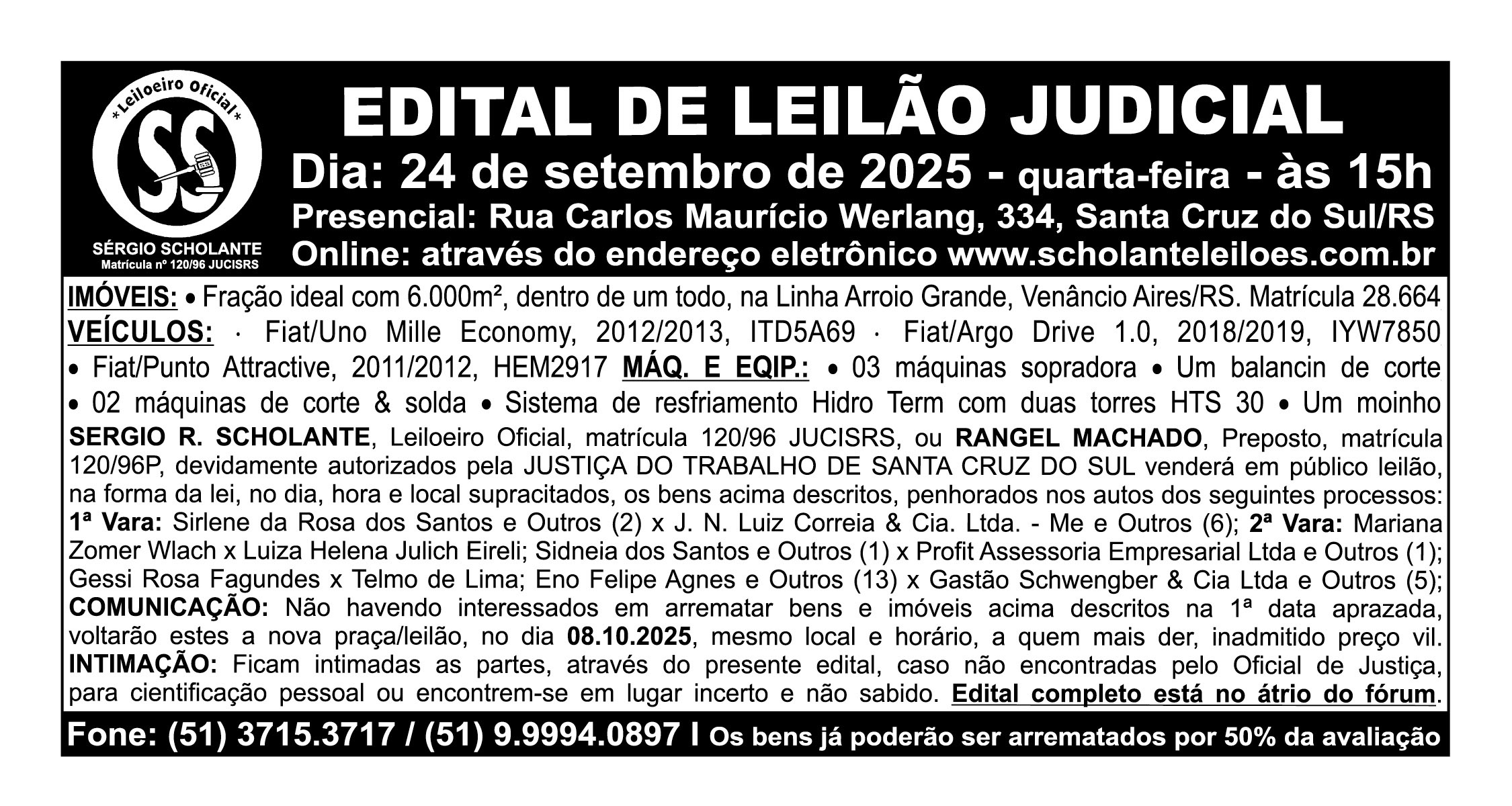 Confira oportunidades de negócios em Santa Cruz e região para os dias 4 e 5 de setembro de 2025