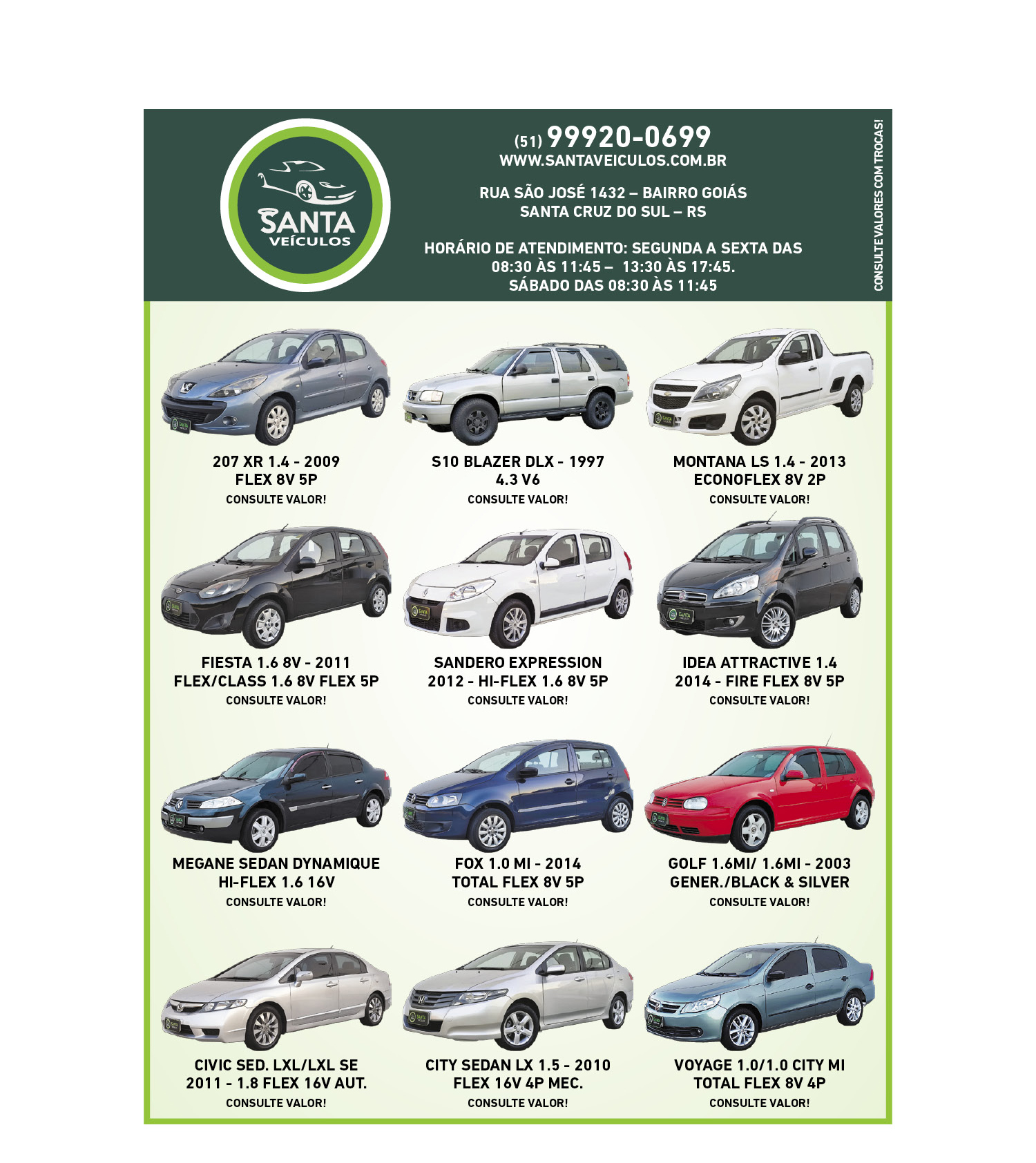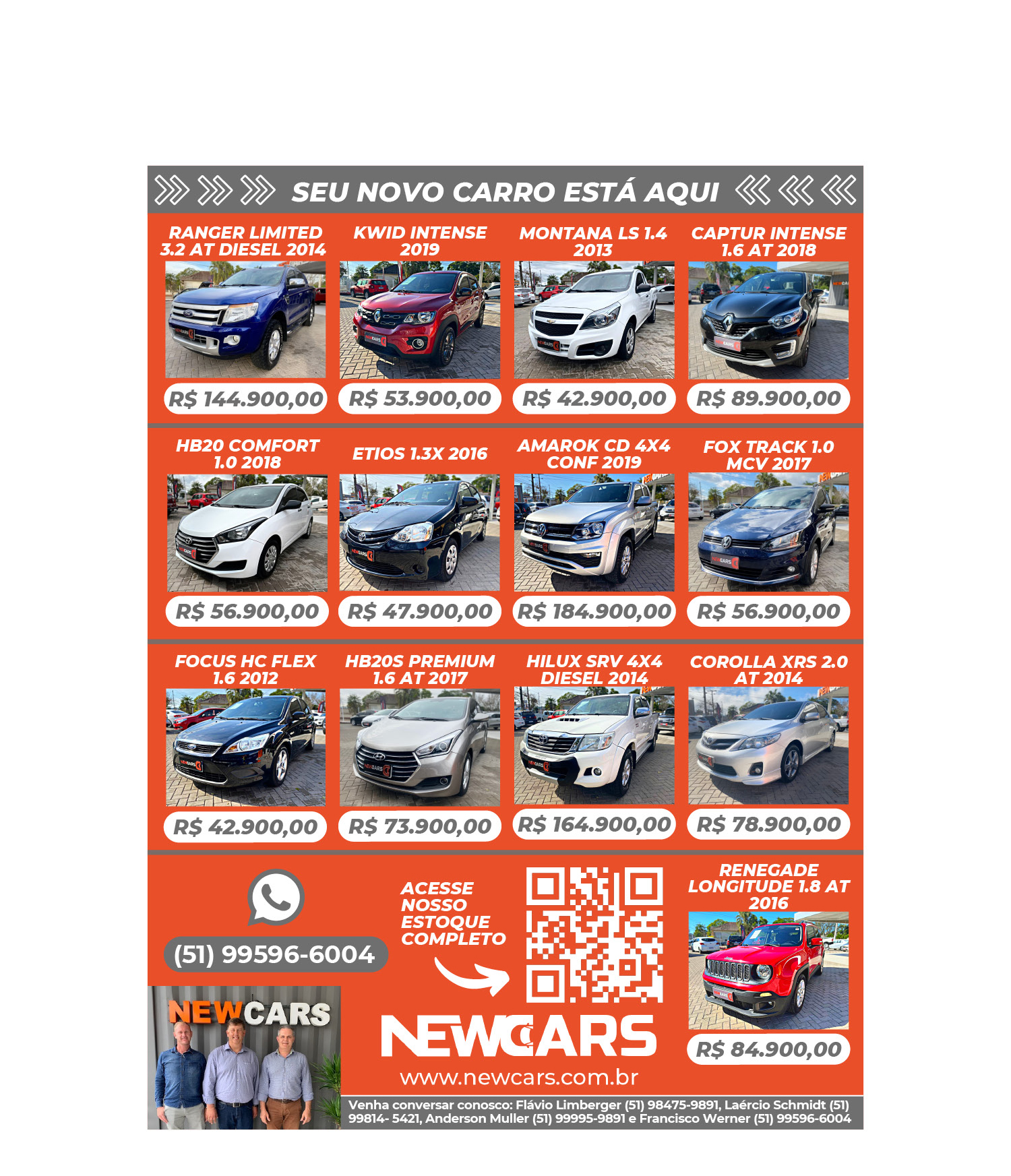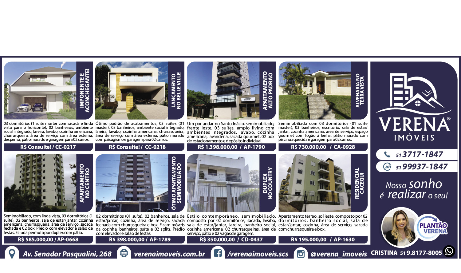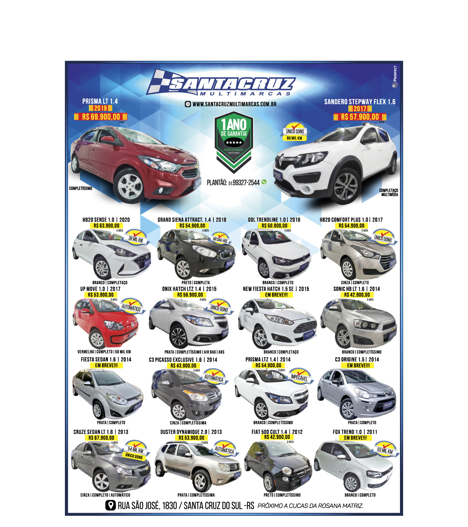 O suplemento de Classificados, que circula nas edições de terças, quintas e sábados, é um dos mais tradicionais da Gazeta do Sul, como vitrine e canal de negócios, de oferta, compra e venda em toda a região central do Rio Grande do Sul. E, para enriquecer pesquisas de produtos e serviços e possibilitar resultado ainda melhor a usuários e parceiros, nos anúncios de clientes cadastrados, o leitor tem acesso direto com link ao site do anunciante, onde poderá verificar mais detalhes sobre os itens. Confira as ofertas: