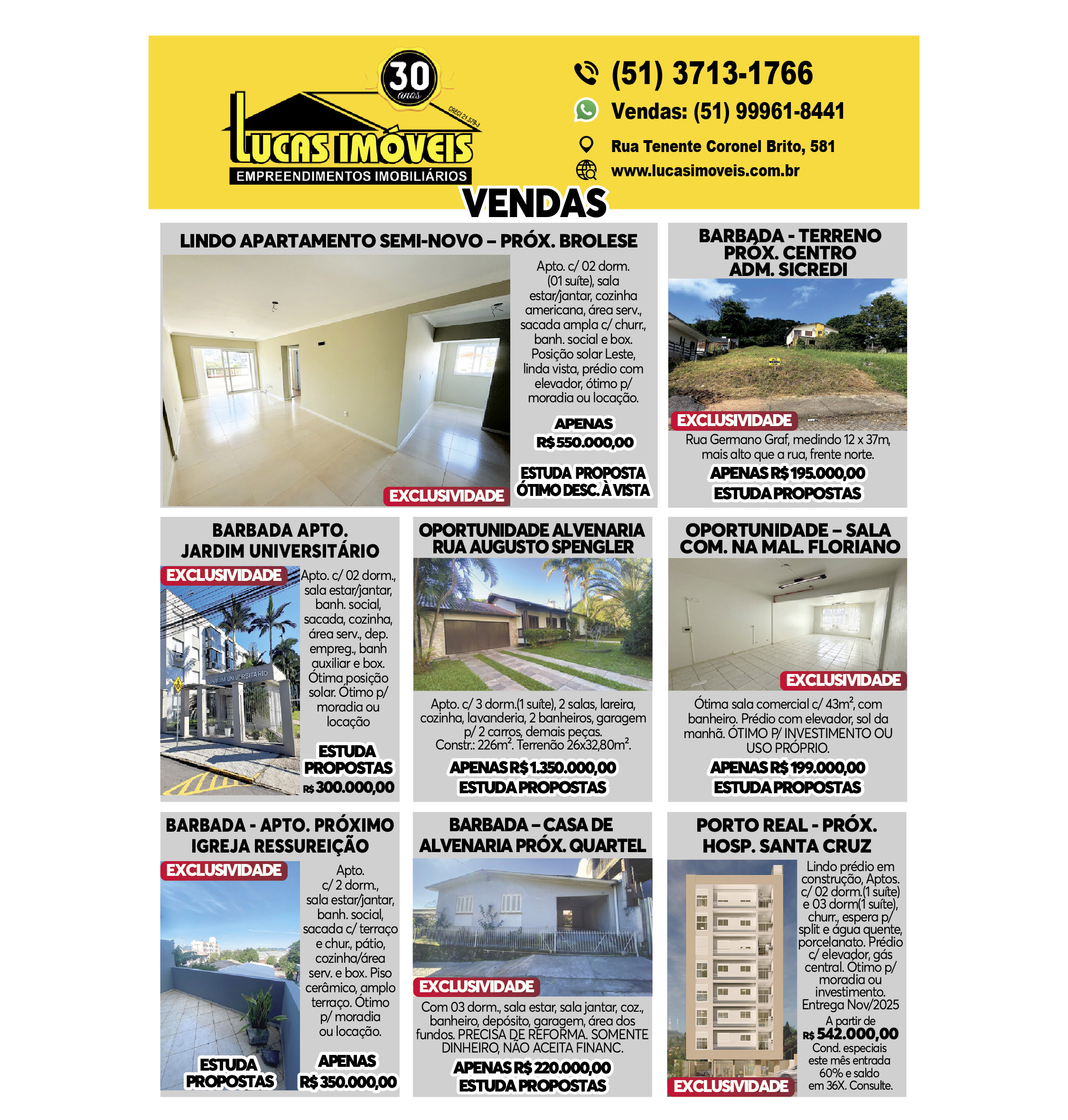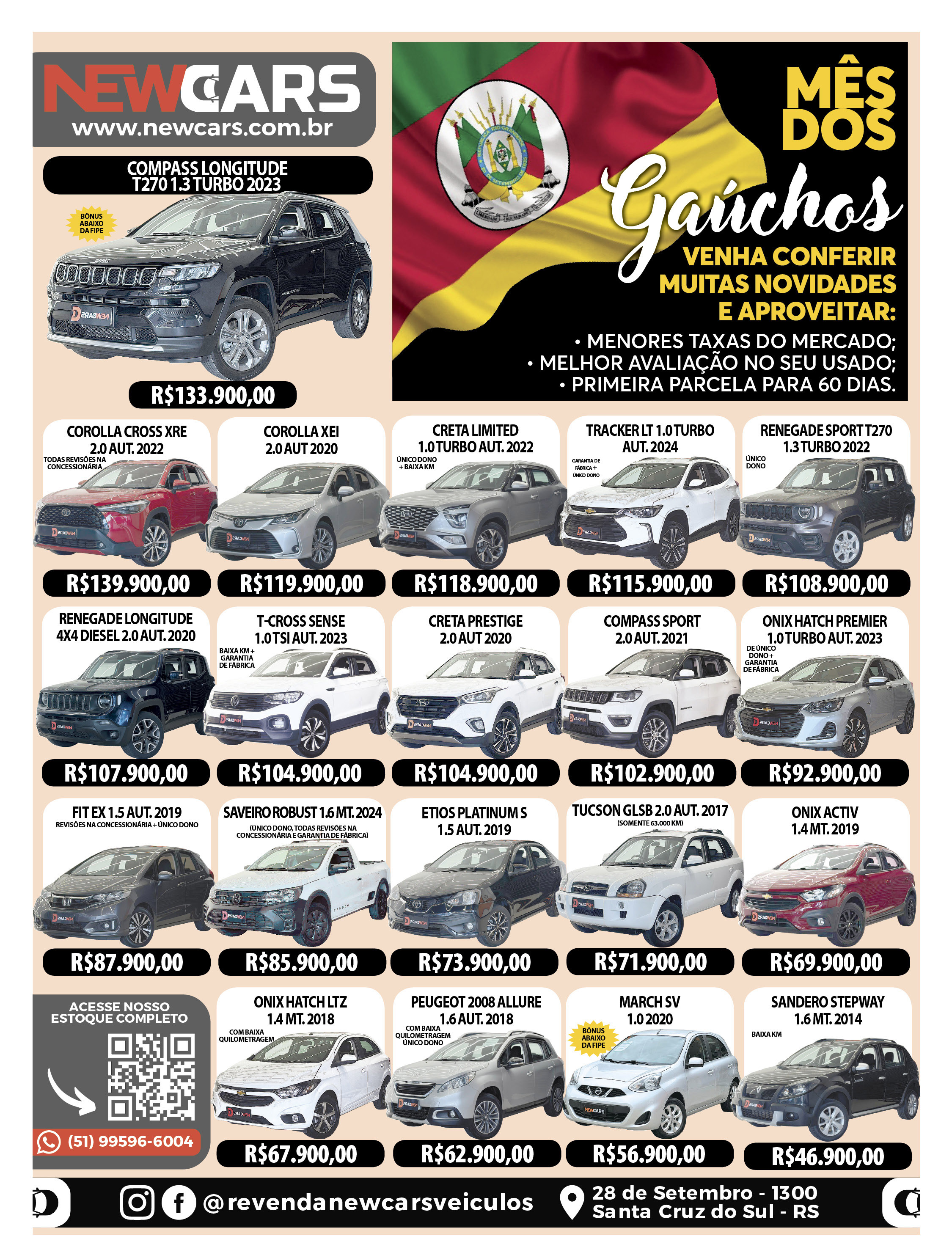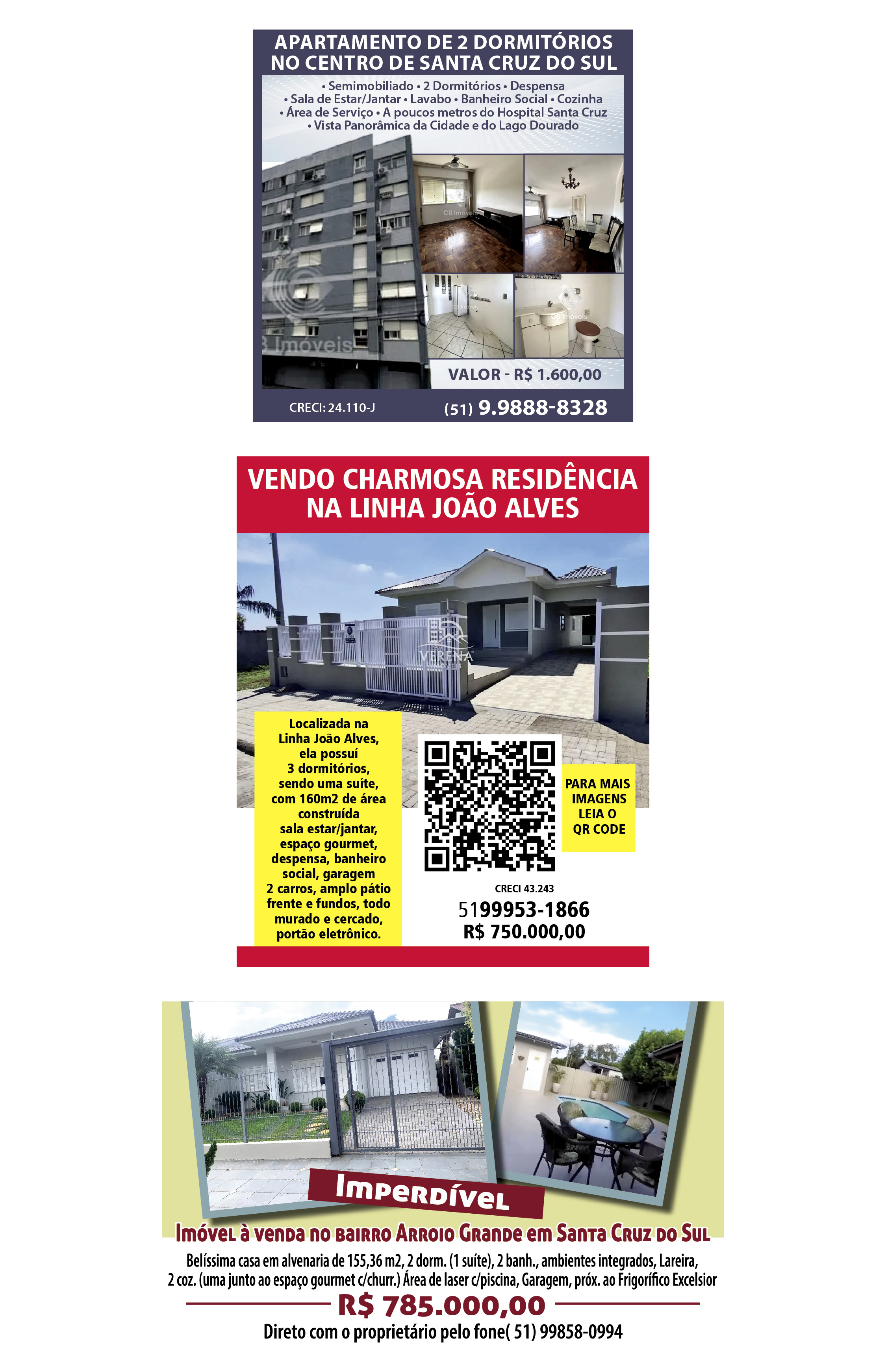 O suplemento de Classificados, que circula nas edições de terças, quintas e sábados, é um dos mais tradicionais da Gazeta do Sul, como vitrine e canal de negócios, de oferta, compra e venda em toda a região central do Rio Grande do Sul. E, para enriquecer pesquisas de produtos e serviços e possibilitar resultado ainda melhor a usuários e parceiros, nos anúncios de clientes cadastrados, o leitor tem acesso direto com link ao site do anunciante, onde poderá verificar mais detalhes sobre os itens. Confira as ofertas: