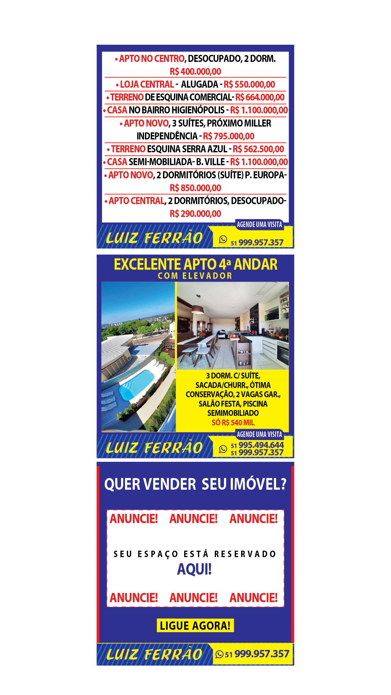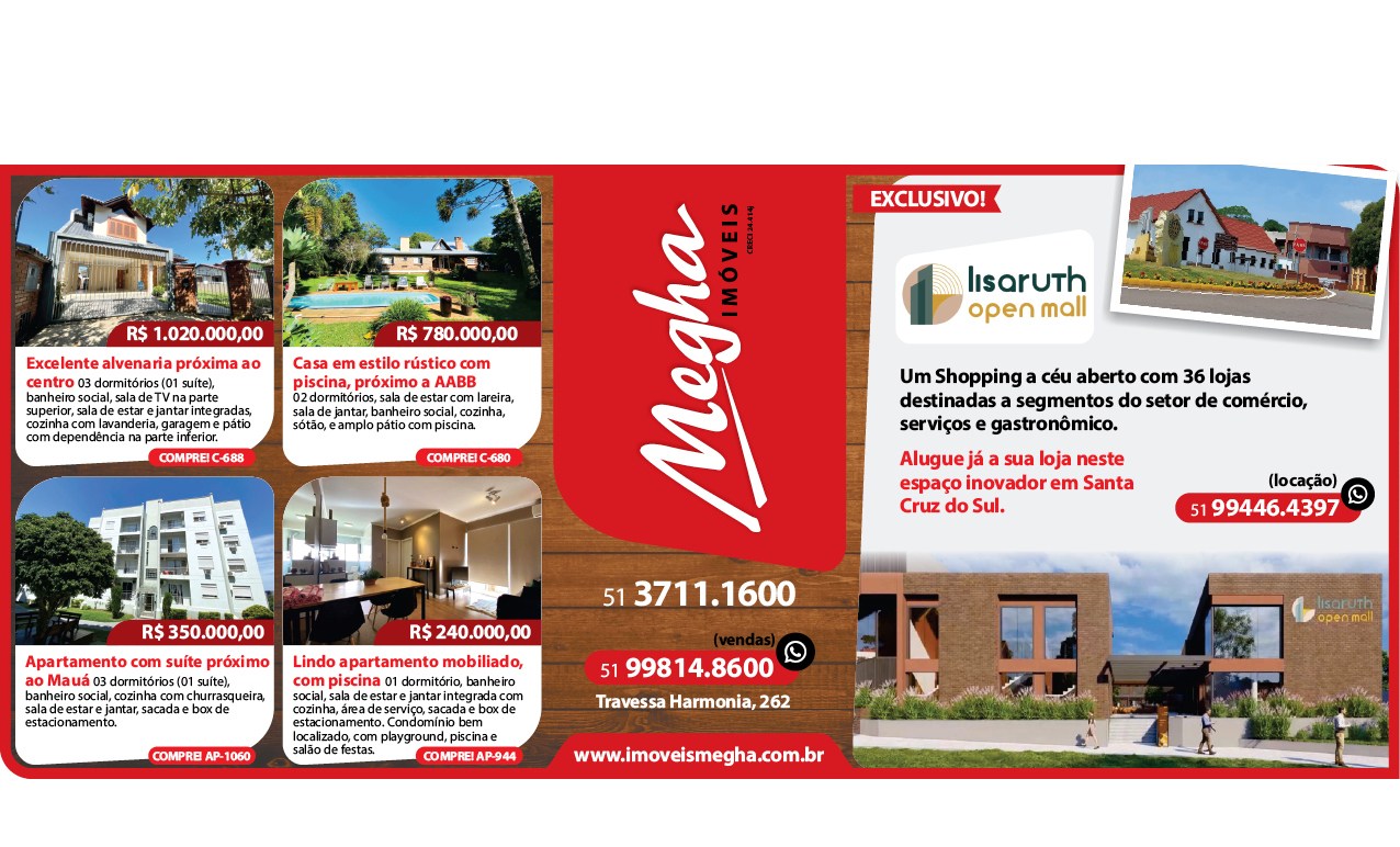 O suplemento de Classificados, que circula nas edições de terças, quintas e sábados, é um dos mais tradicionais da Gazeta do Sul, como vitrine e canal de negócios, de oferta, compra e venda em toda a região central do Rio Grande do Sul. E, para enriquecer pesquisas de produtos e serviços e possibilitar resultado ainda melhor a usuários e parceiros, nos anúncios de clientes cadastrados, o leitor tem acesso direto com link ao site do anunciante, onde poderá verificar mais detalhes sobre os itens. Confira as ofertas: