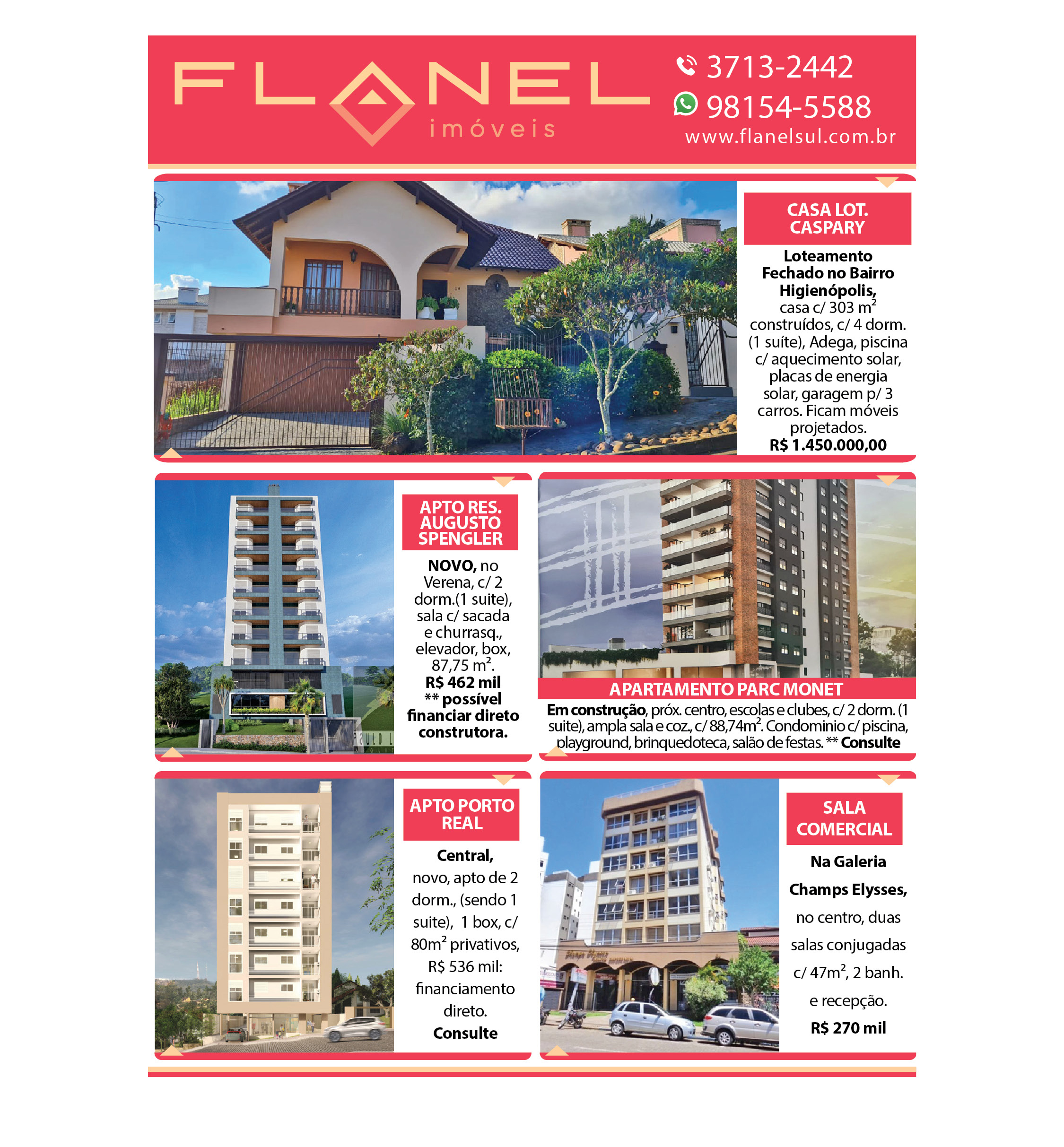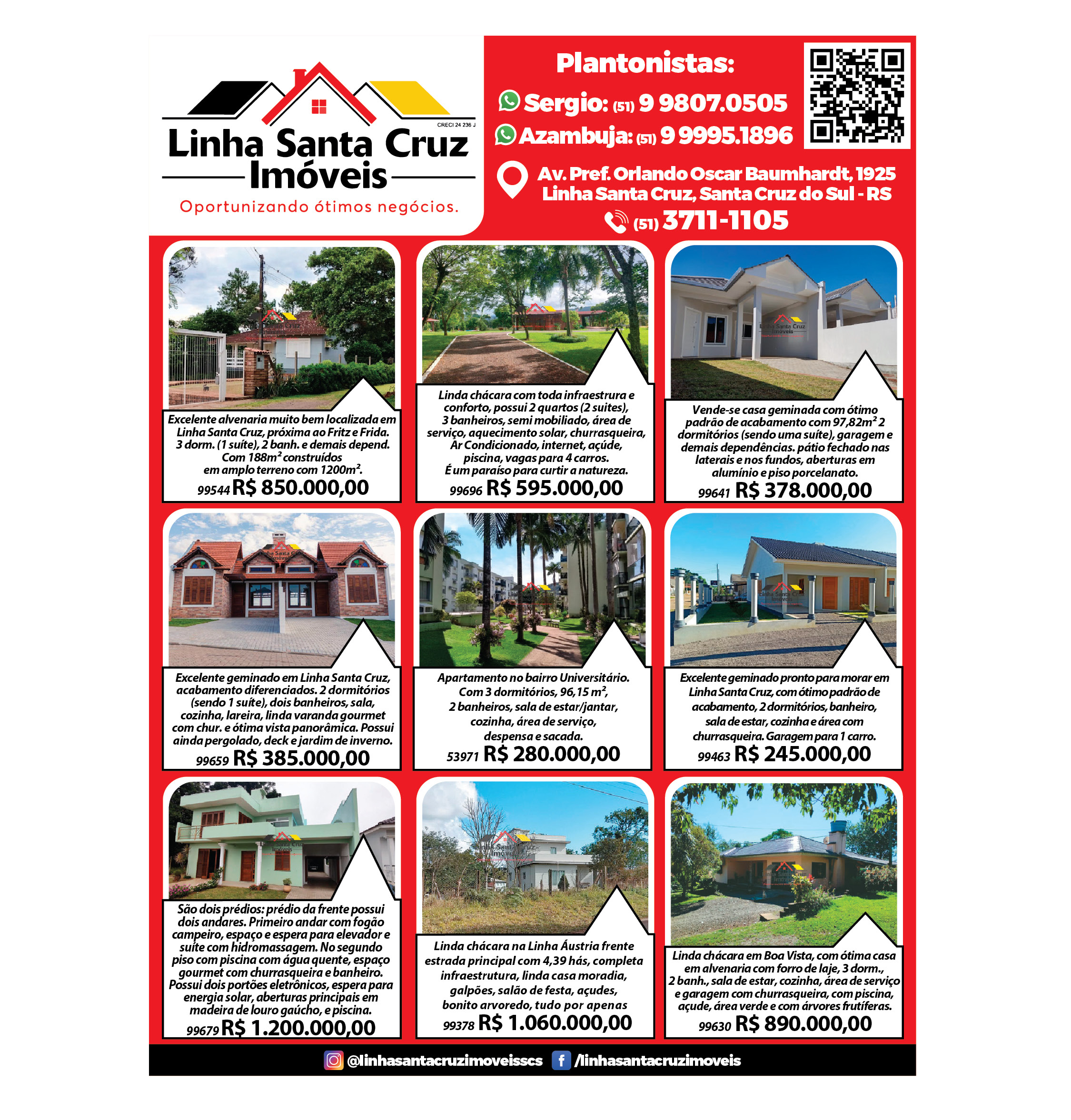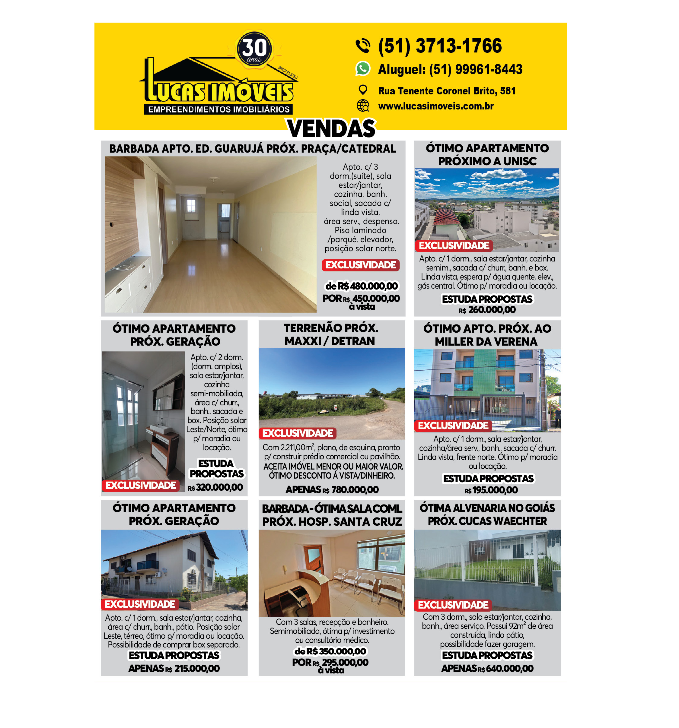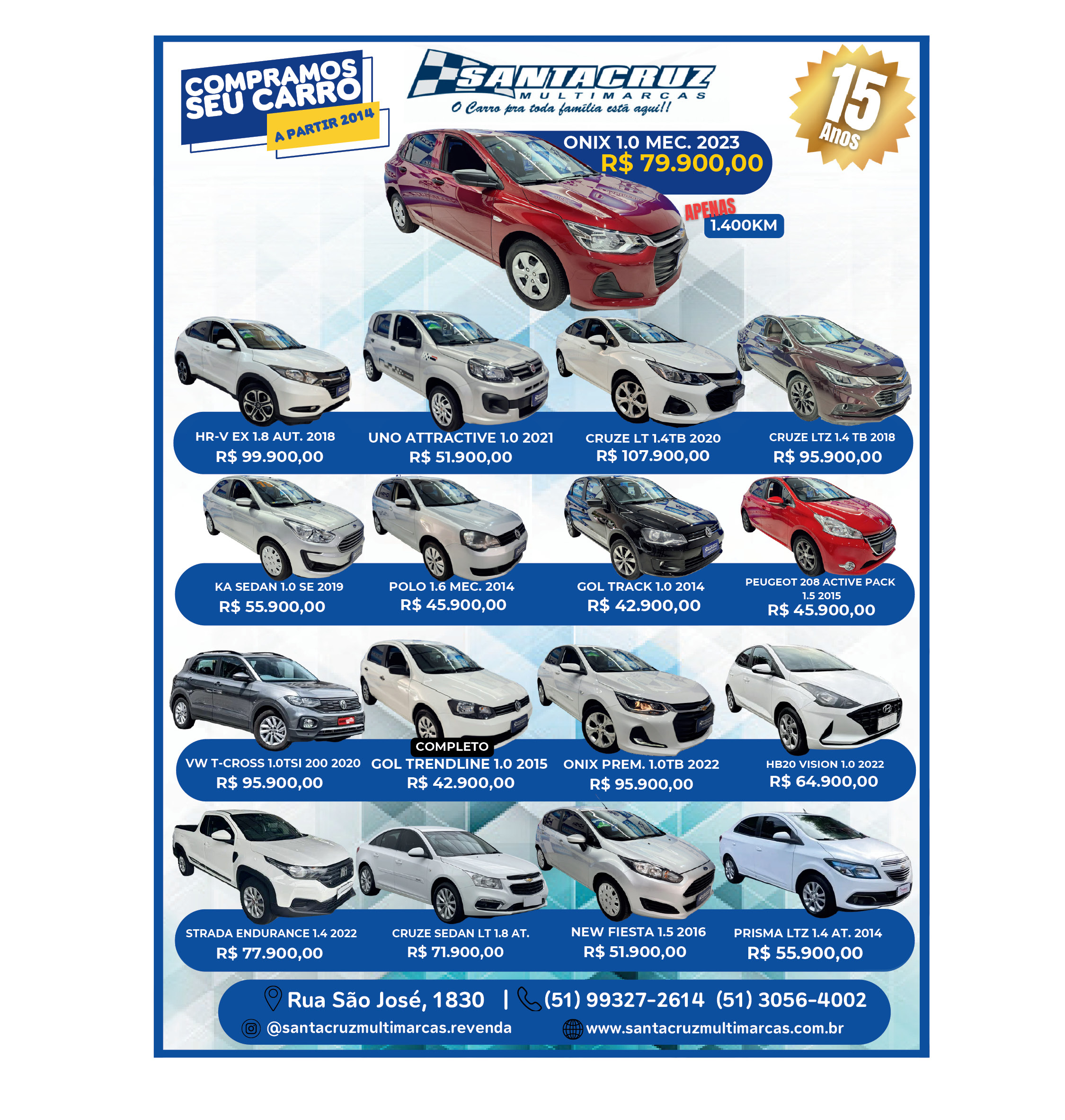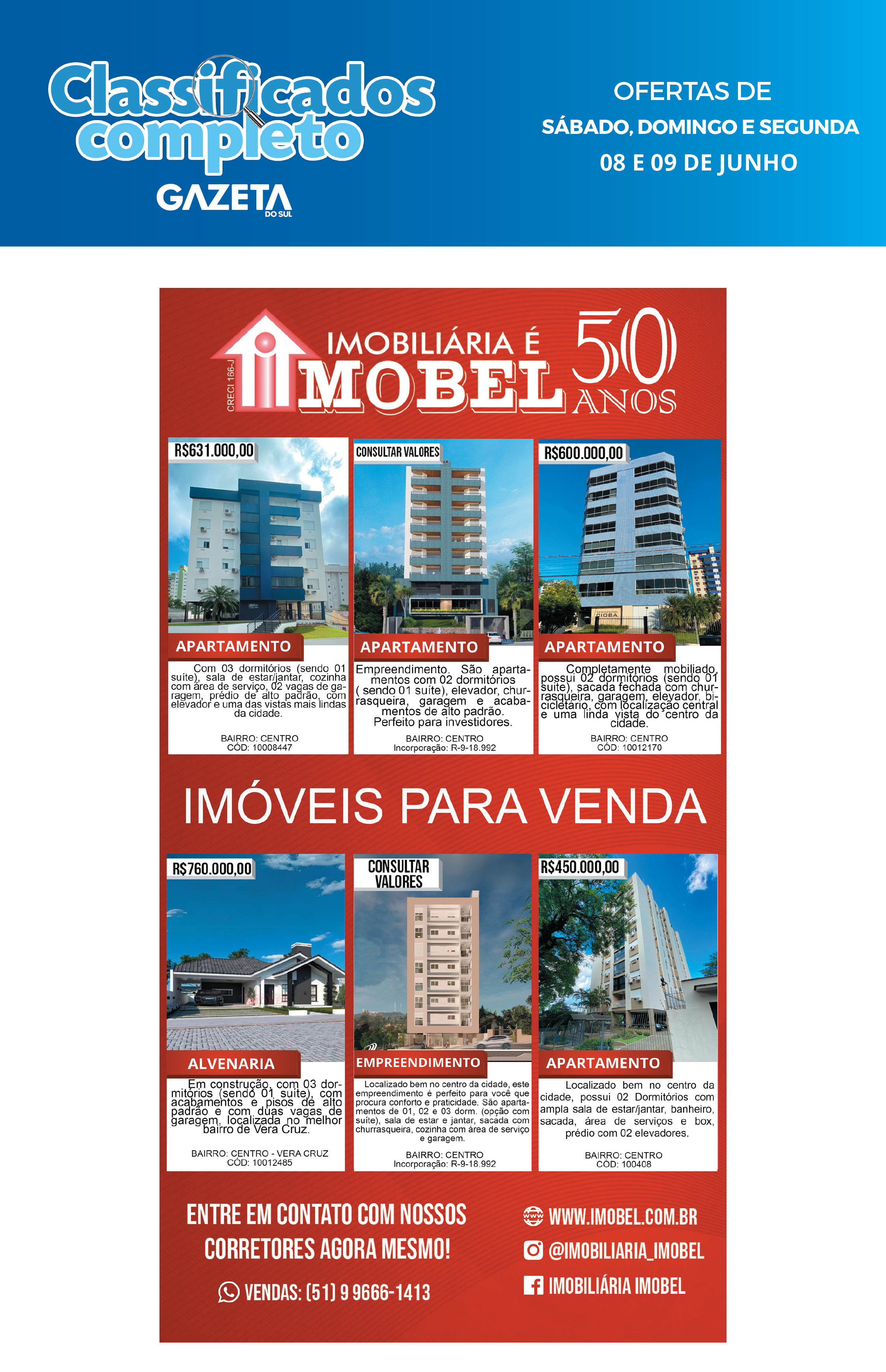 O suplemento de Classificados, que circula nas edições de terças, quintas e sábados, é um dos mais tradicionais da Gazeta do Sul, como vitrine e canal de negócios, de oferta, compra e venda em toda a região central do Rio Grande do Sul. E, para enriquecer pesquisas de produtos e serviços e possibilitar resultado ainda melhor a usuários e parceiros, nos anúncios de clientes cadastrados, o leitor tem acesso direto com link ao site do anunciante, onde poderá verificar mais detalhes sobre os itens. Confira as ofertas: