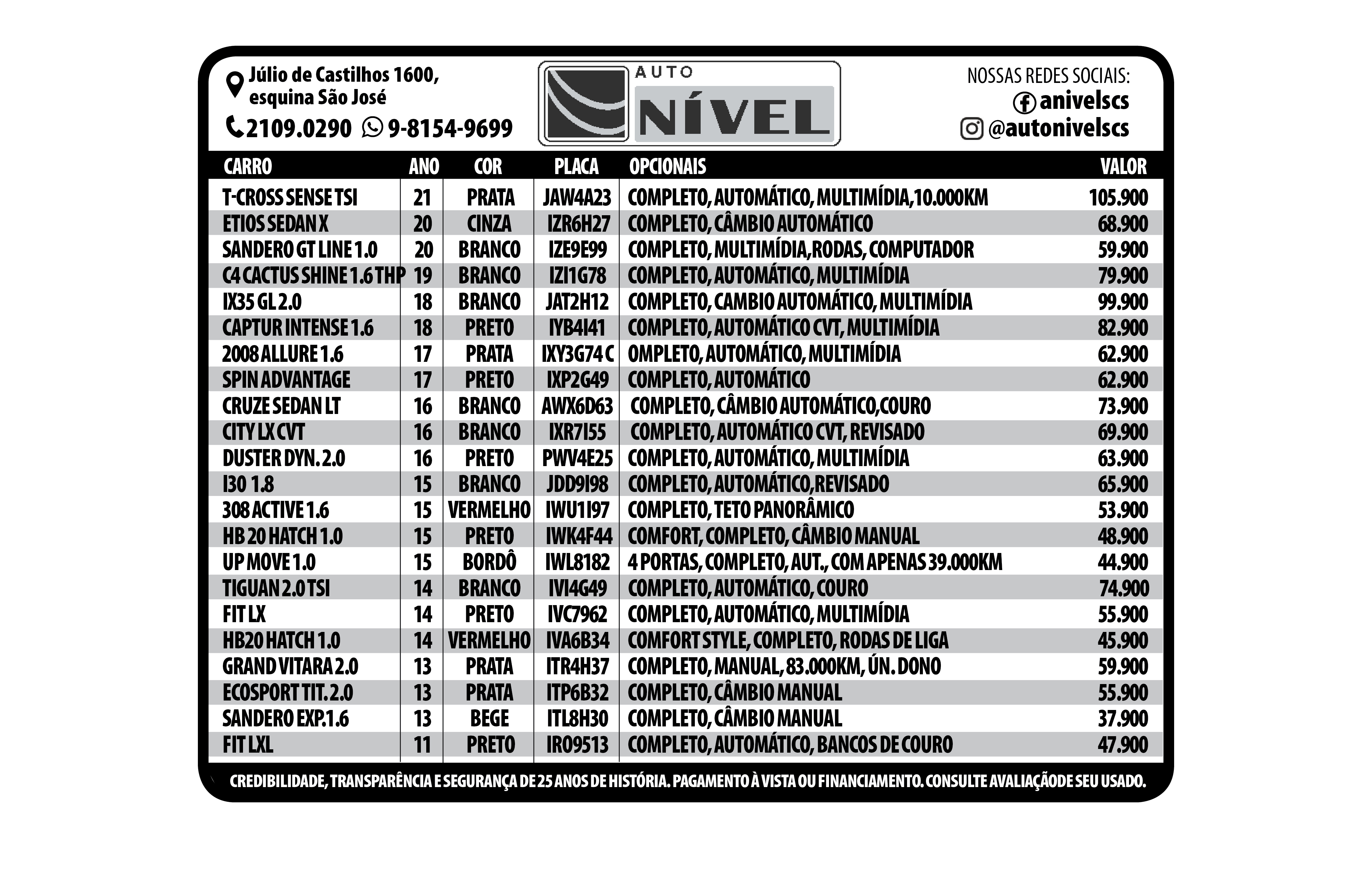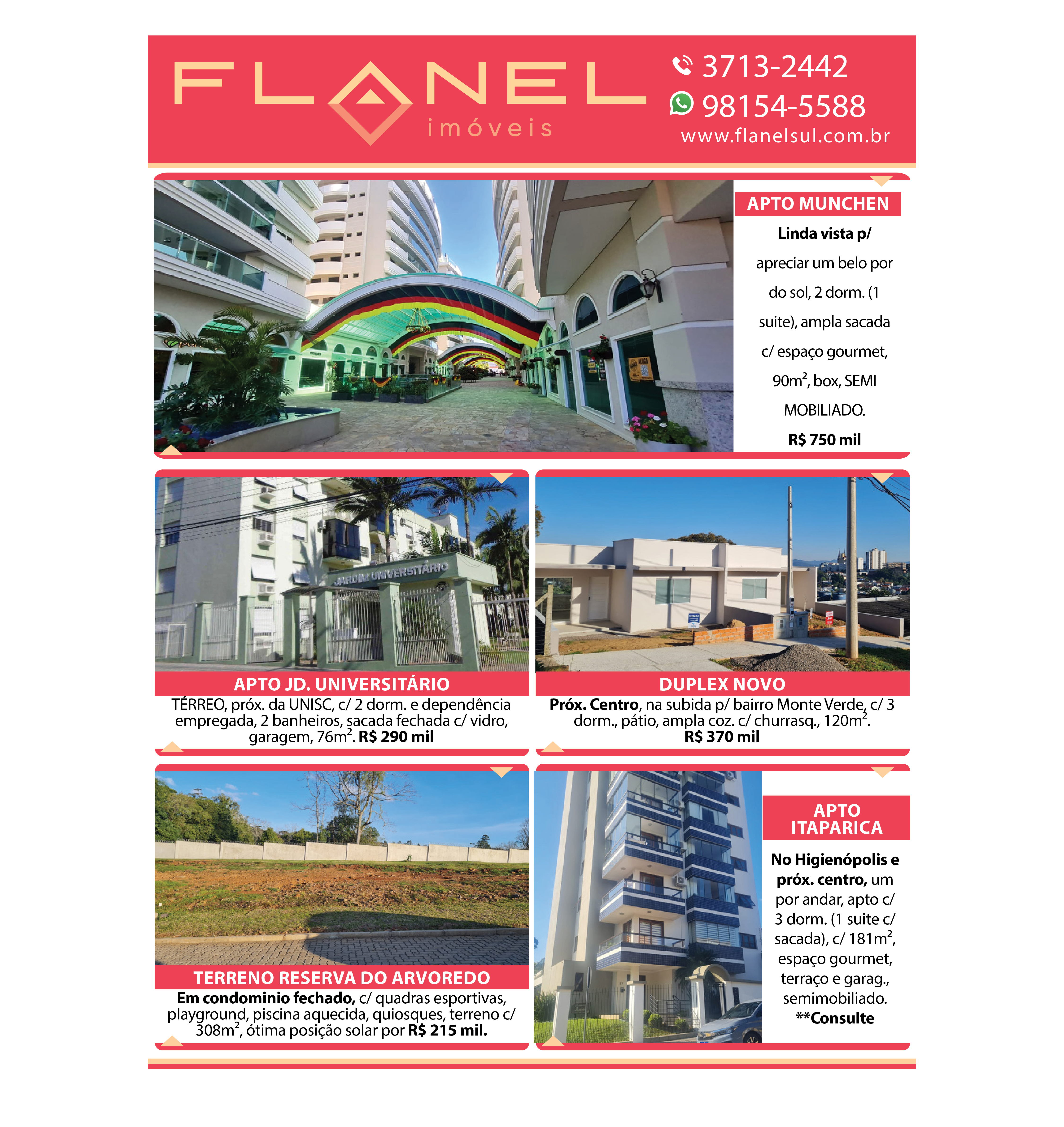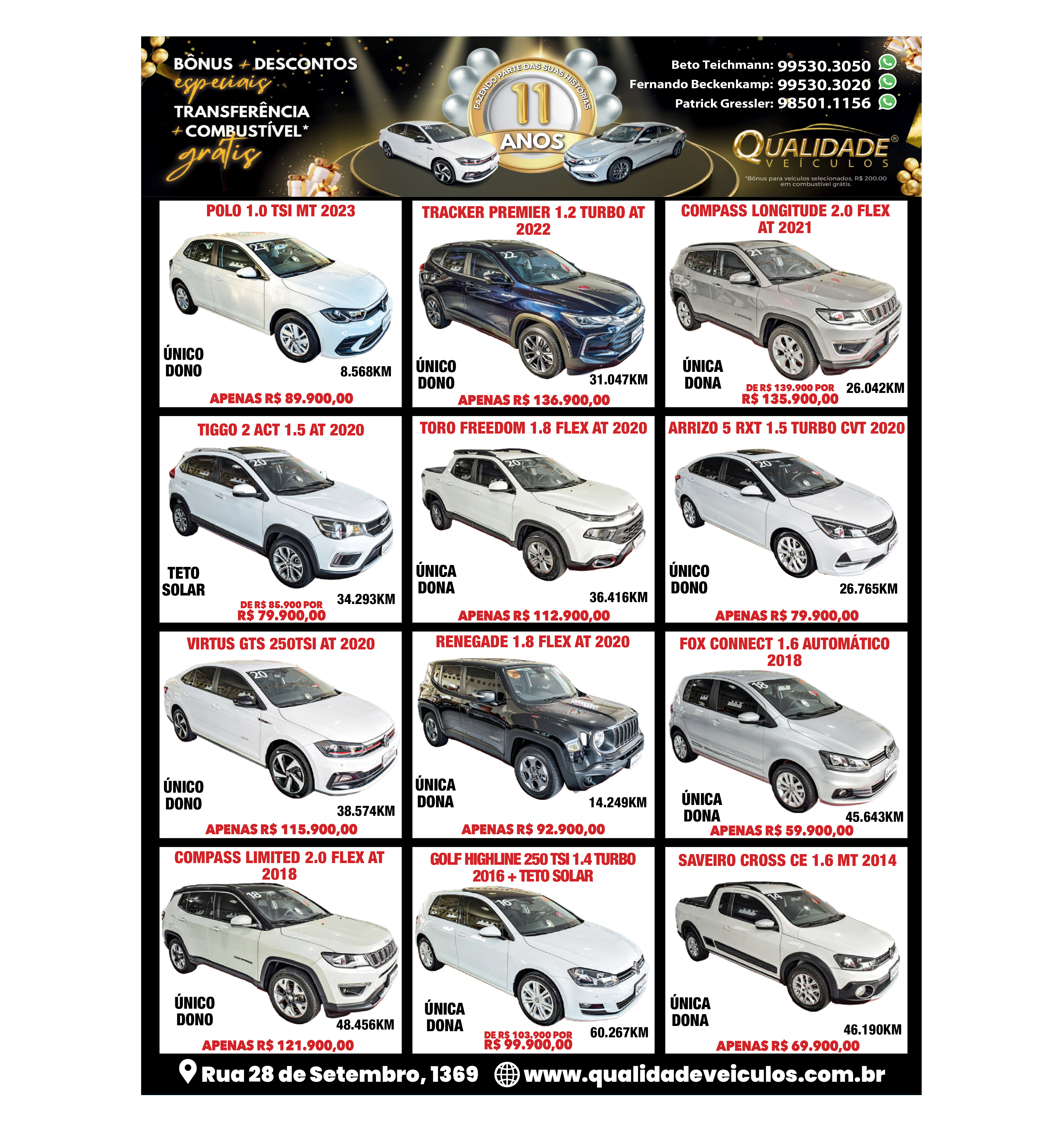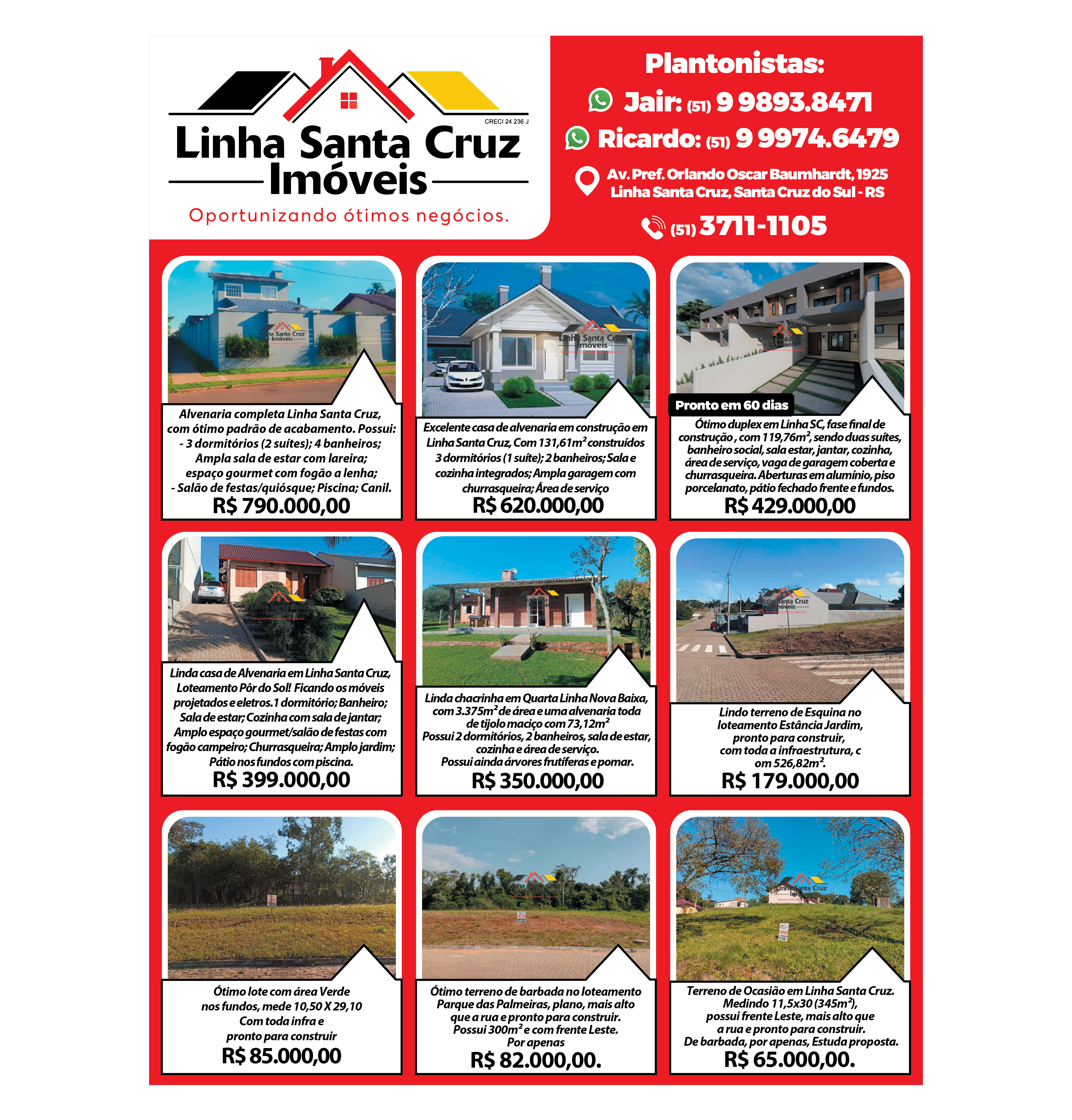 O suplemento de Classificados, que circula nas edições de terças, quintas e sábados, é um dos mais tradicionais da Gazeta do Sul, como vitrine e canal de negócios, de oferta, compra e venda em toda a região central do Rio Grande do Sul. E, para enriquecer pesquisas de produtos e serviços e possibilitar resultado ainda melhor a usuários e parceiros, nos anúncios de clientes cadastrados, o leitor tem acesso direto com link ao site do anunciante, onde poderá verificar mais detalhes sobre os itens. Confira as ofertas: