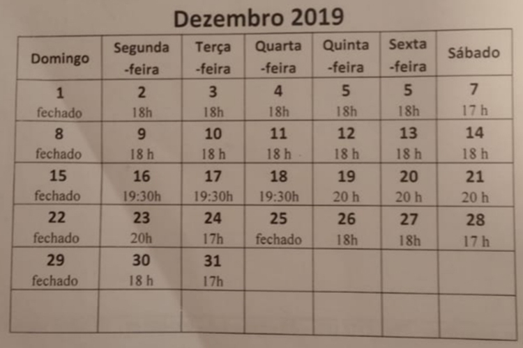 As festividades de final de ano alteram o horário de funcionamento do comércio do Centro Serra, e o Sindicato do Comércio Varejista de Sobradinho (Sindilojas) divulgou informações sobre os horários, que podem ser conferidos na tabela acima. Esses horários valem para os estabelecimentos de Sobradinho, Arroio do Tigre, Estrela Velha, Ibarama, Passa Sete e Segredo.