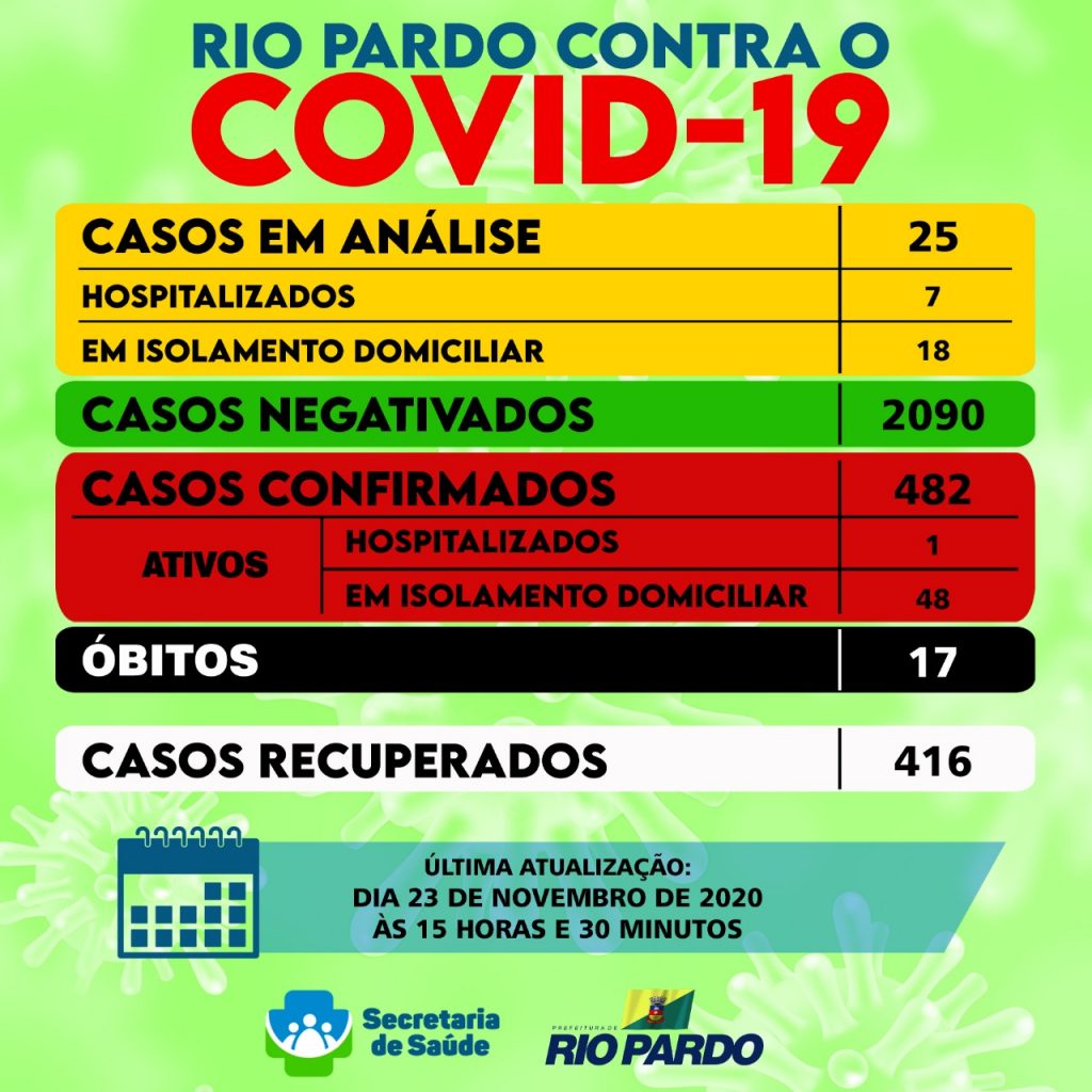 Os recuperados da doença em Rio Pardo são 416. A Secretaria Municipal da Saúde ainda acompanha 25 pacientes com suspeita de infecção pelo novo coronavírus – 7 destes estão hospitalizados.