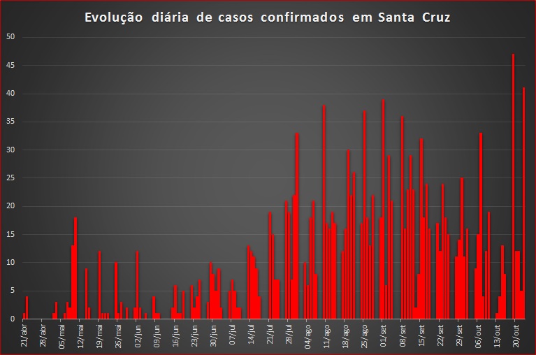 Com a alta desta sexta, Santa Cruz acumula 1.501 casos confirmados de Covid-19. Destas pessoas que tiveram teste positivo para a doença, nove faleceram e 1.351 estão recuperadas.