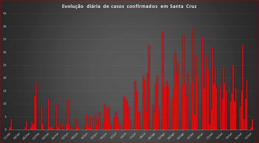 Dos 1.363 moradores de Santa Cruz que tiveram teste positivo para o novo coronavírus, 1.276 estão recuperados.