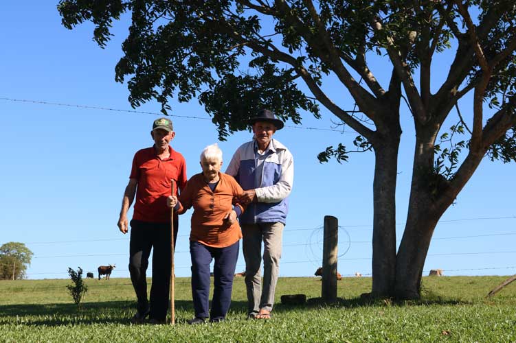 Dona Glória com os filhos Osvaldo e Romeu, em uma tarde de novembro, na vida pacata do Distrito de Cruz Alta, em Rio Pardo | Foto: Bruno Pedry