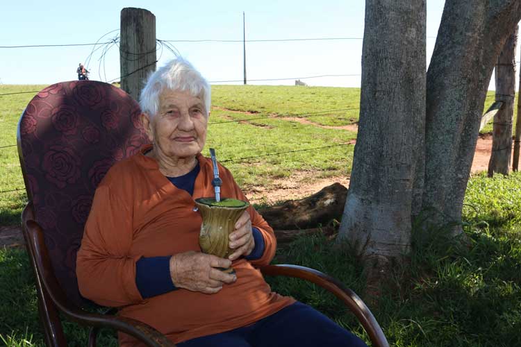As tardes da dona Glória sempre têm a companhia do chimarrão