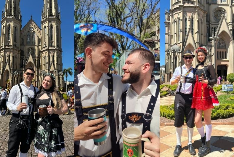 O casal se conheceu nas redes sociais há cerca de três anos, mas perderam o contato ao longo do tempo. O reencontro foi inusitado: Rodrigo quebrou a perna em um acidente, e João acompanhou a cirurgia enquanto estagiário da saúde. Por morarem em cidades diferentes, o primeiro encontro demorou para acontecer e depois, seguiram se falando constantemente. “Eu queria que fosse um marco, para mostrar que também temos espaço na Festa da Alegria e que o povo alemão está de braços abertos para todo tipo de amor. Foi um dia mágico para nós”, completou Rodrigo.