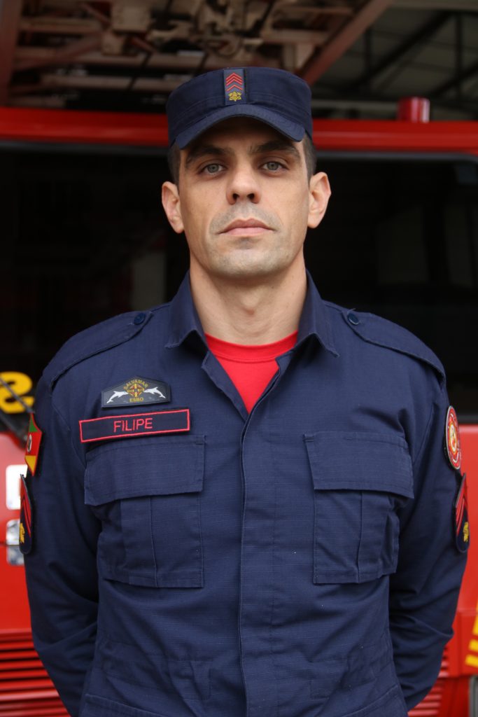 Aos 36 anos, o segundo-sargento Filipe Martins da Cunha está nos bombeiros desde 2006. Logo que terminou o Ensino Médio em Cachoeira do Sul, ele já sabia que pretendia seguir carreira militar. Aprovado no concurso da Brigada Militar, que à época respondia pelo Corpo de Bombeiros, ele decidiu: iria seguir o caminho dos bombeiros. Após oito meses de formação, que envolve aprendizado técnico e jurídico, ele retornou para a terra natal. De lá, foi para Estrela e após para Santa Cruz do Sul, para atuar na formação dos soldados.