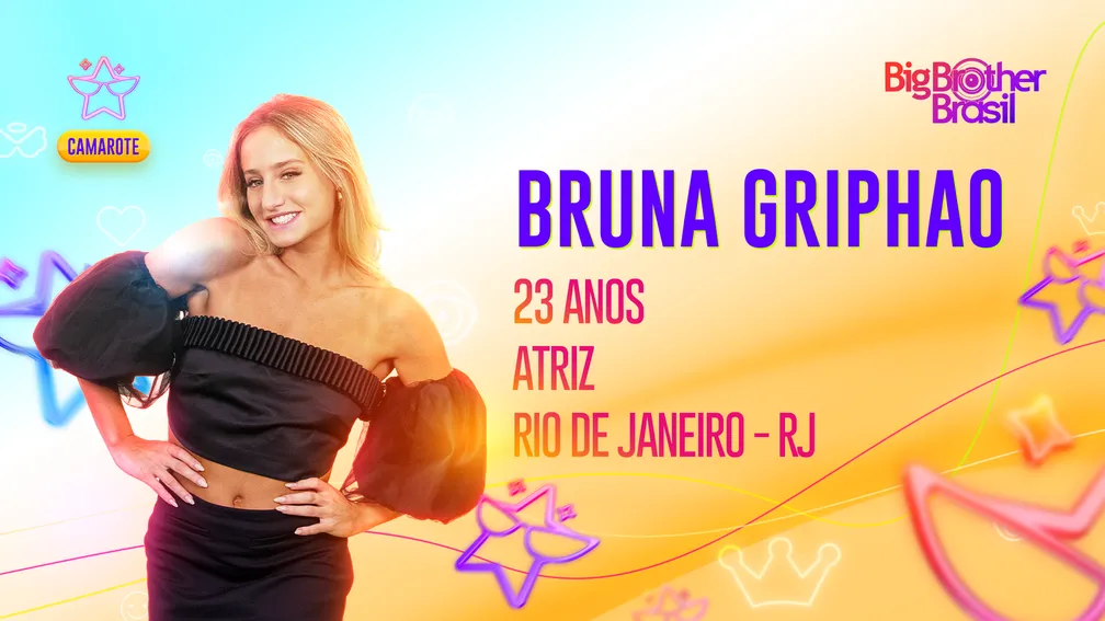 Camarote: A atriz Bruna Griphao tem 23 anos e é natural do Rio de Janeiro. De família grega, convive com o idioma dentro de casa, já que todos falam grego, menos ela. “Só quebro pratos”, se diverte. Já participou do elenco de “Avenida Brasil”, “Malhação Casa Cheia”, “Haja Coração” e “Orgulho e Paixão”.