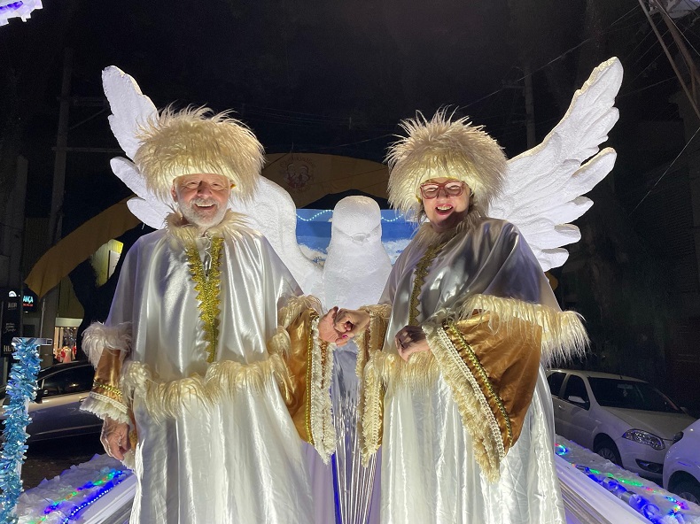 O casal diz que o seu carro temático procura levar alegria e paz às pessoas, e que a sensação de poder contribuir para a disseminação desses sentimentos é de muita alegria. “O Natal é momento de levar alegria às pessoas e fazer isso, em meio a tanta tristeza que temos visto [guerras e catástrofes climáticas], é muito bom. Os desfiles são mágicos. A população realmente participa e gosta muito”, destacou Sérgio.