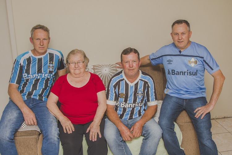 Torcida pelo Grêmio é outra coisa em comum entre os três. Pela ordem, estão com dona Erna os filhos Roberto, Rogério e Volmir