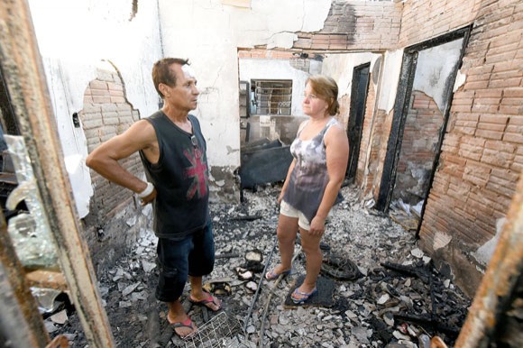 Em meio aos escombros da casa onde morava e sob um forte cheiro de queimado, o casal de aposentados Diomar e Terezinha Cardoso da Silveira, de 60 e 47 anos, procurava na tarde dessa quarta-feira pertences que não haviam sido consumidos pelo fogo, com a ajuda de amigos e familiares. Passadas 12 horas do incêndio que destruiu grande parte da residência na Rua Leonardo da Vinci, no Bairro Renascença, em Santa Cruz, os dois pareciam ainda não acreditar no que havia acontecido durante a madrugada de quarta. O local foi atingido por um sinistro que teve início por volta das 4 horas, quando estavam deitados no quarto. Não se sabe o que deu início ao fogo, que começou próximo a uma antiga churrasqueira. A lancheria da família, que funcionava junto à casa, por pouco não foi destruída também.