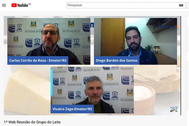 A reunião foi transmitida simultaneamente nas redes sociais da Emater no YouTube e Facebook e contou com a participação de extensionistas rurais e agricultores gaúchos e de outros estados.